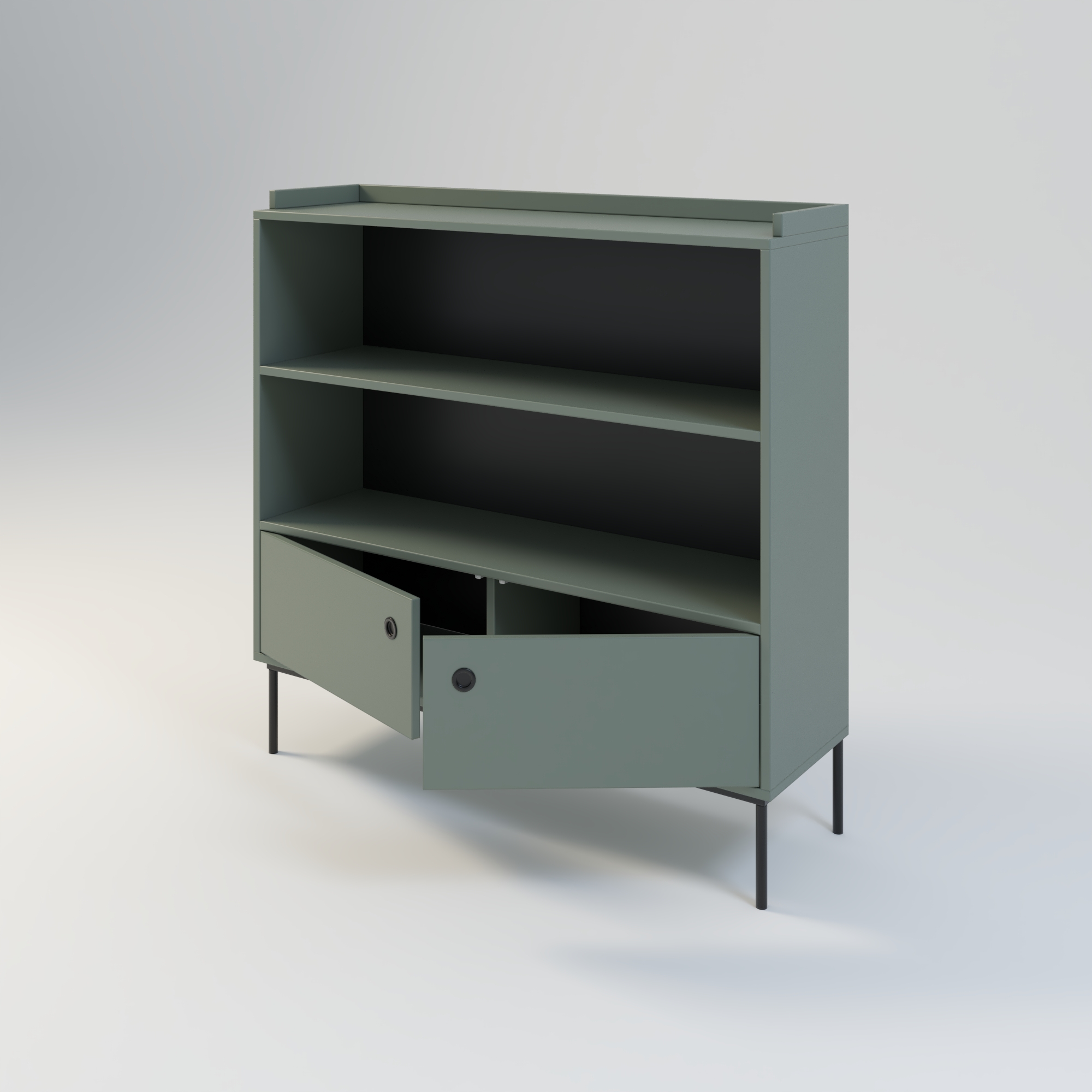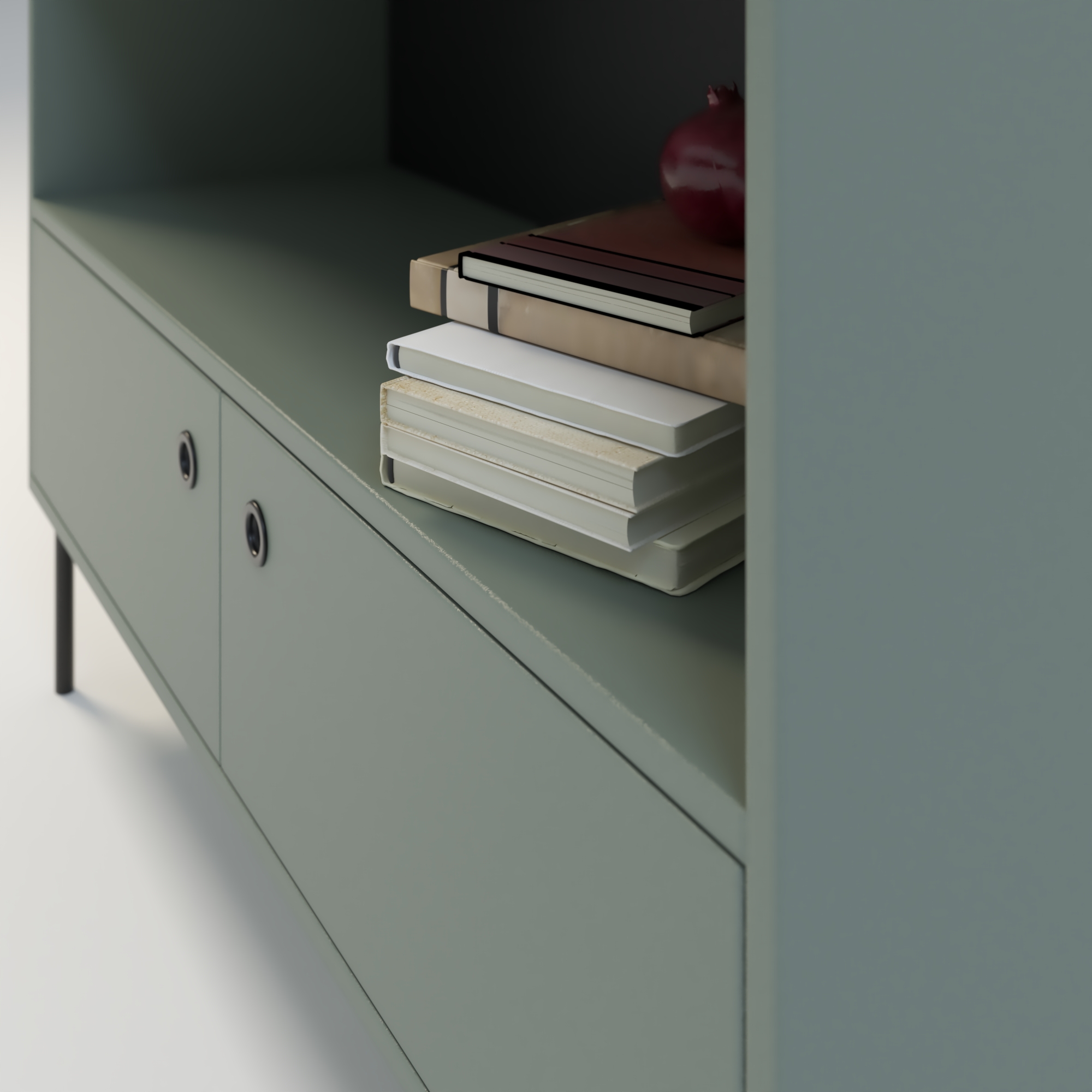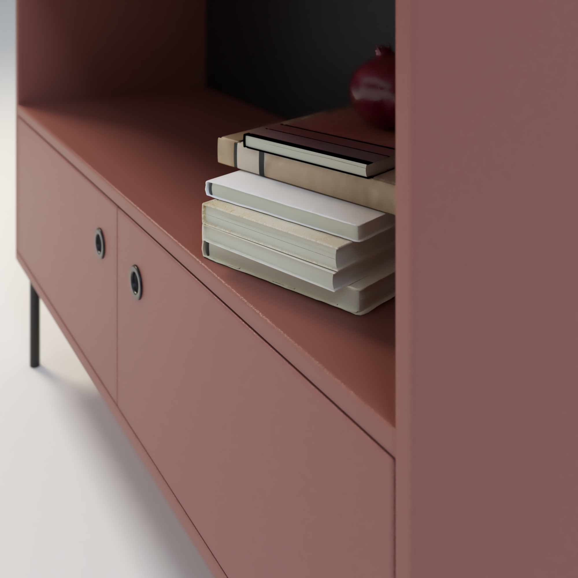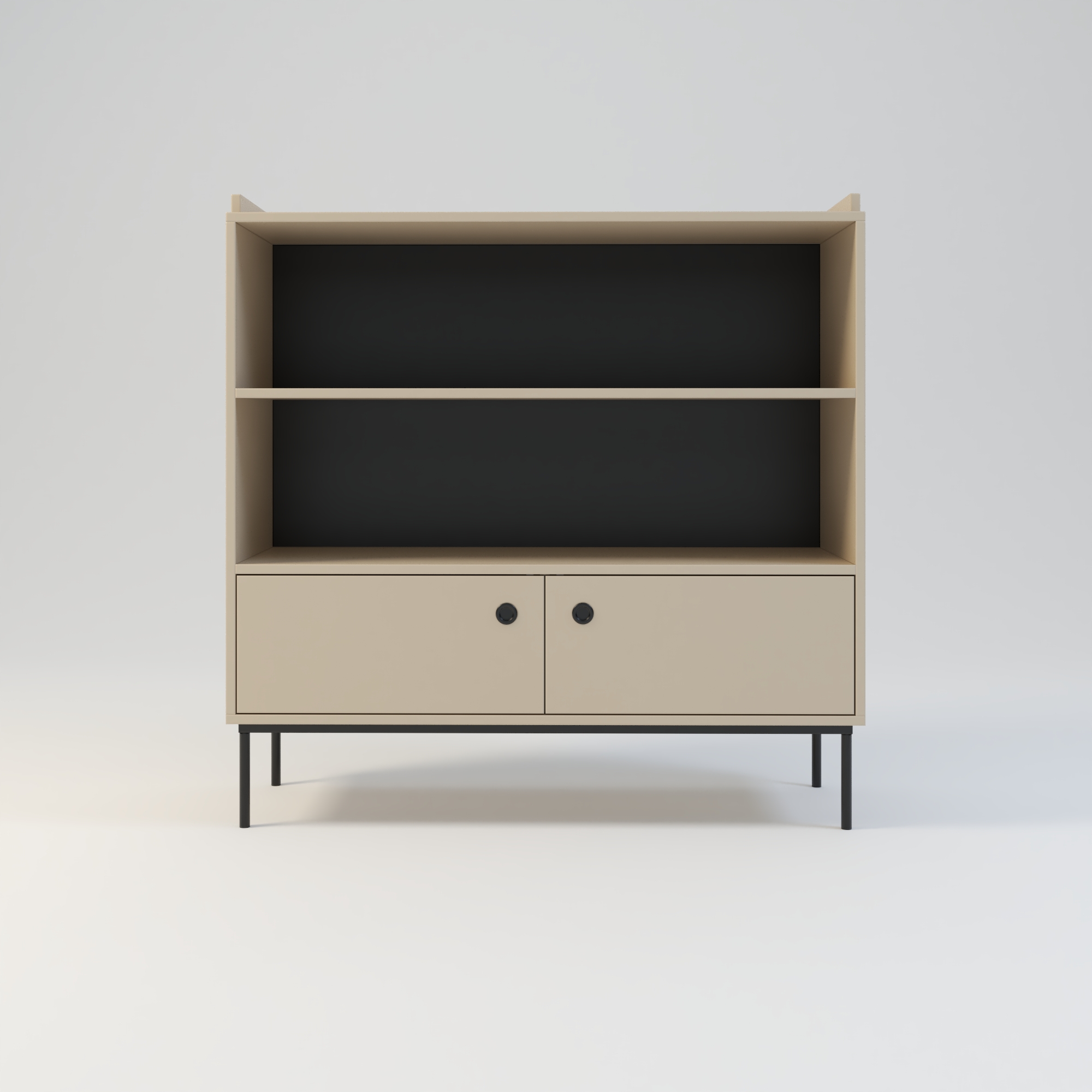 Nowoczesna komoda dedykowana do wnętrz w stylu minimalistycznym. Prosta w formie i bardzo funkcjonalna konstrukcja, oferuje dużą przestrzeń do przechowywania. Na górnych półkach możemy wyeksponować kolekcję książek, płyt lub oryginalne dekoracje i ozdoby. Szafka w całości wykonana z wysokiej jakości płyty laminowanej w kolorze beżowym o odcieniu piaskowym. Kolor ten doskonale sprawdza się w połączeniu z innymi kolorami.