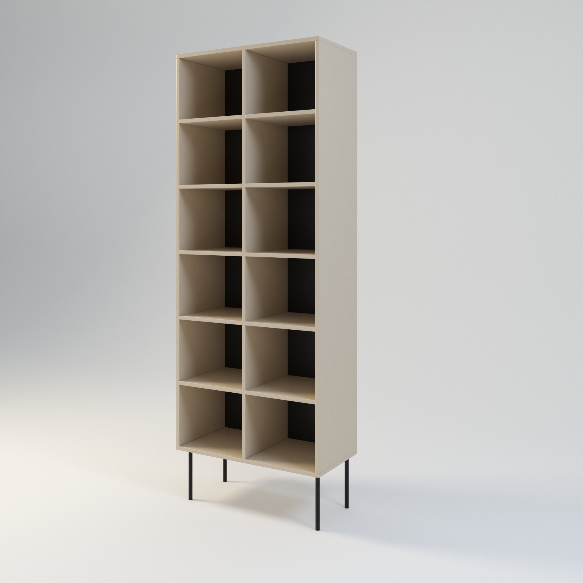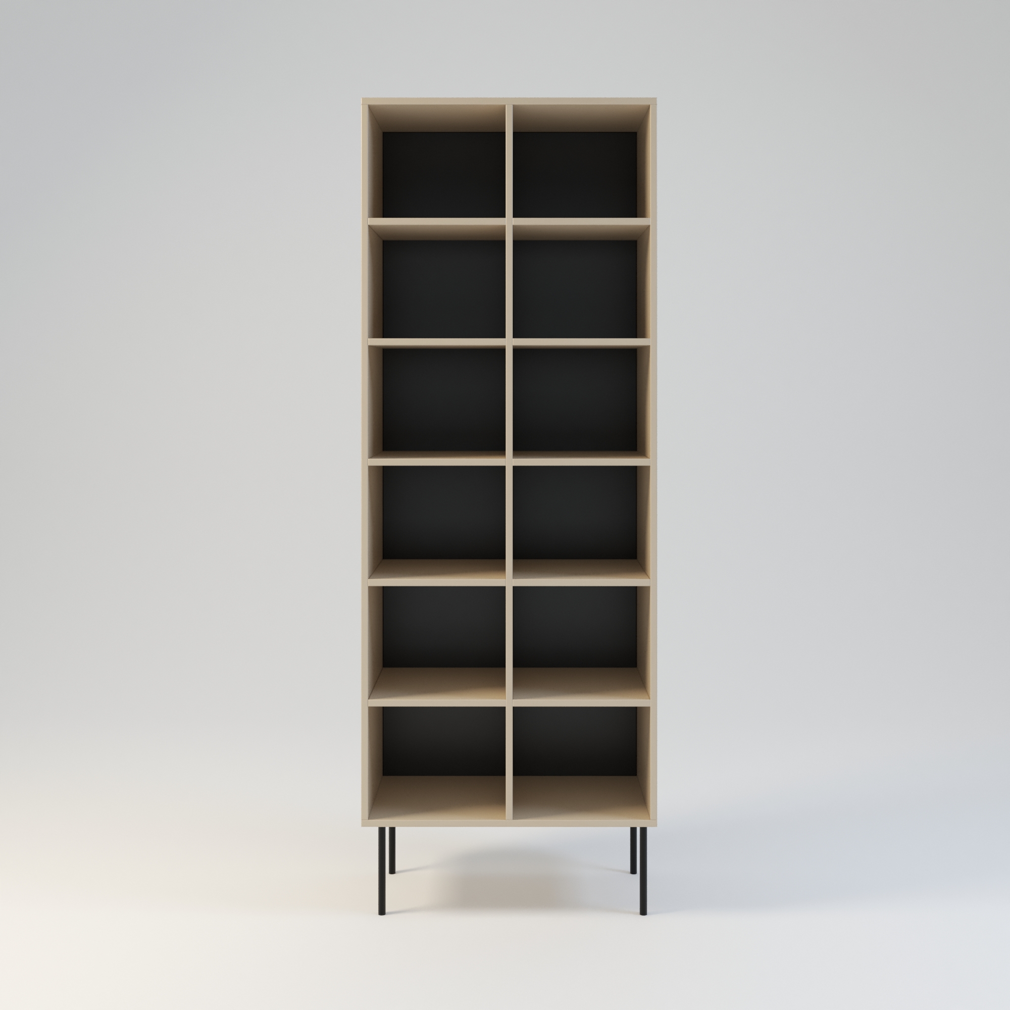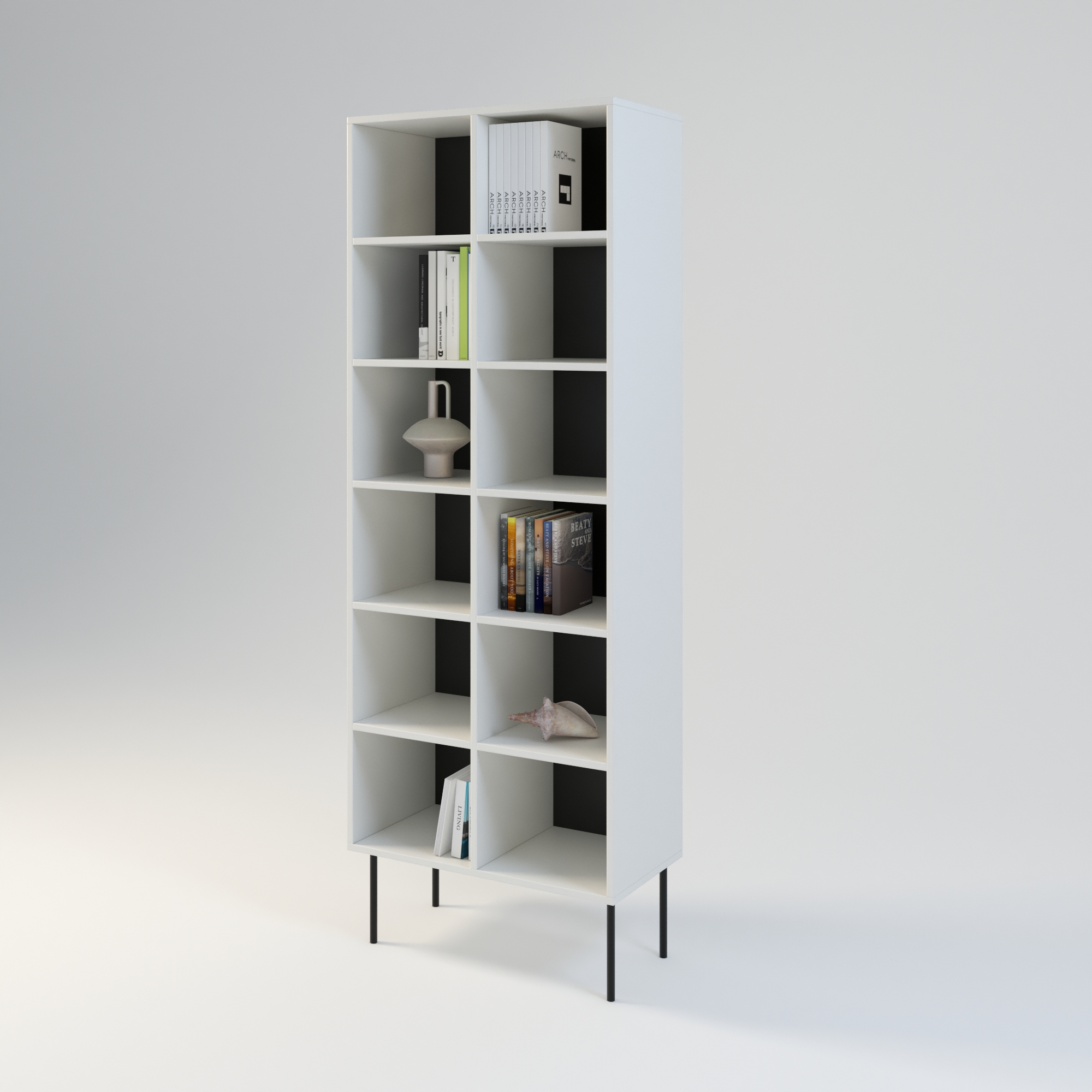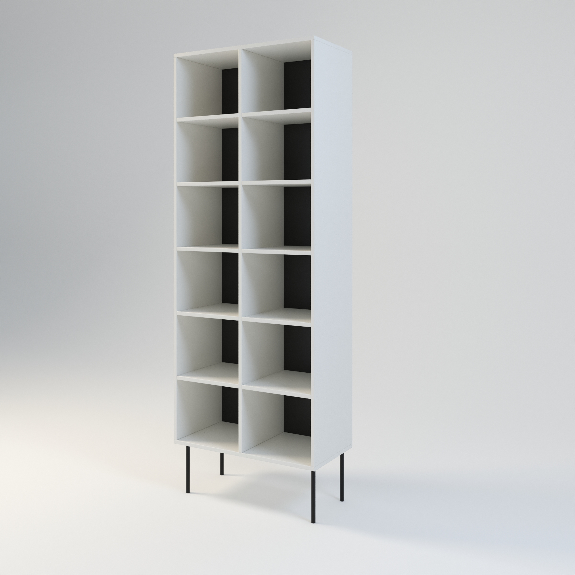 Minimalistyczny regał na książki. Prosty w formie, o bardzo funkcjonalnej konstrukcji. Oferuje dużą przestrzeń do przechowywania. Na półkach możemy wyeksponować własną kolekcję książek oraz oryginalne dekoracje i ozdoby. Regał wyposażony w 6 półek. Wysokość półek w świetle to 31 cm. Regał w całości wykonany z wysokiej jakości płyty laminowanej. Regały można z sobą łączyć bokami, tworząc w ten sposób większe moduły. Nadaje się do modułowego łączenia z regałem Hioki i szafą Tara.