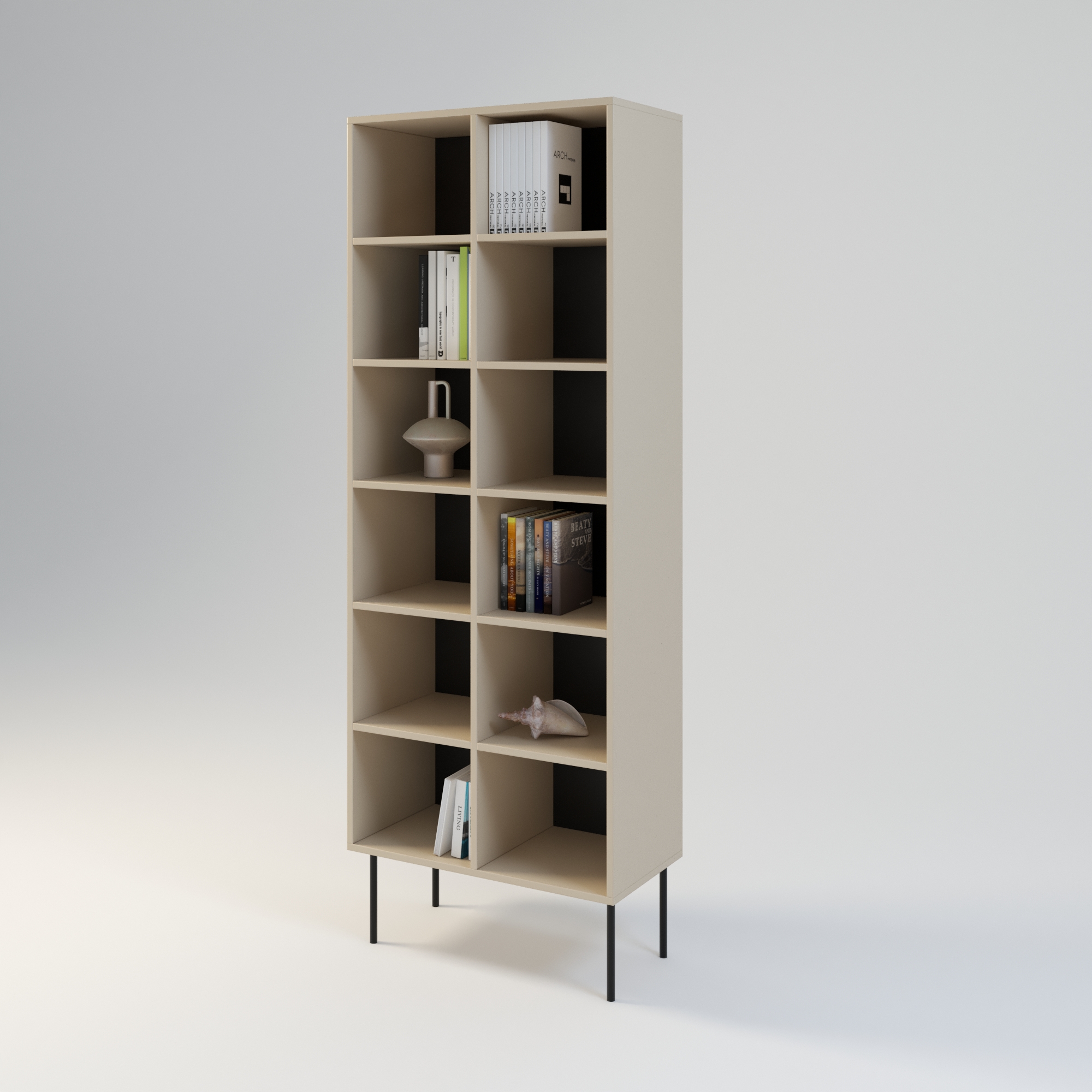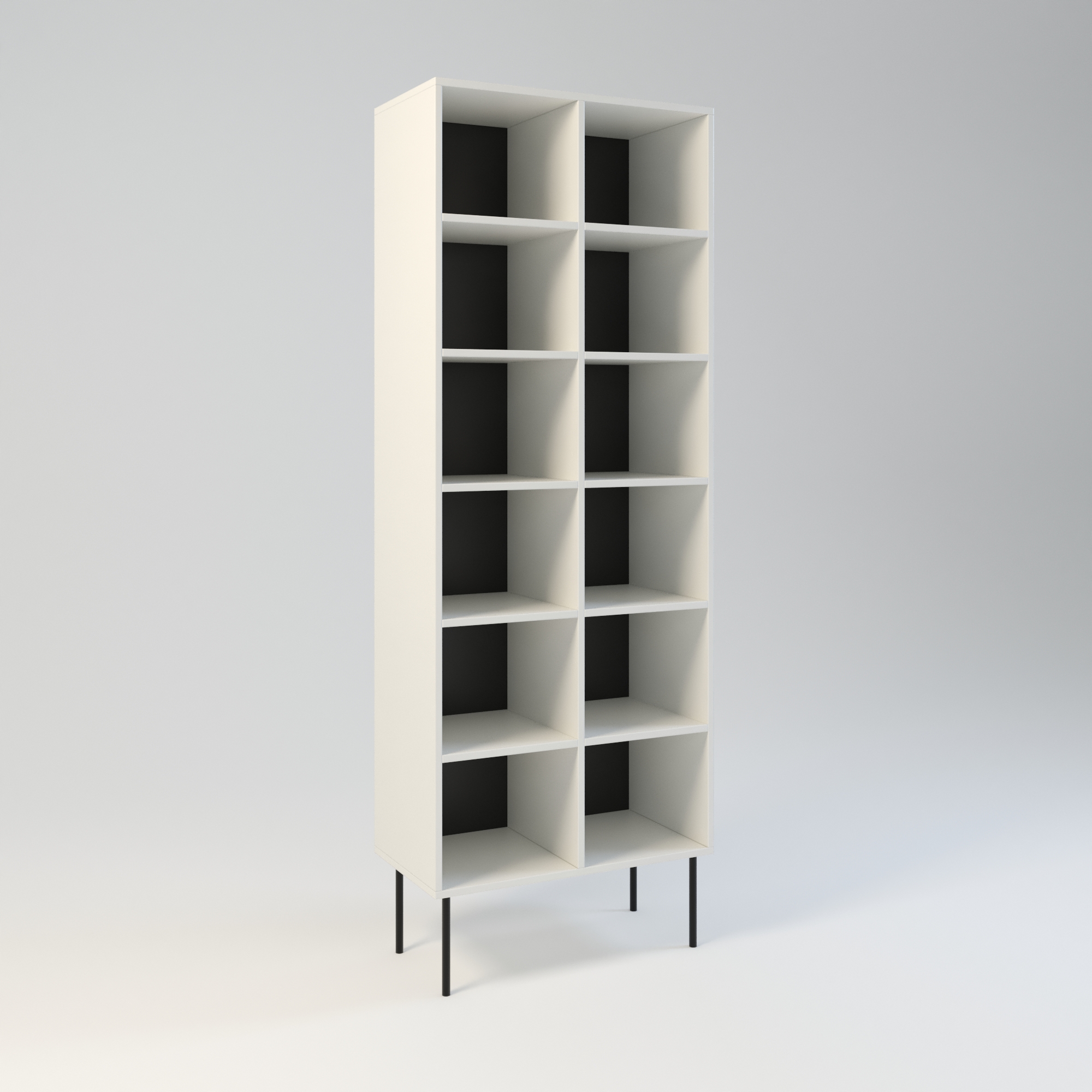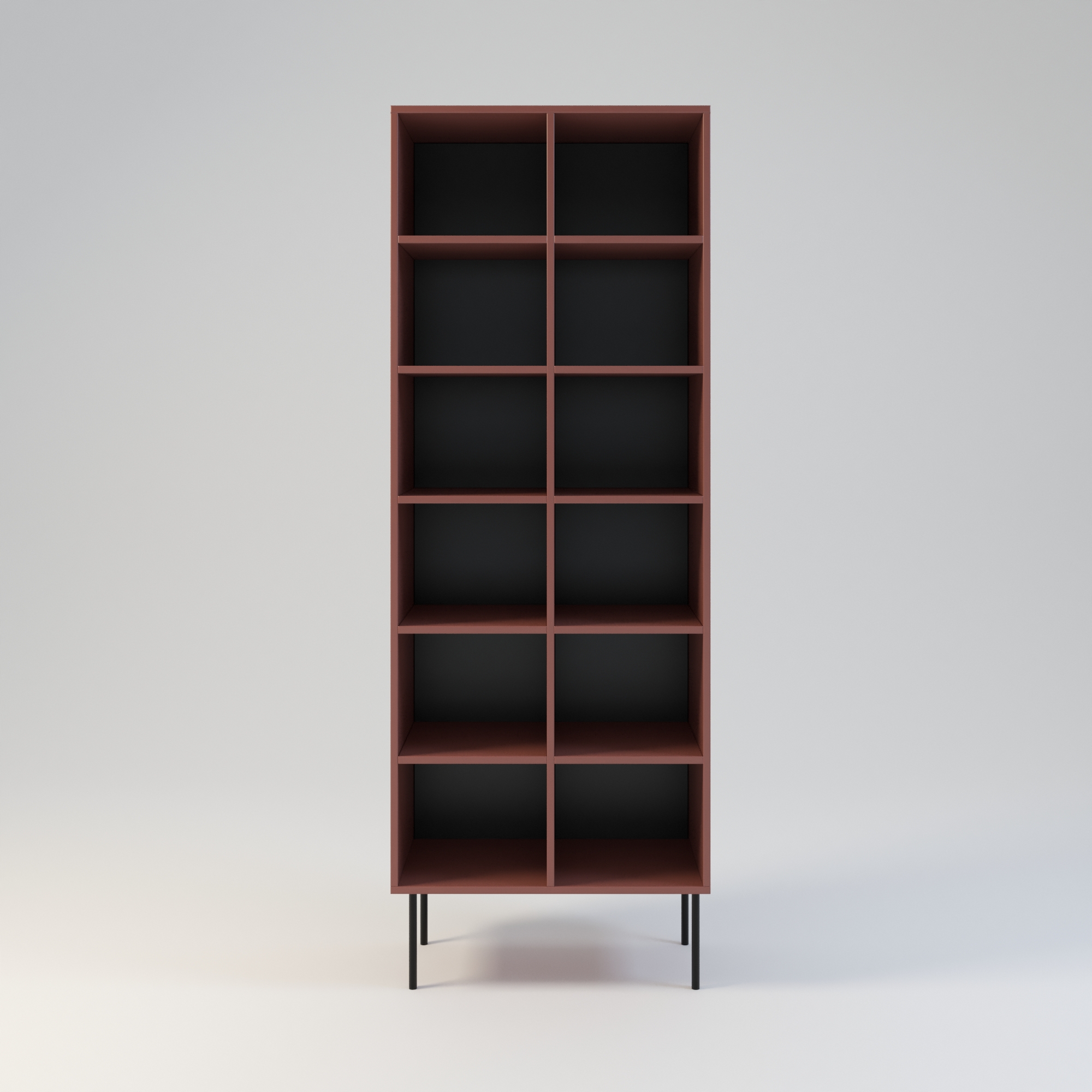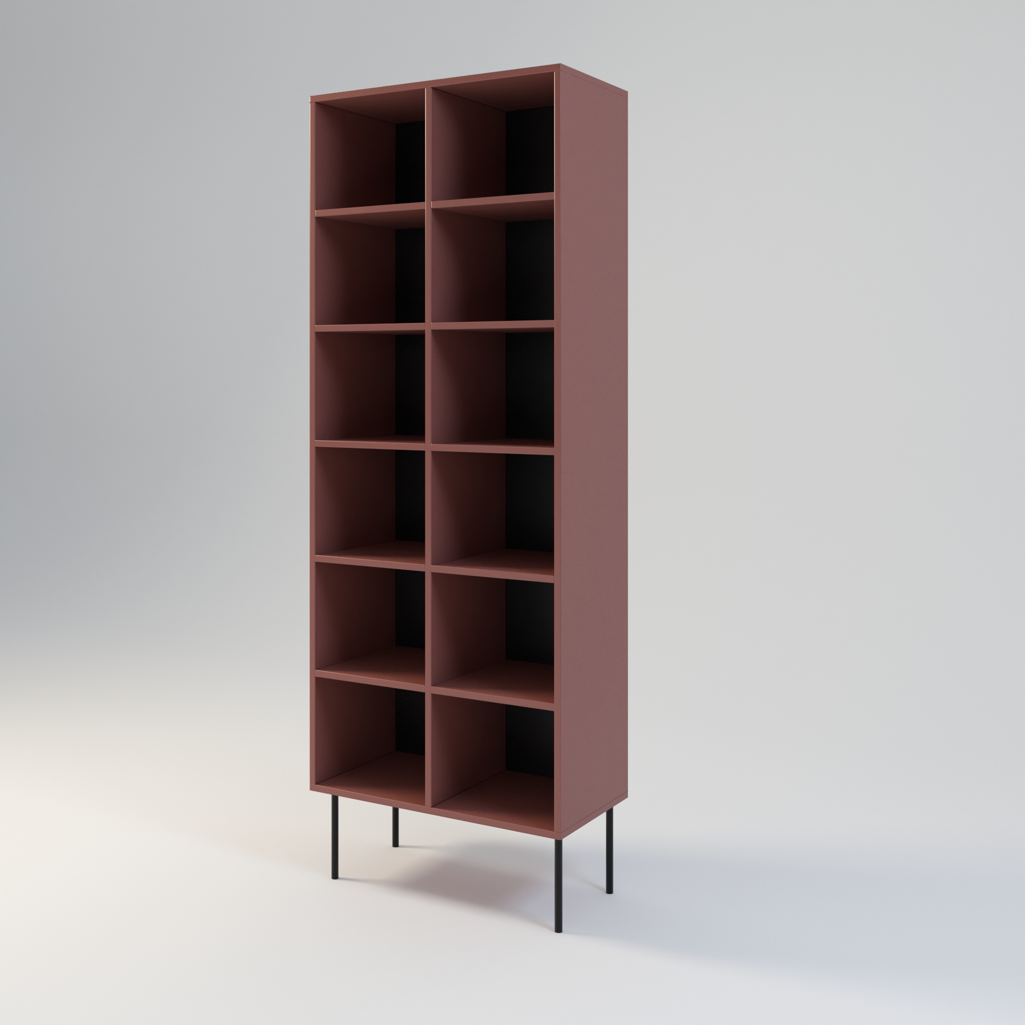 Minimalistyczny regał na książki. Prosty w formie, o bardzo funkcjonalnej konstrukcji. Oferuje dużą przestrzeń do przechowywania. Na półkach możemy wyeksponować własną kolekcję książek oraz oryginalne dekoracje i ozdoby. Regał wyposażony w 6 półek. Wysokość półek w świetle to 31 cm. Regał w całości wykonany z wysokiej jakości płyty laminowanej. Regały można z sobą łączyć bokami, tworząc w ten sposób większe moduły. Nadaje się do modułowego łączenia z regałem Hioki i szafą Tara.