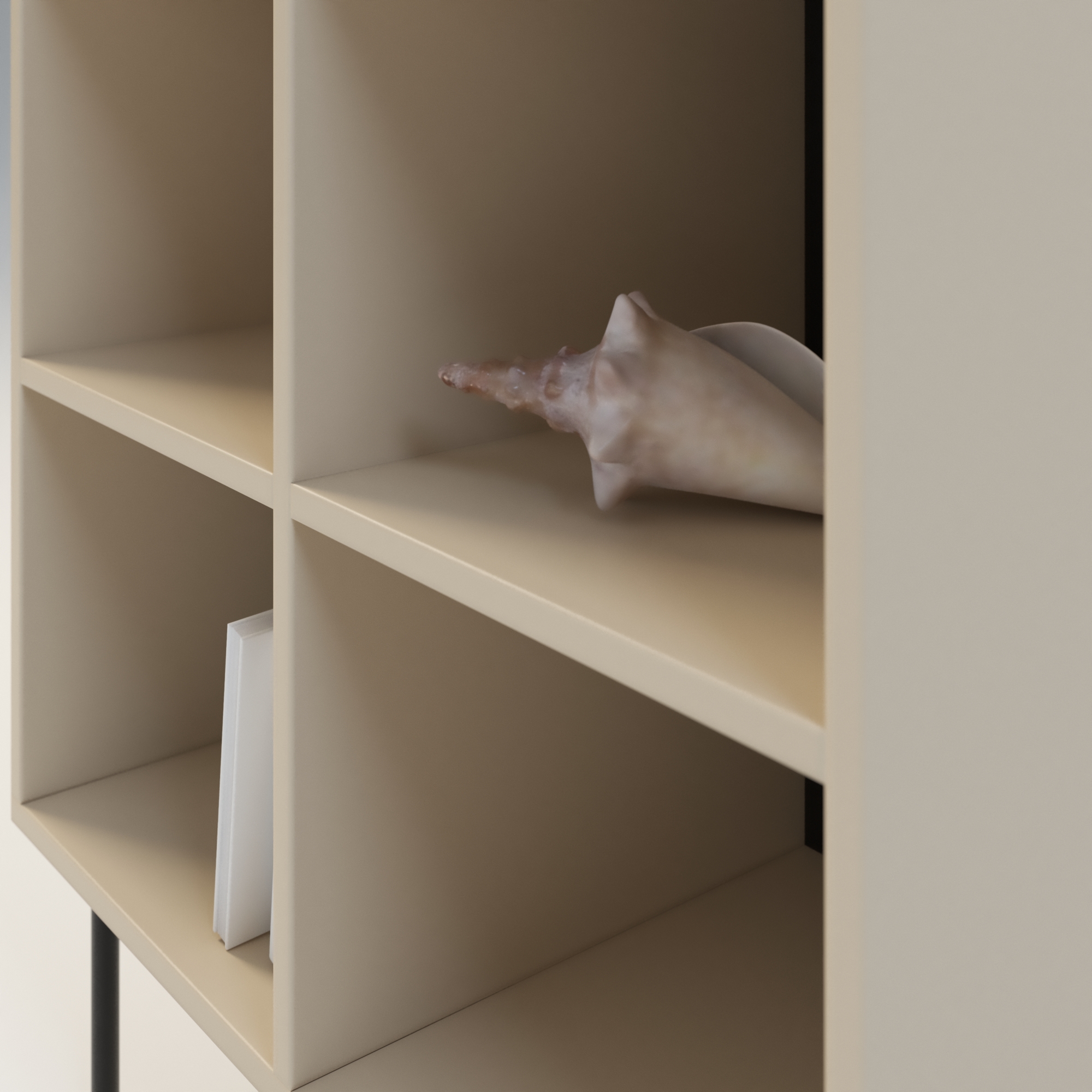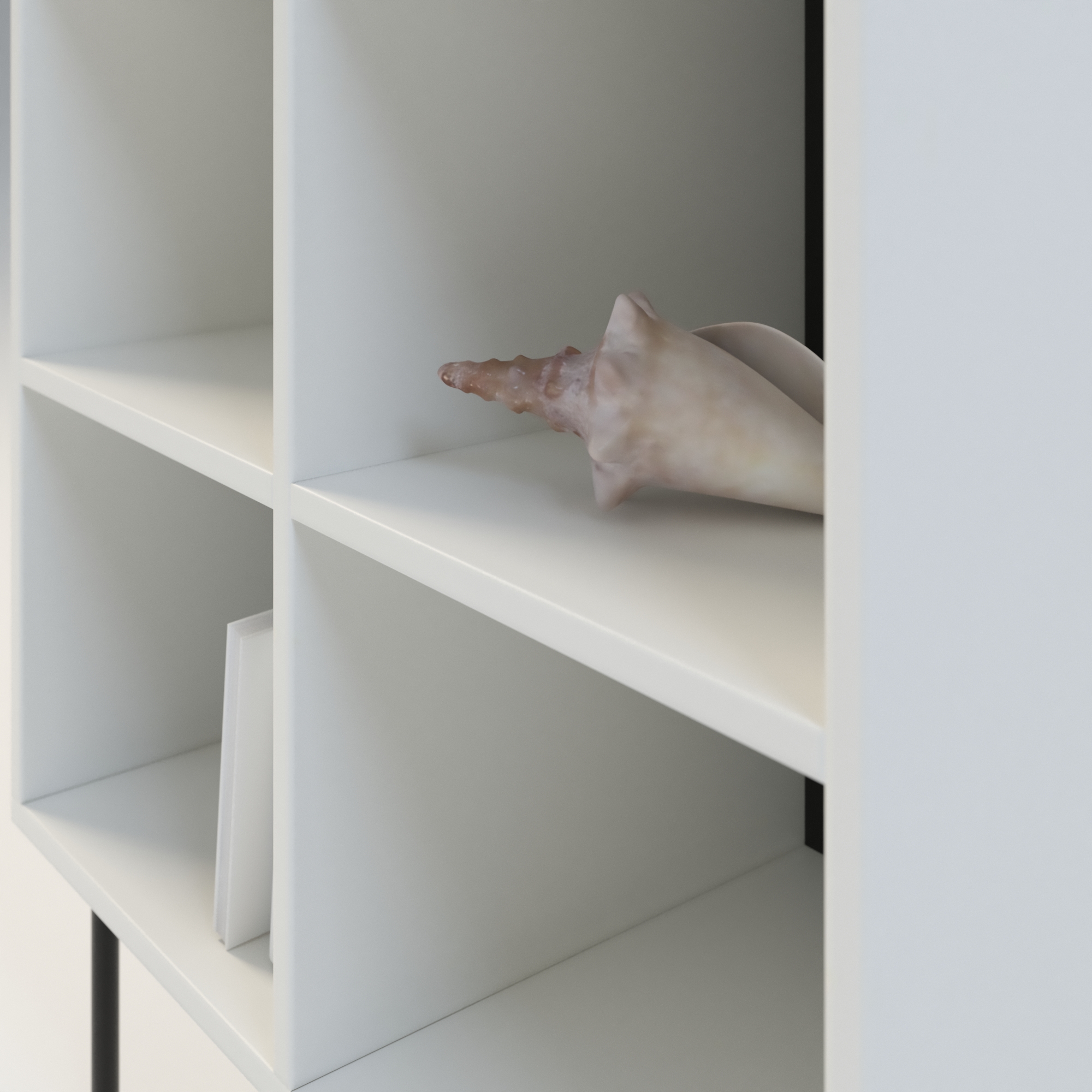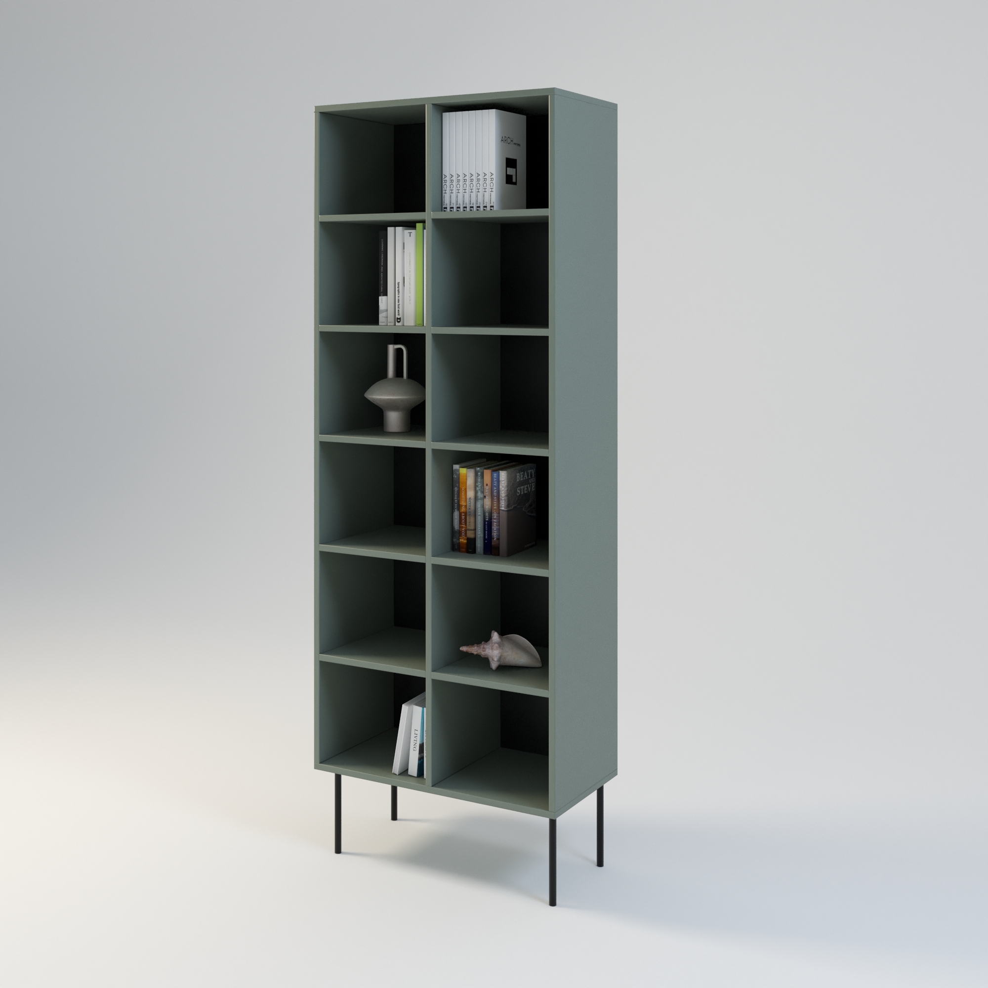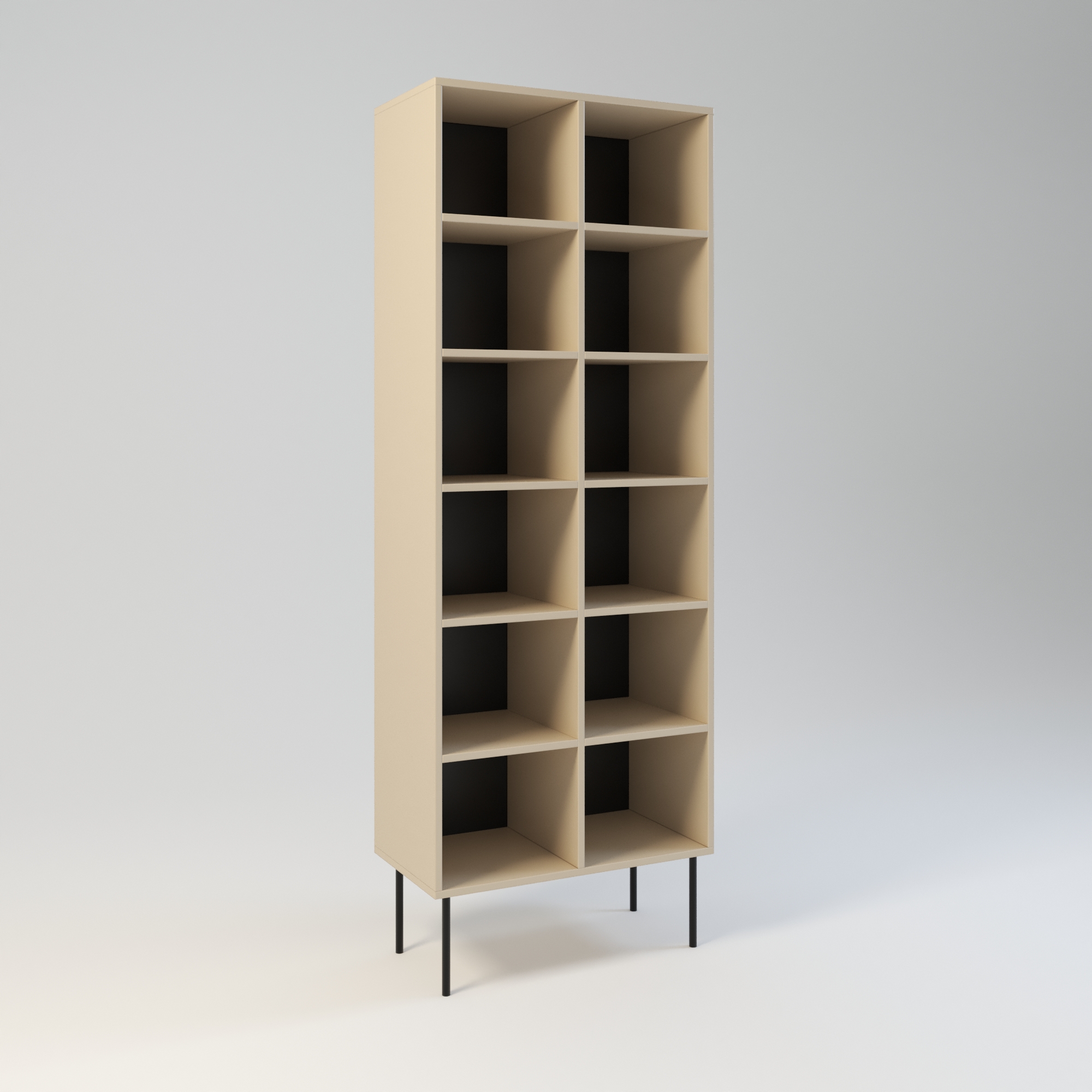 Minimalistyczny regał na książki. Prosty w formie, o bardzo funkcjonalnej konstrukcji. Oferuje dużą przestrzeń do przechowywania. Na półkach możemy wyeksponować własną kolekcję książek oraz oryginalne dekoracje i ozdoby. Regał wyposażony w 6 półek. Wysokość półek w świetle to 31 cm. Regał w całości wykonany z wysokiej jakości płyty laminowanej. Regały można z sobą łączyć bokami, tworząc w ten sposób większe moduły. Nadaje się do modułowego łączenia z regałem Hioki i szafą Tara.