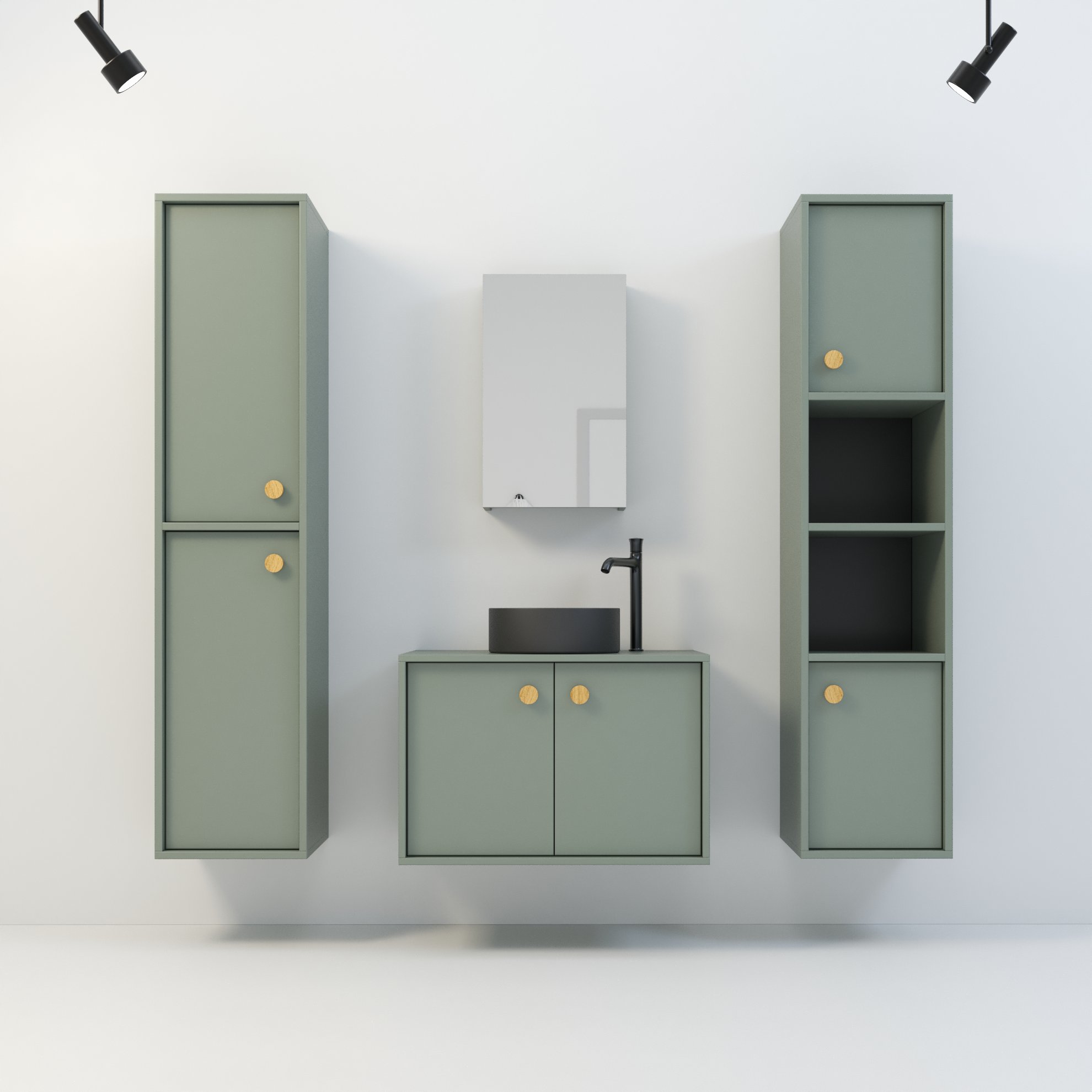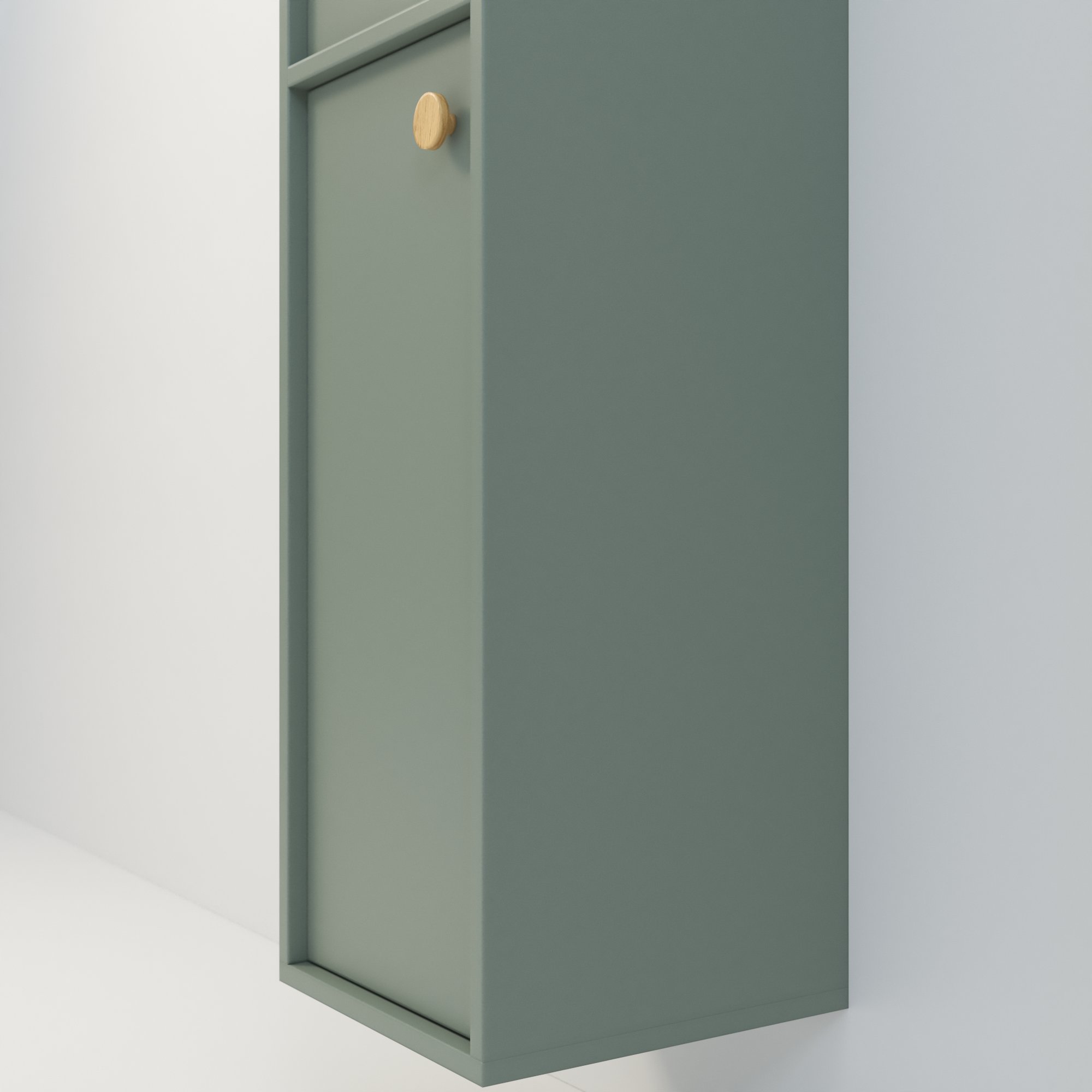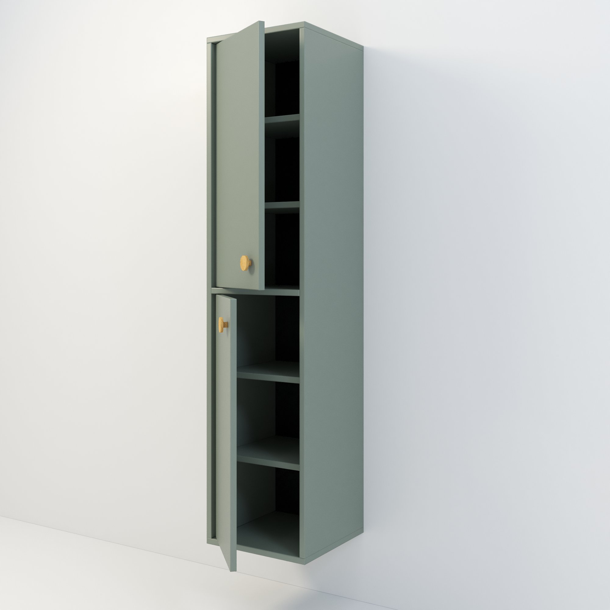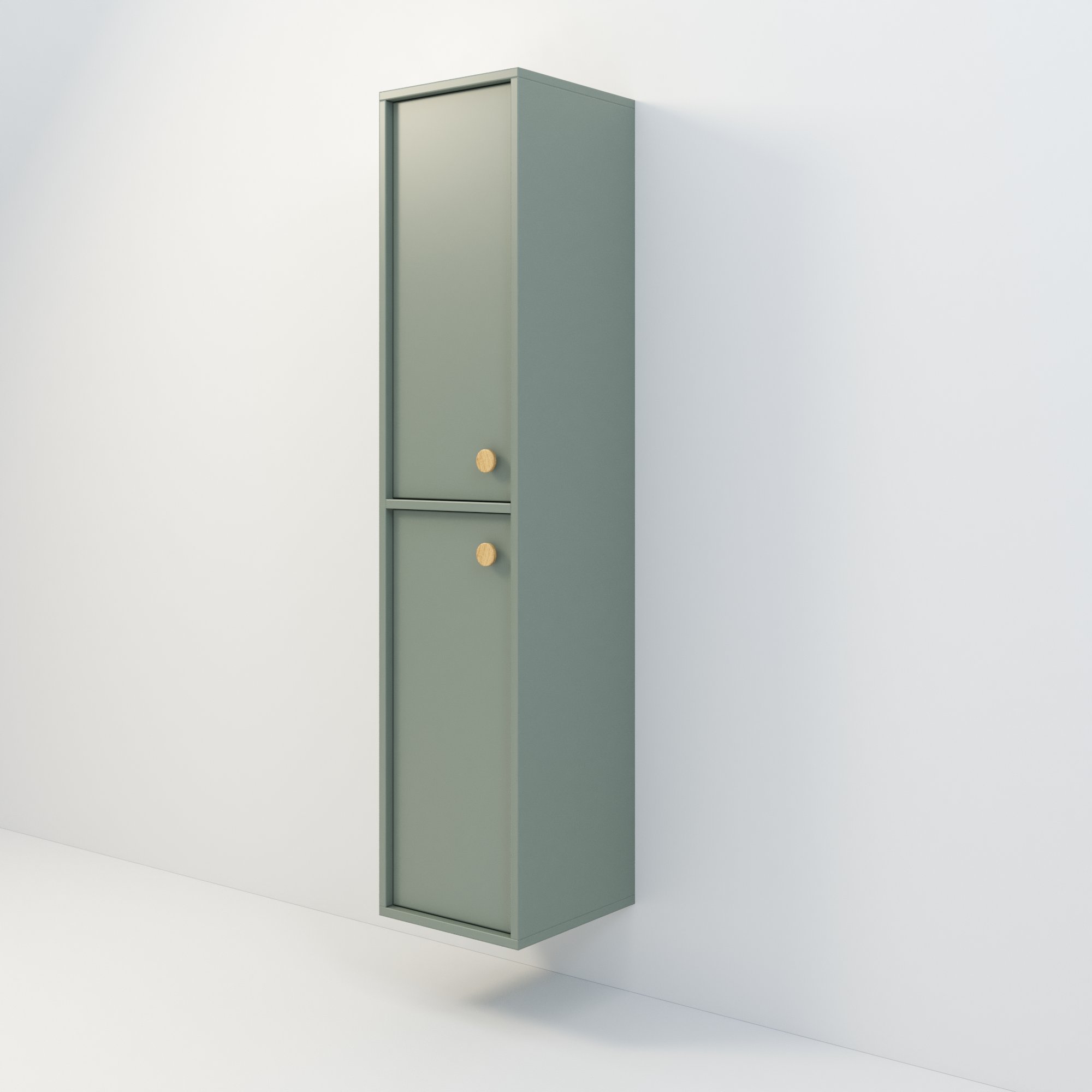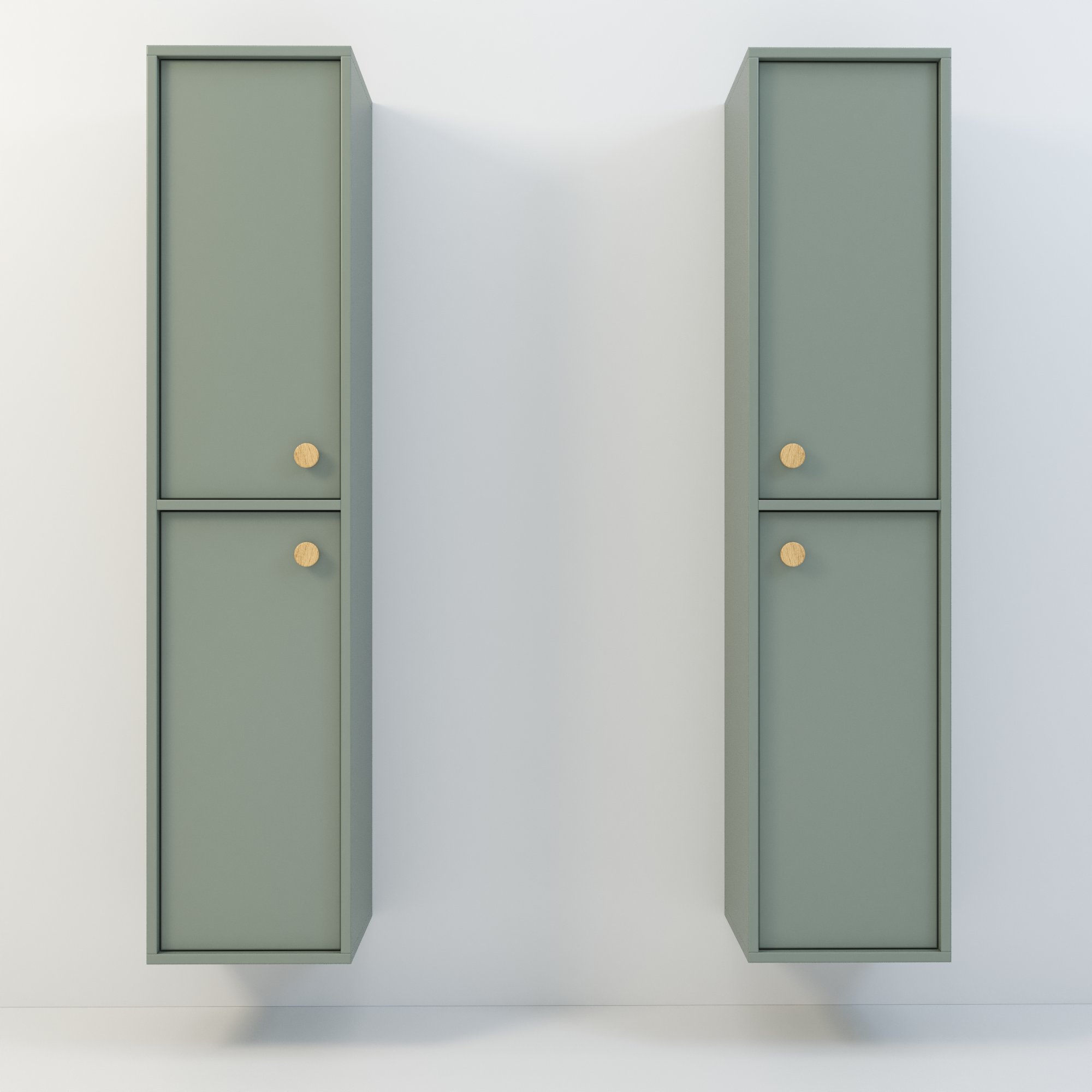Słupek łazienkowy wiszący w stylu japandi. Zaprojektowany z myślą o osobach ceniących sobie prostotę i elegancję. Drzwi wpuszczone w korpus, otwierane za pomocą bezawaryjnych zawiasów. W ramach opcji konfiguracji drzwiczki mogą być otwierane na stronę lewą lub prawą. Funkcjonalna konstrukcja oferuje dużą przestrzeń do przechowywania. Szafka w całości wykonana z wysokiej jakości płyty laminowanej. Korpus słupka ma wysokość 175 cm.
