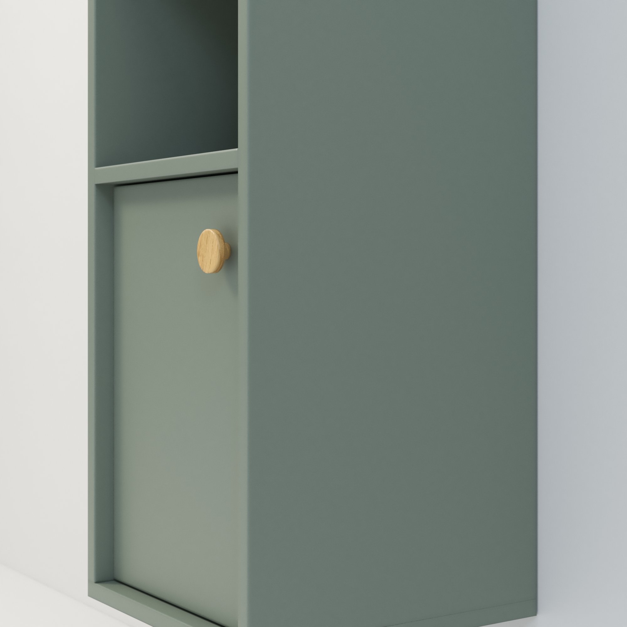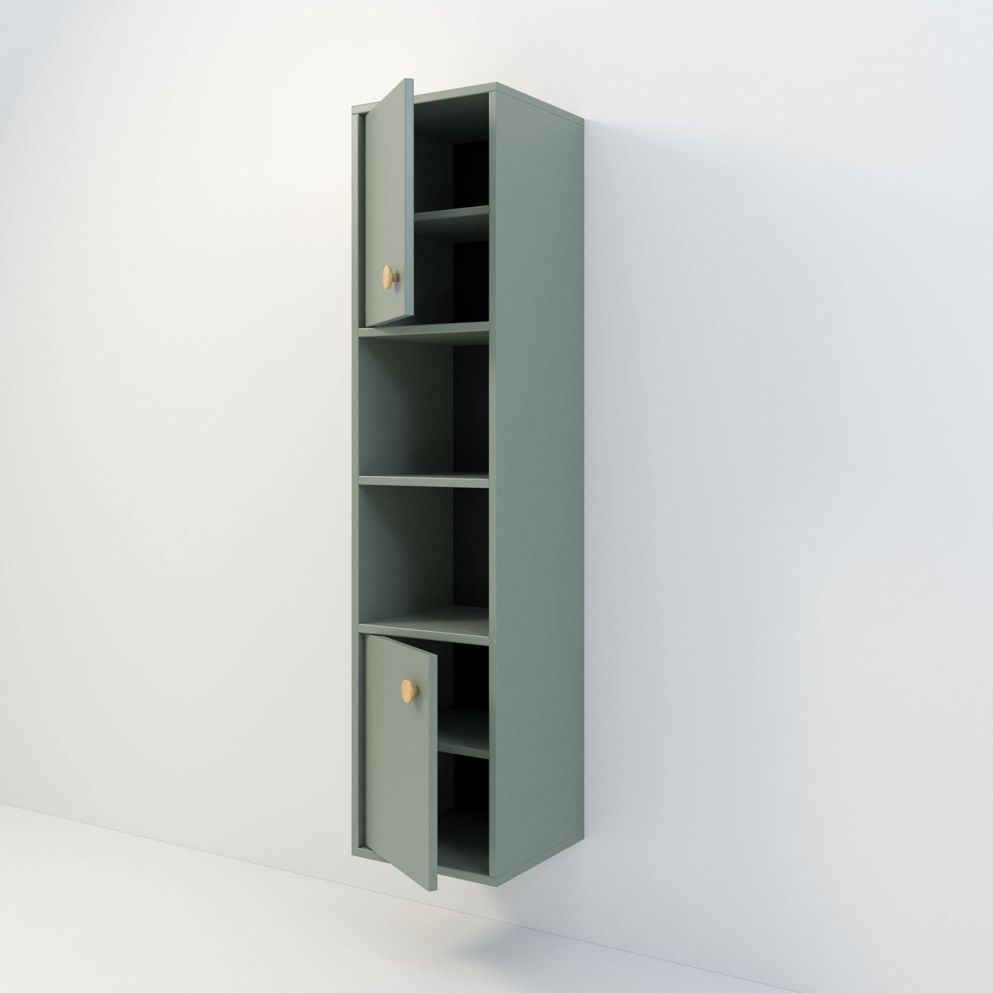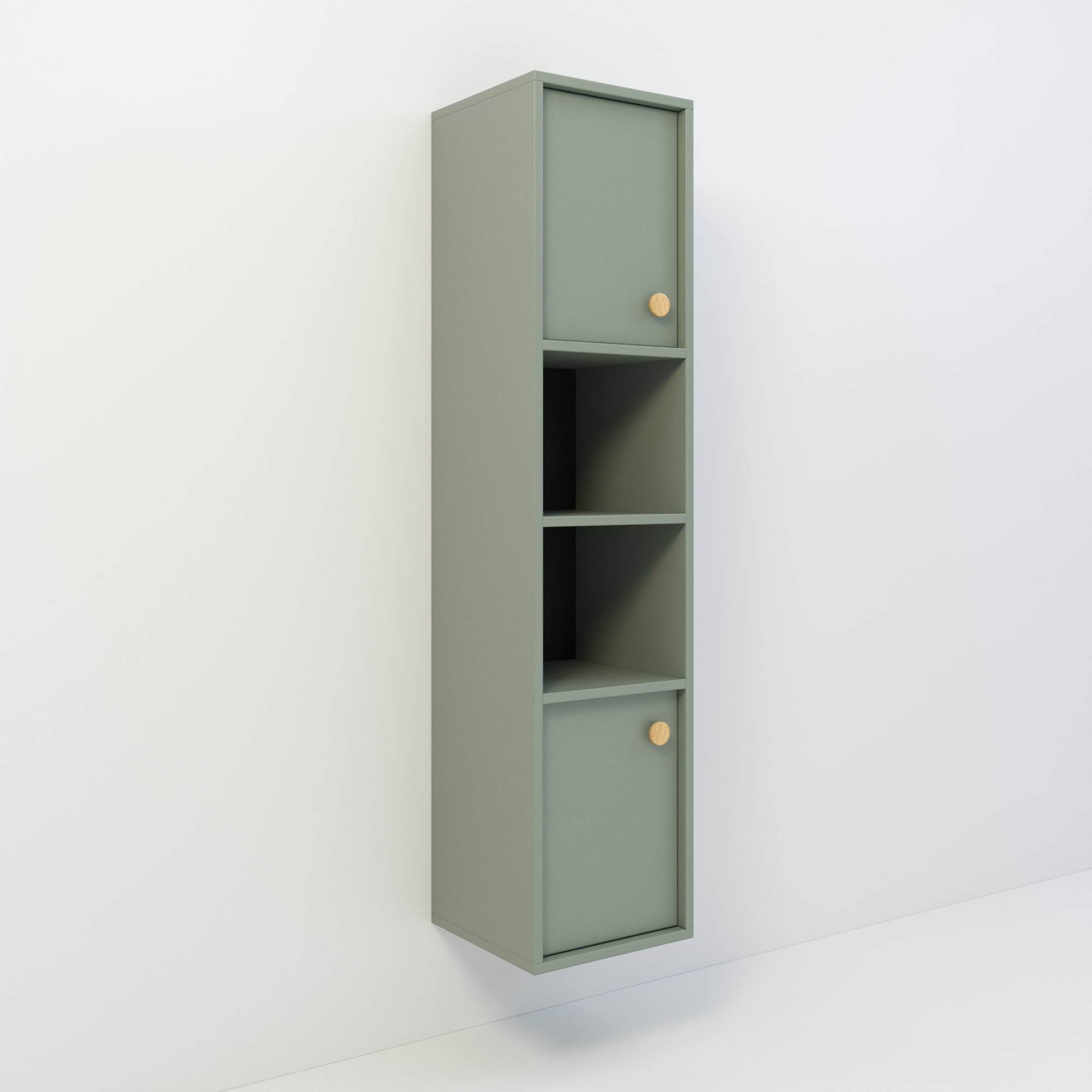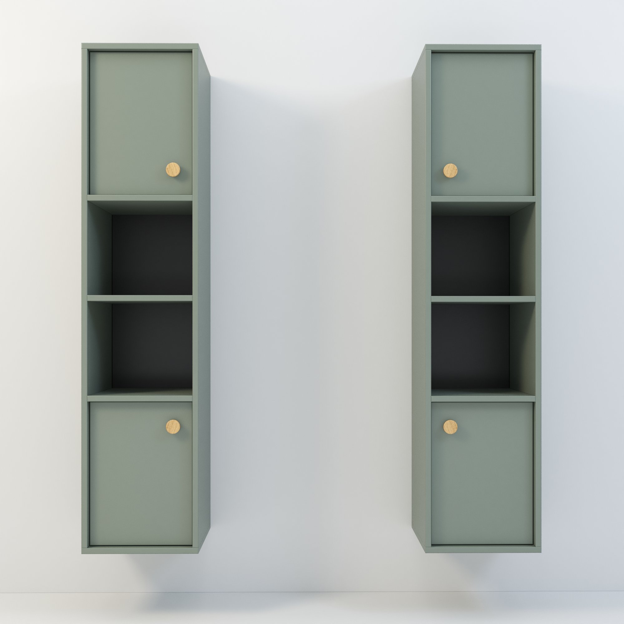 Słupek łazienkowy wiszący w stylu japandi. Zaprojektowany z myślą o osobach ceniących sobie prostotę i elegancję. Drzwi wpuszczone w korpus, otwierane za pomocą bezawaryjnych zawiasów. W ramach opcji konfiguracji drzwiczki mogą być otwierane na stronę lewą lub prawą. Funkcjonalna konstrukcja oferuje dużą przestrzeń do przechowywania. Szafka w całości wykonana z wysokiej jakości płyty laminowanej. Drewniane – dębowe uchwyty drzwiowe. Korpus słupka ma wysokość 175 cm.