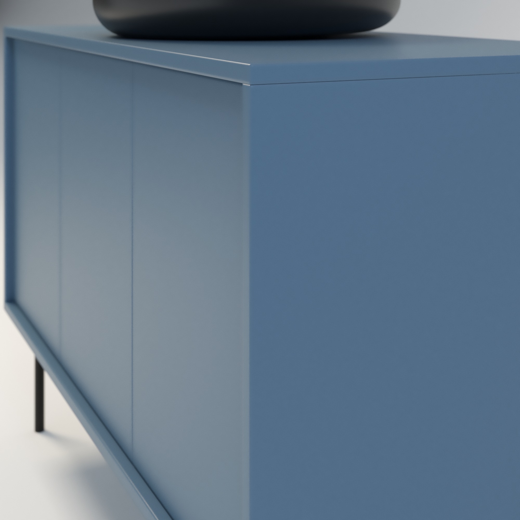 Szafka łazienkowa w stylu minimalistycznym. Zaprojektowana z myślą o osobach ceniących sobie prostotę i elegancję. Drzwi wpuszczone w korpus, otwierane za pomocą bezawaryjnych zawiasów i mechanizmu tip on. Szafka dostępna jest również w opcji z uchwytami drzwiowymi. Szafka w całości wykonana z wysokiej jakości płyty laminowanej. Wewnątrz każdej komory drzwiowej jedna półka. Szerokość szafki razem z nogami metalowymi wynosi 124 cm. Wysokość korpusu szafki to 54cm. Wysokość stelaża metalowego / nóg to 26 cm. Stopki z regulacją ułatwiają precyzyjne wypoziomowanie Umywalka nie wchodzi w skład zestawu.