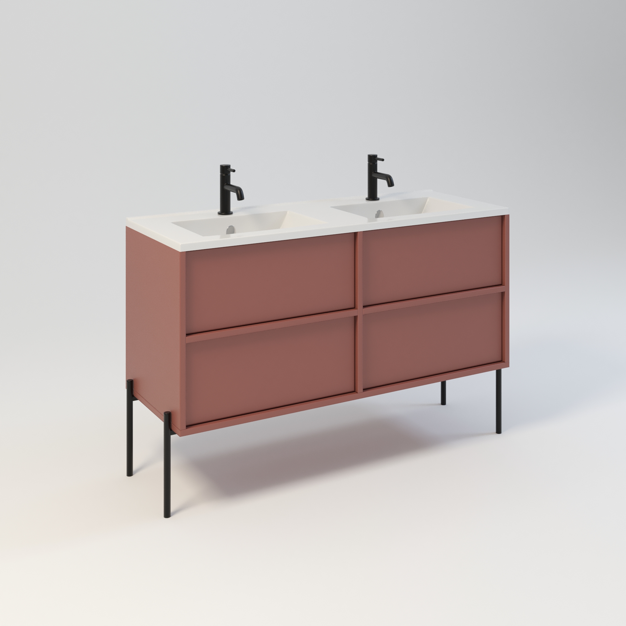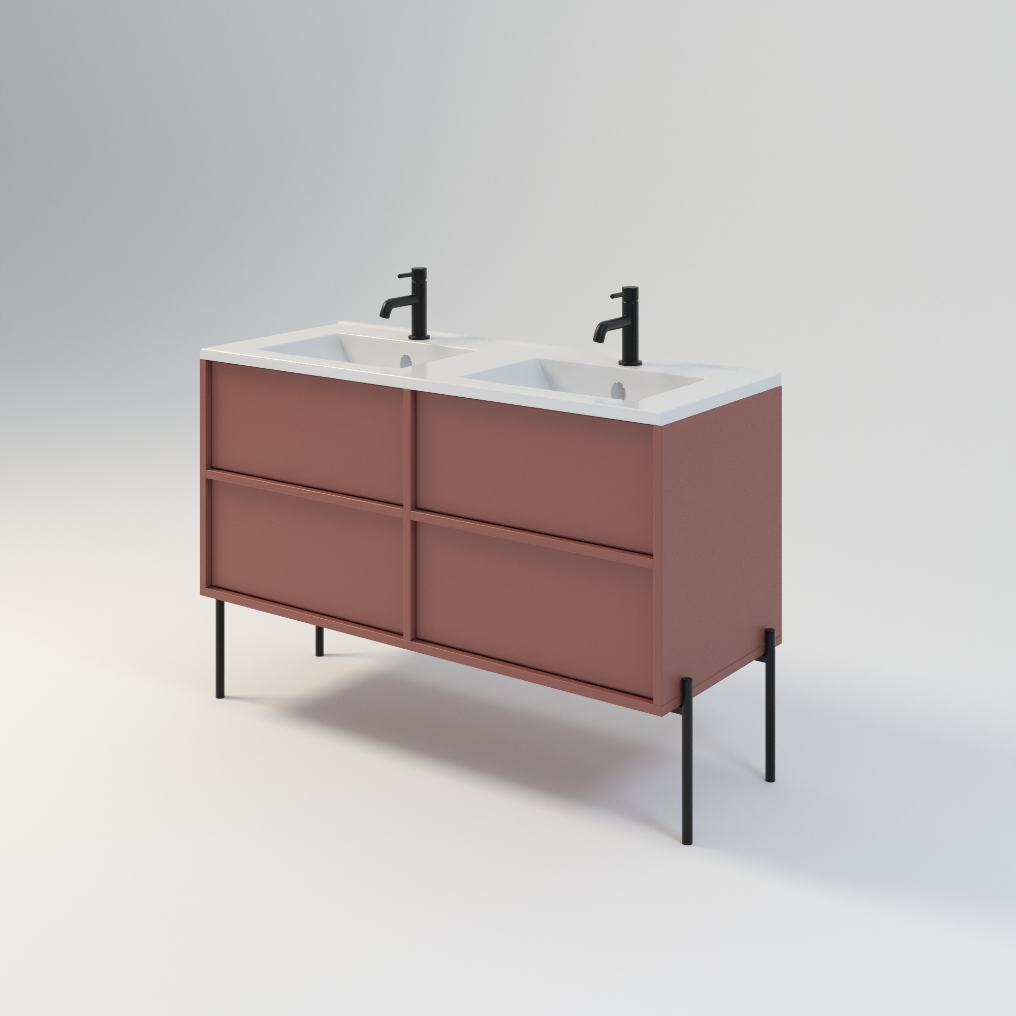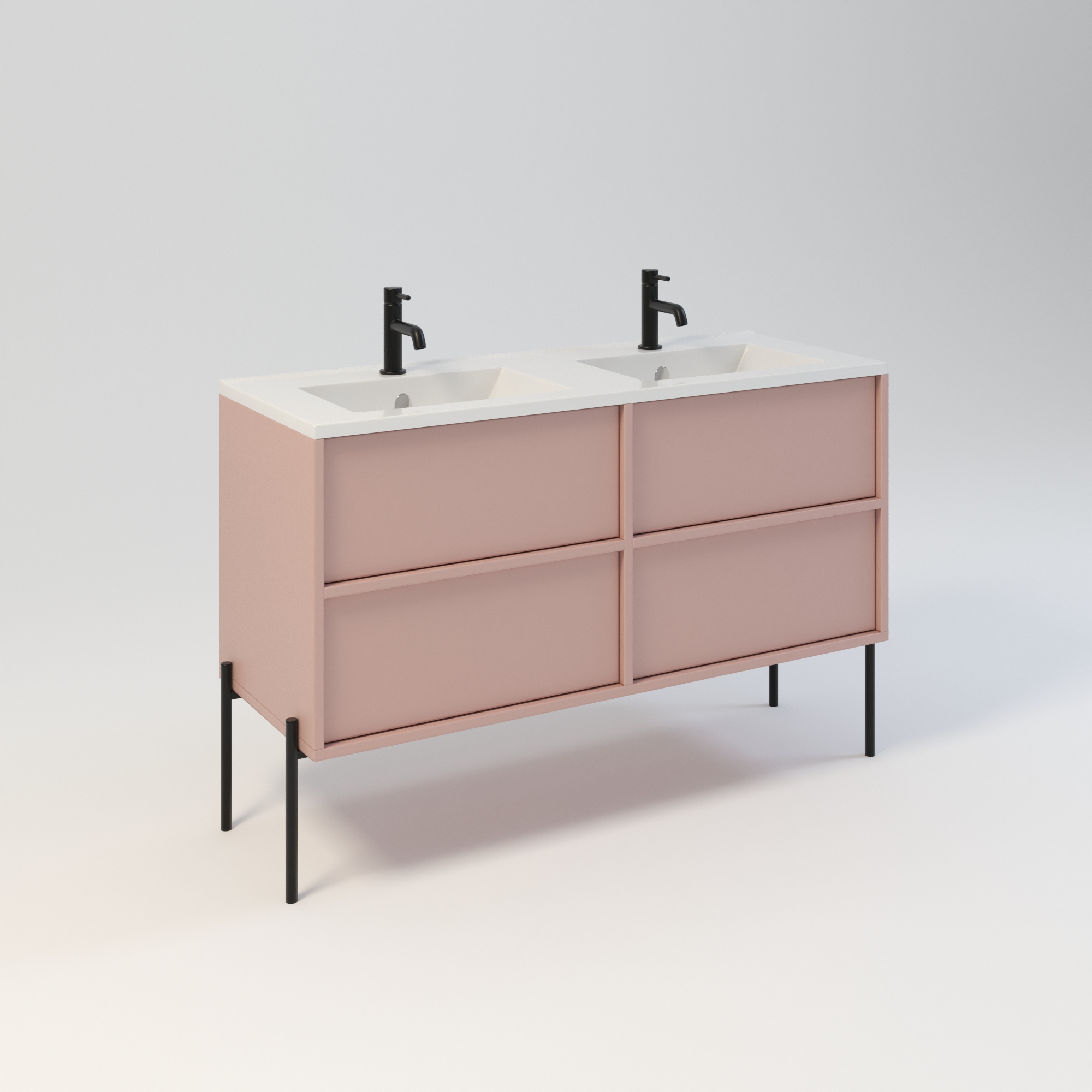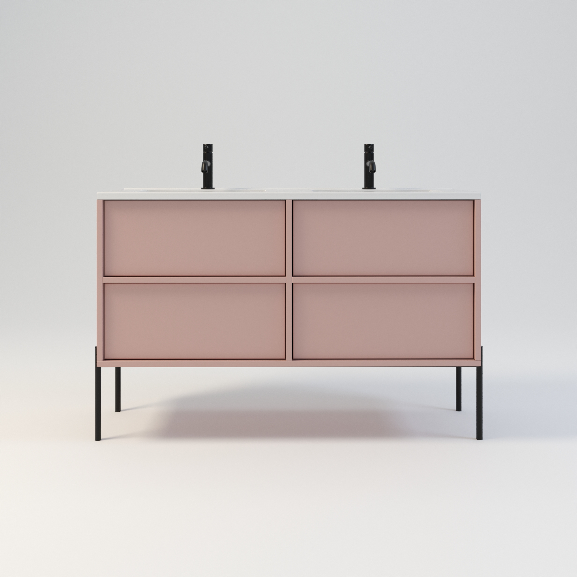 Szafka łazienkowa Minimal 4 z umywalką to nowoczesny zestaw łazienkowy który, składa się z szafki łazienkowej z czterema szufladami oraz podwójnej umywalki ceramicznej pełniącej jednocześnie funkcję blatu. Komplet ten jest niezwykle funkcjonalnym i trwałym rozwiązaniem. Połączenie uniwersalnego stylu z geometryczną formą sprawia, że szafka dobrze komponuje się w różnych aranżacjach. Można ją dopasować zarówno do łazienek nowoczesnych, jak i klasycznych. Dostępność kilku kolorów oraz opcjonalnych uchwytów ułatwia dopasowanie mebla do stylu wnętrza. To połączenie prostoty z nowoczesnym stylem, które nie wychodzi z mody.
