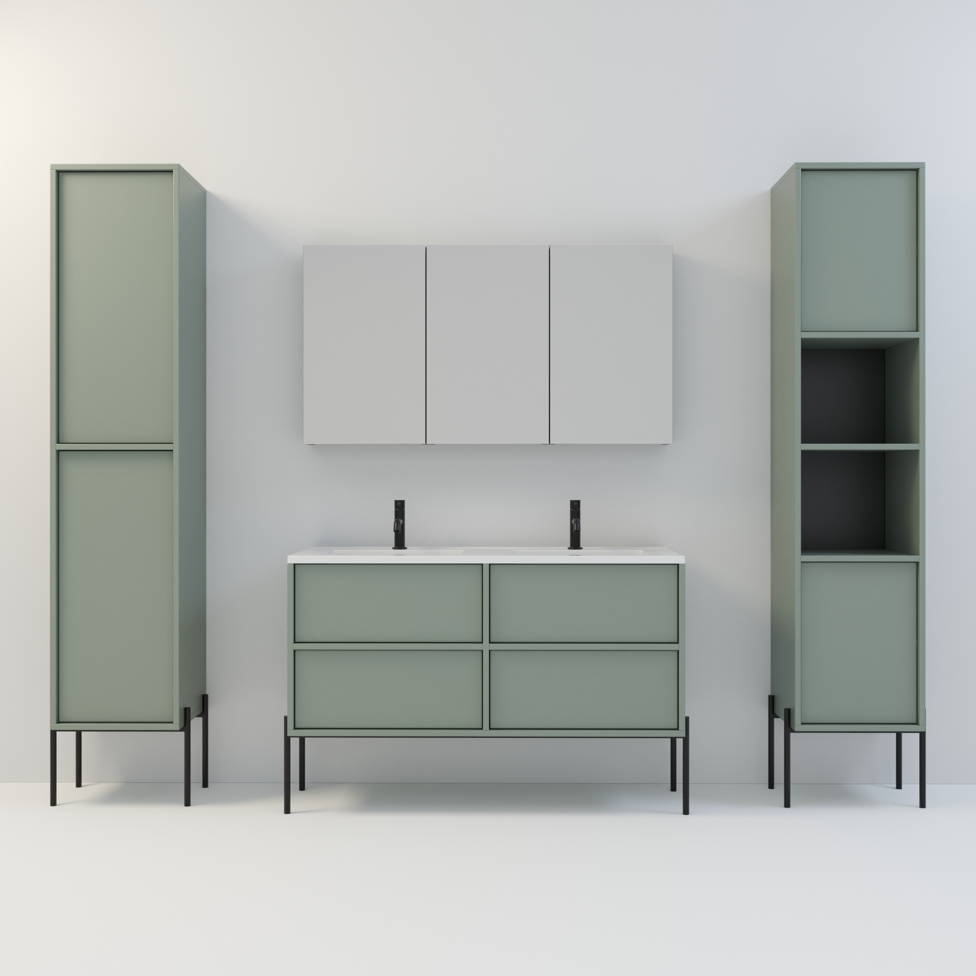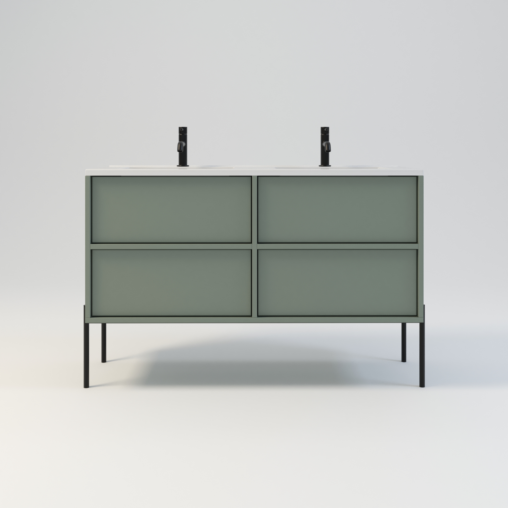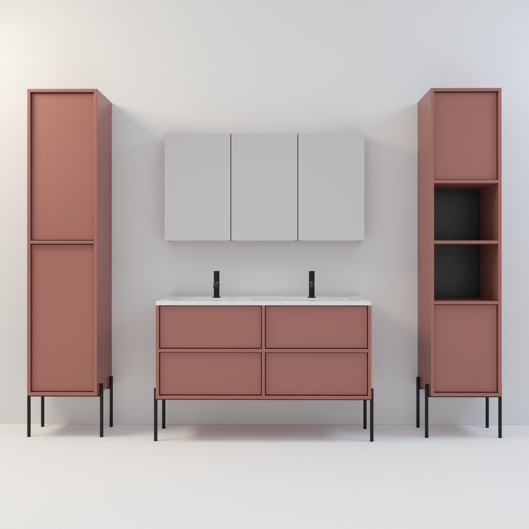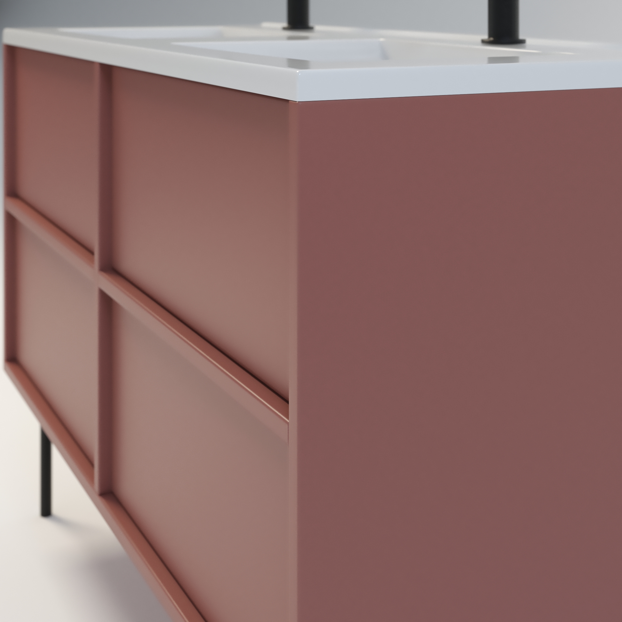 Szafka łazienkowa Minimal 4 z umywalką to nowoczesny zestaw łazienkowy który, składa się z szafki łazienkowej z czterema szufladami oraz podwójnej umywalki ceramicznej pełniącej jednocześnie funkcję blatu. Komplet ten jest niezwykle funkcjonalnym i trwałym rozwiązaniem. Połączenie uniwersalnego stylu z geometryczną formą sprawia, że szafka dobrze komponuje się w różnych aranżacjach. Można ją dopasować zarówno do łazienek nowoczesnych, jak i klasycznych. Dostępność kilku kolorów oraz opcjonalnych uchwytów ułatwia dopasowanie mebla do stylu wnętrza. To połączenie prostoty z nowoczesnym stylem, które nie wychodzi z mody.