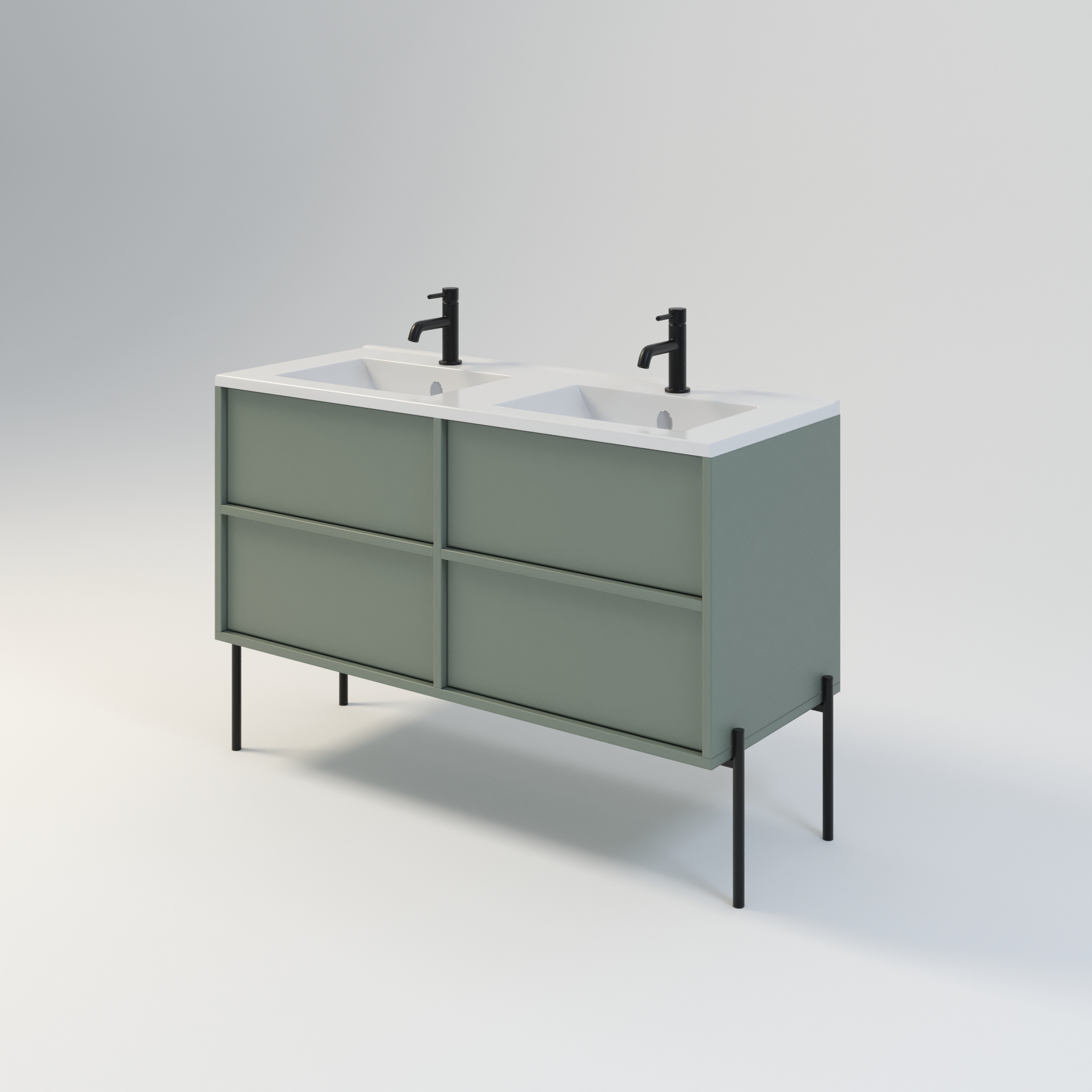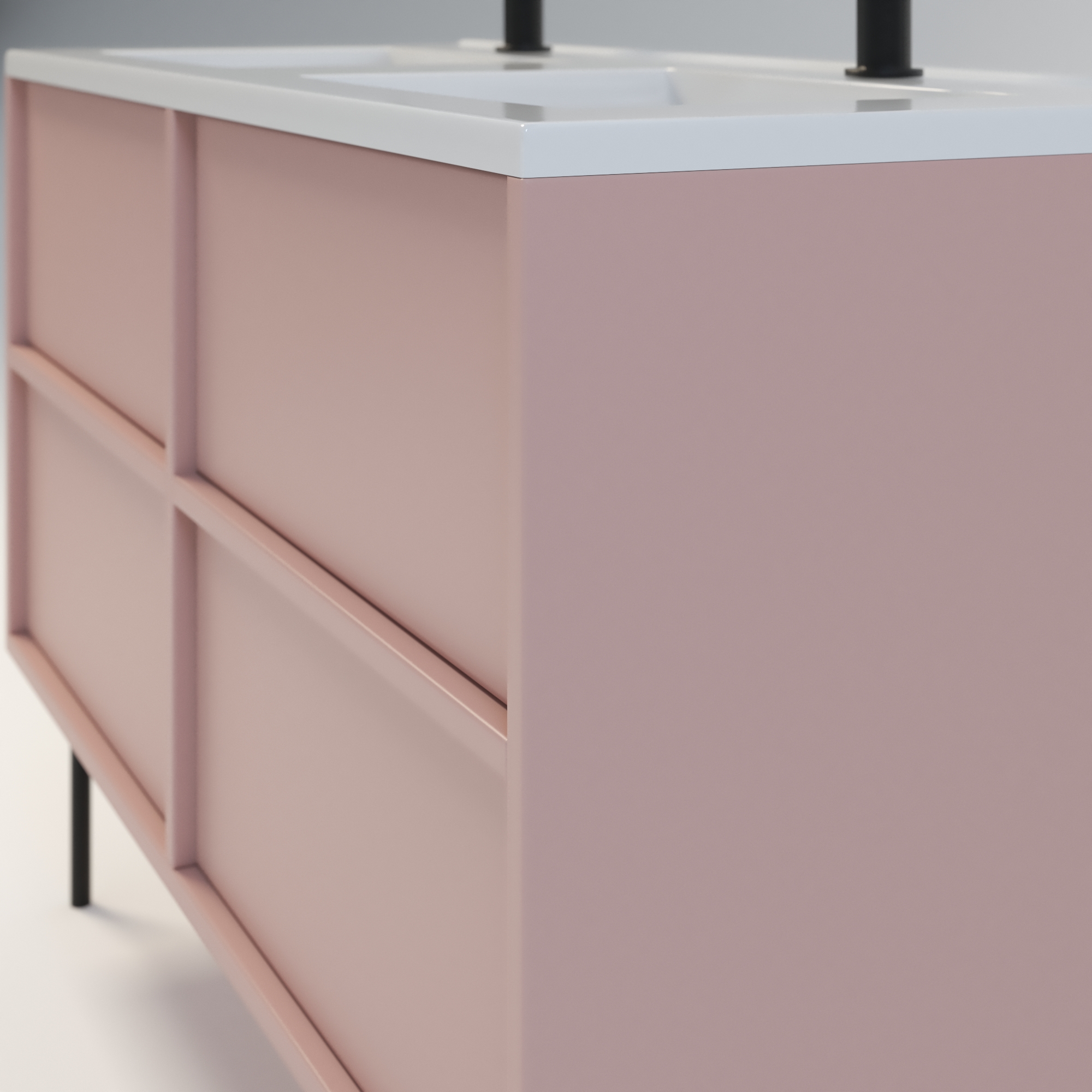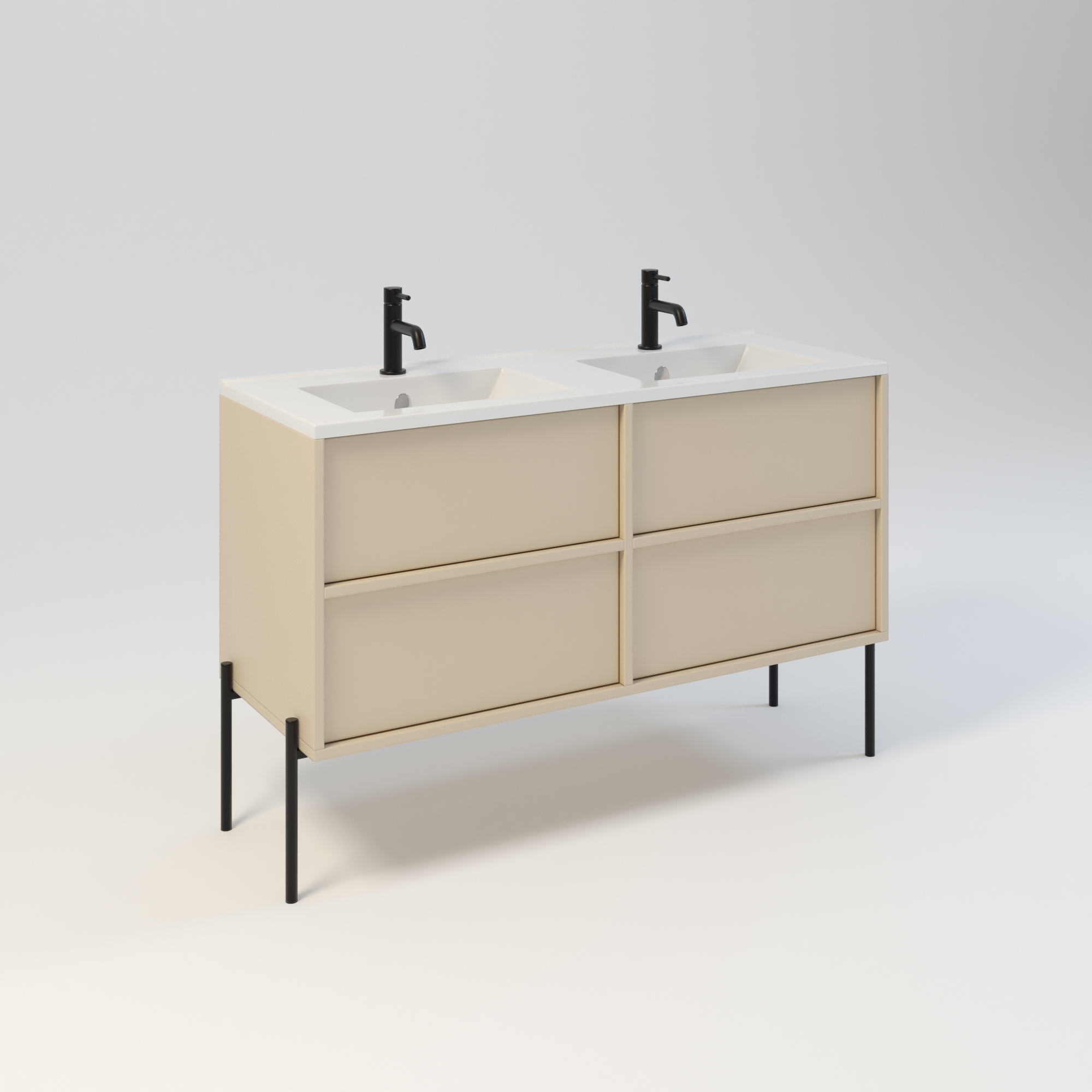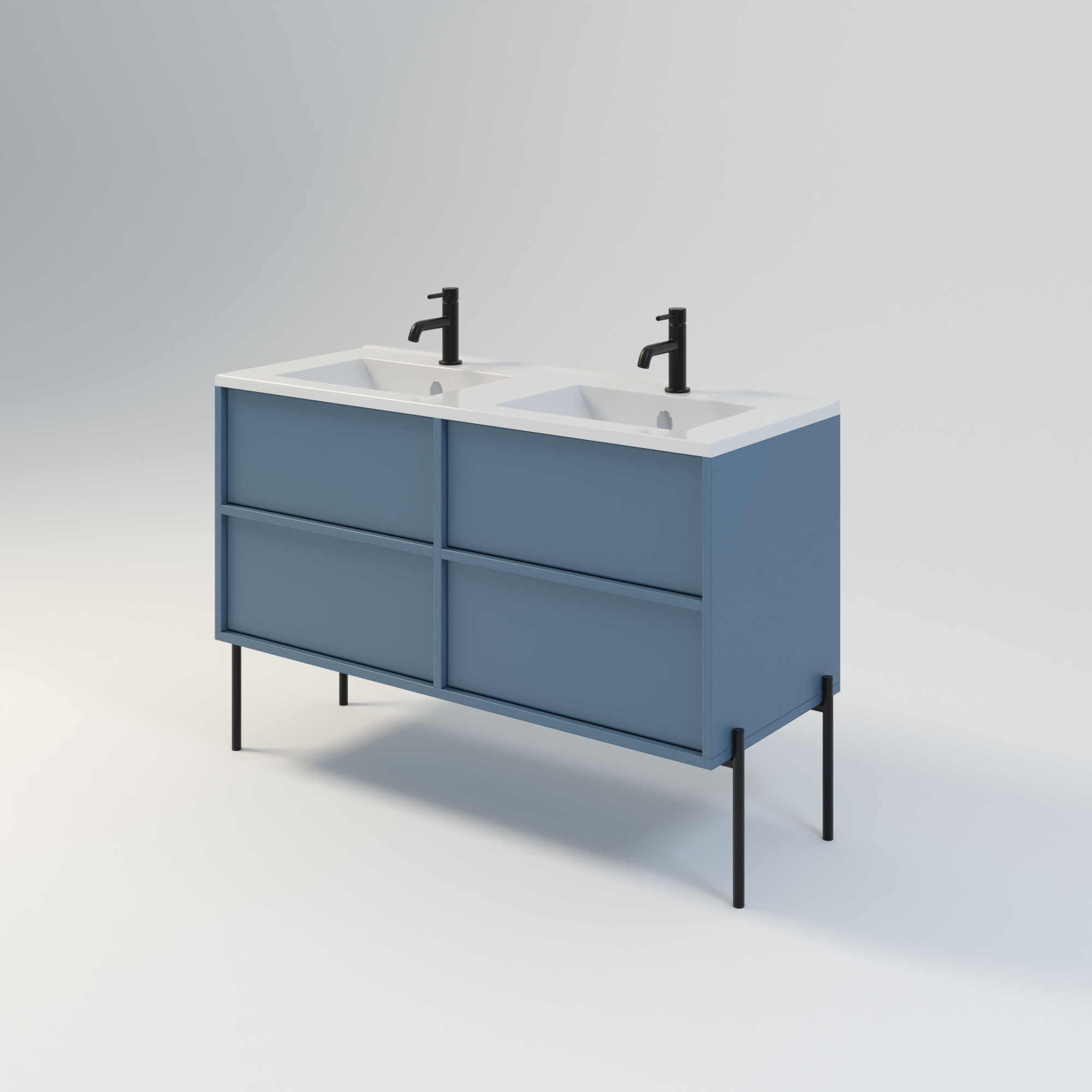 Szafka łazienkowa Minimal 4 z umywalką to nowoczesny zestaw łazienkowy który, składa się z szafki łazienkowej z czterema szufladami oraz podwójnej umywalki ceramicznej pełniącej jednocześnie funkcję blatu. Komplet ten jest niezwykle funkcjonalnym i trwałym rozwiązaniem. Połączenie uniwersalnego stylu z geometryczną formą sprawia, że szafka dobrze komponuje się w różnych aranżacjach.