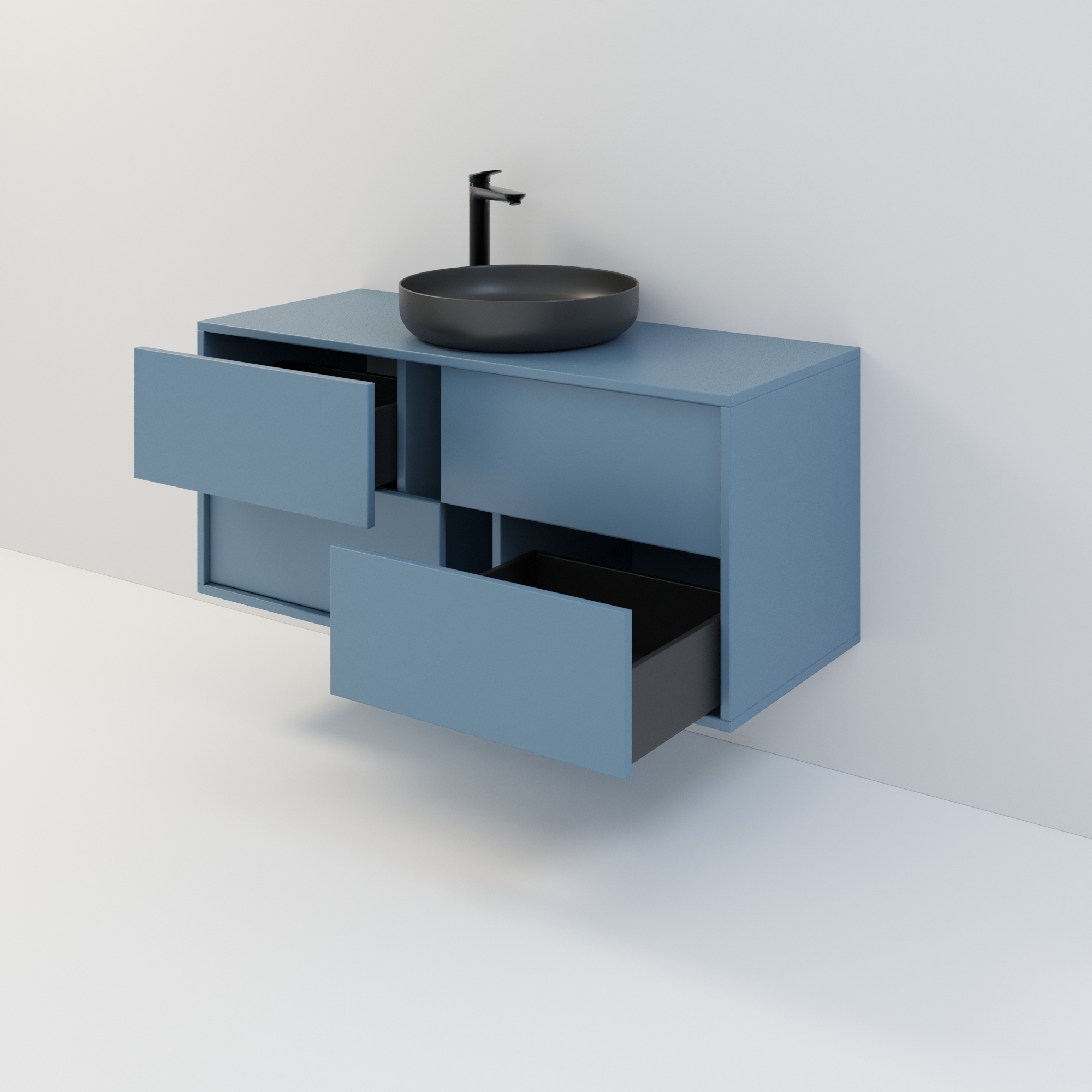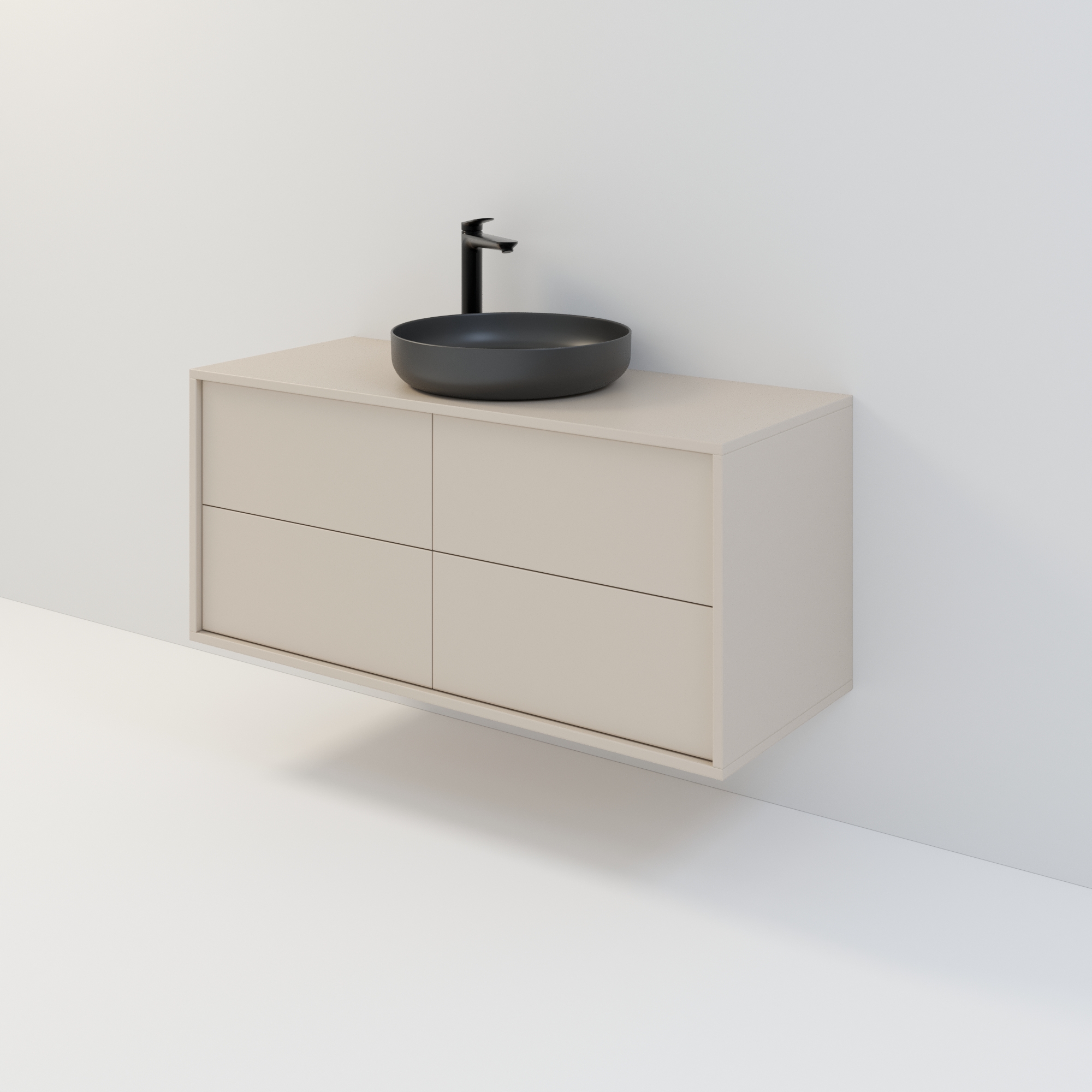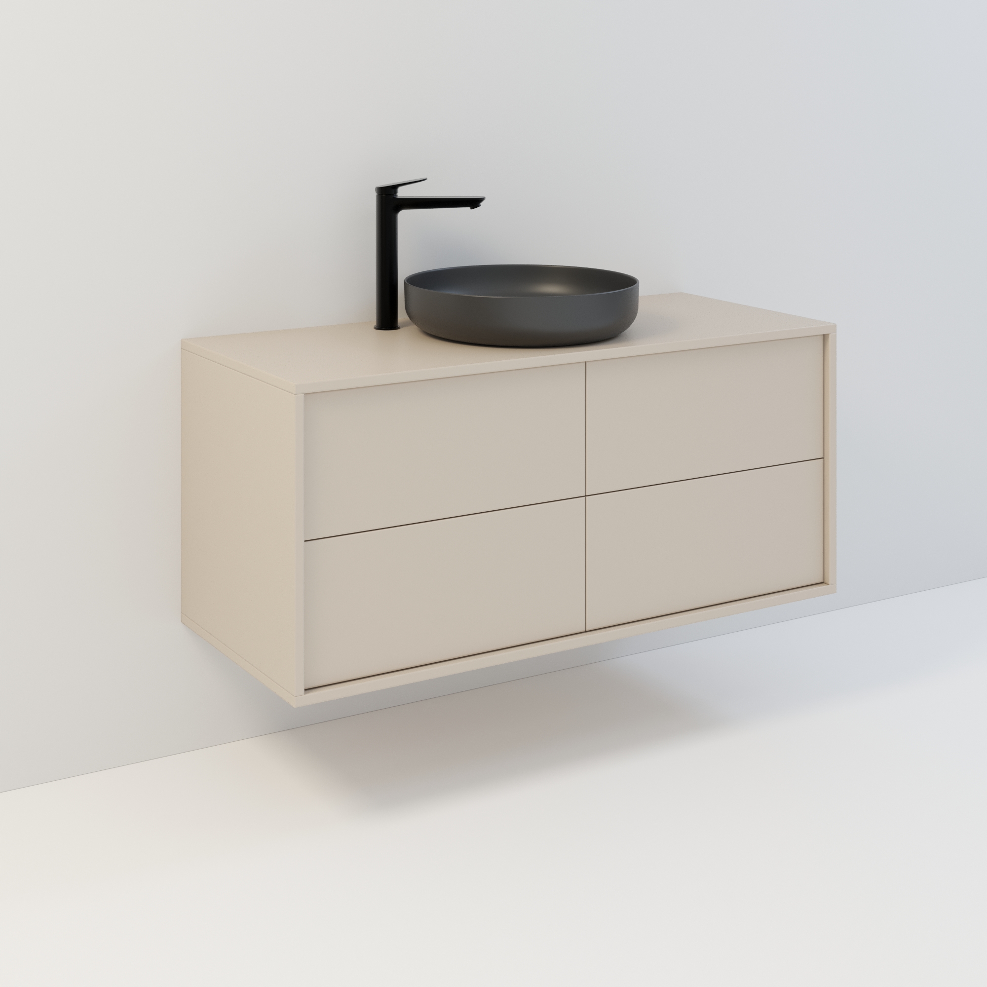 Szafka Minimal 4 UC została zaprojektowana z myślą o codziennym komforcie, dlatego oferuje wiele praktycznych rozwiązań. Wykonano ją z trwałej płyty laminowanej, która charakteryzuje się odpornością na uszkodzenia oraz łatwym utrzymaniem czystości. Co istotne, cztery pojemne szuflady umożliwiają wygodne przechowywanie akcesoriów – od kosmetyków po ręczniki. Szuflady otwierają się lekko dzięki systemowi „push to open” z synchronizatorami, które zapewniają płynne działanie. W wersji z uchwytami zastosowano prowadnice z cichym domykiem, co wpływa na komfort użytkowania. Mechanizm 3D w prowadnicach pozwala precyzyjnie ustawić fronty w trzech płaszczyznach, dlatego szafka zawsze wygląda estetycznie. Szafka jest przeznaczona pod montaż jednej umywalki na środku. Dzięki przemyślanej konstrukcji wszystkie szuflady są pełne i oferują dużą przestrzeń do przechowywania. Umywalka nie wchodzi w skład zestawu.