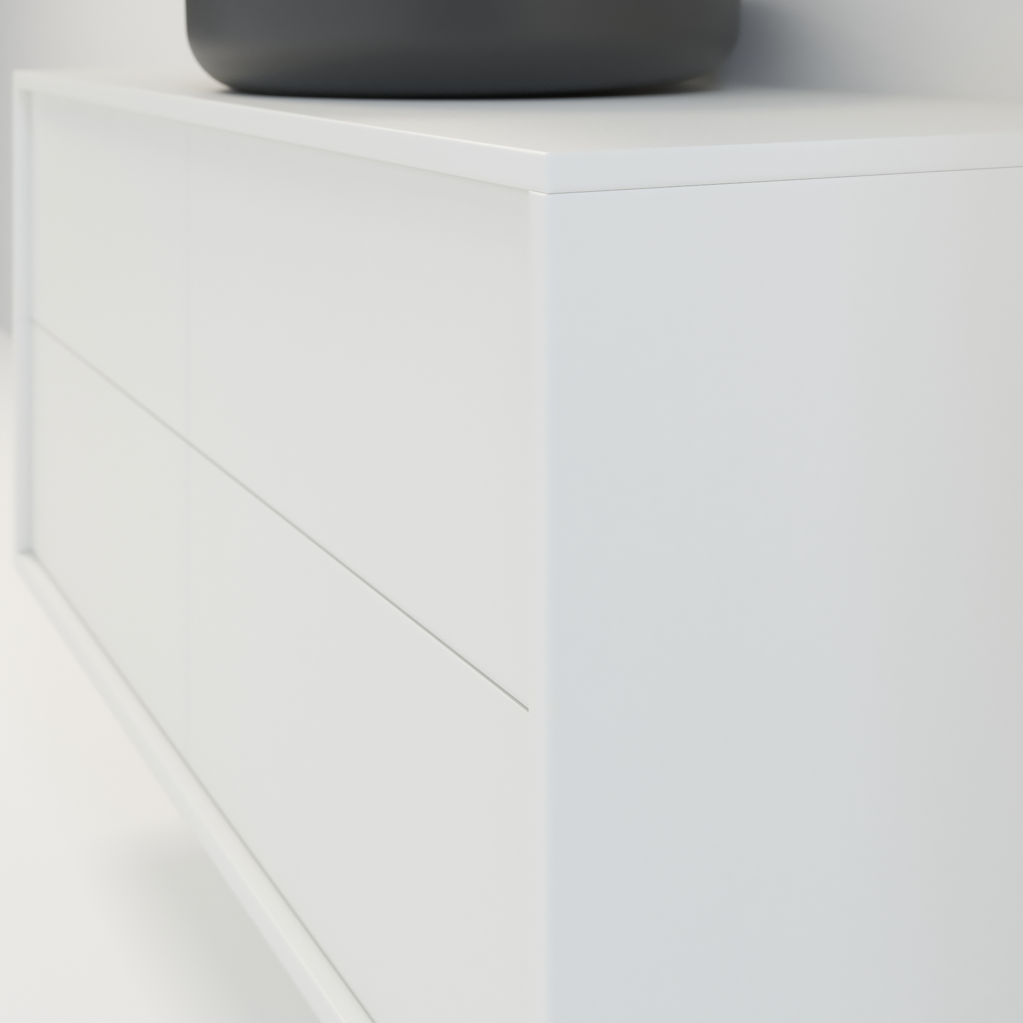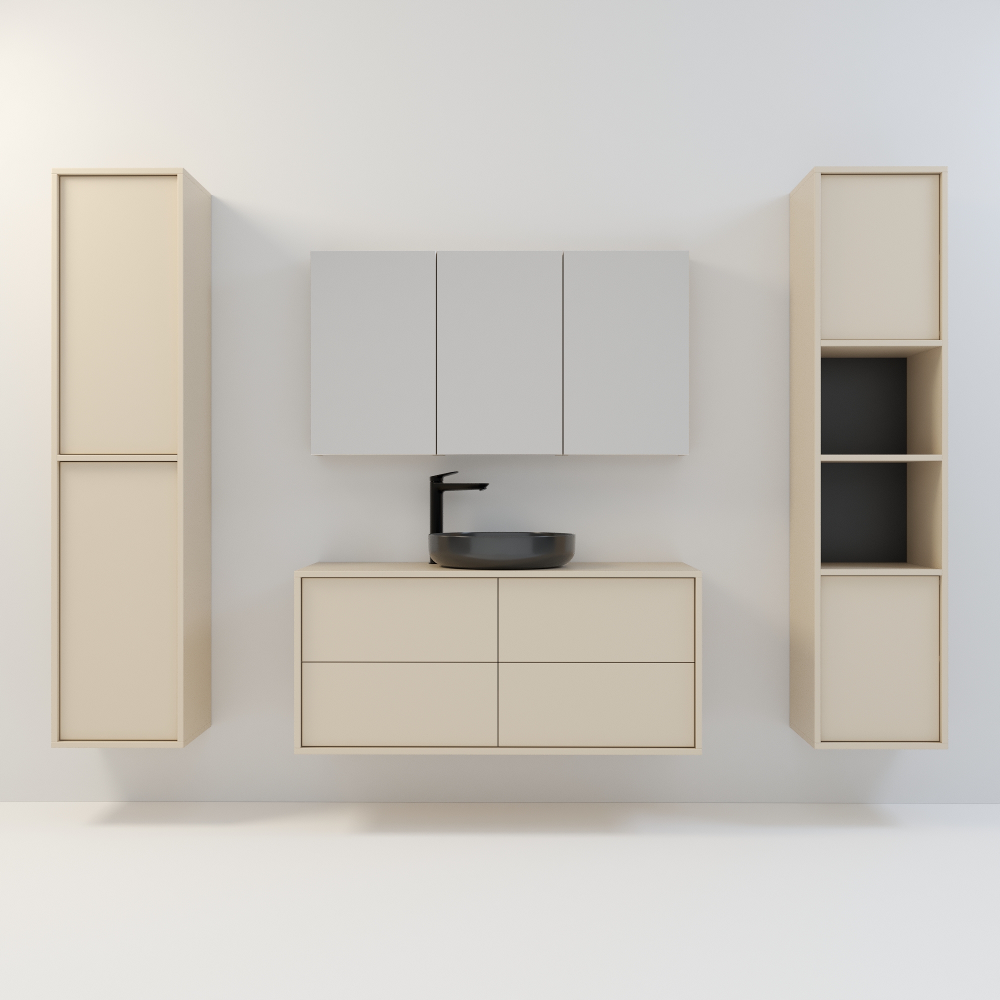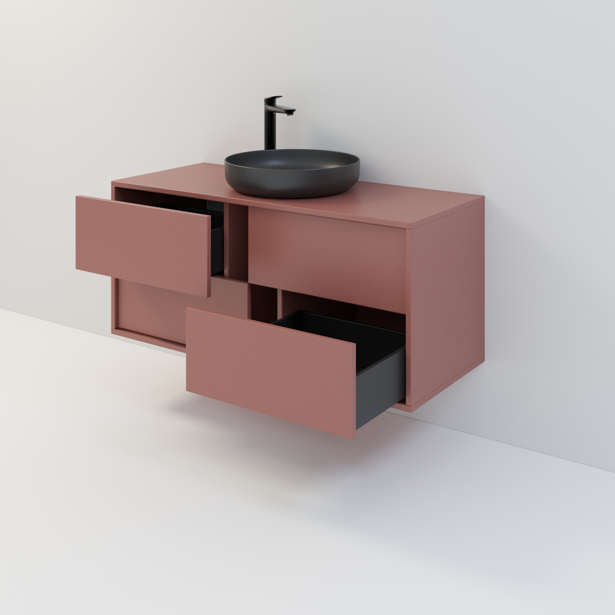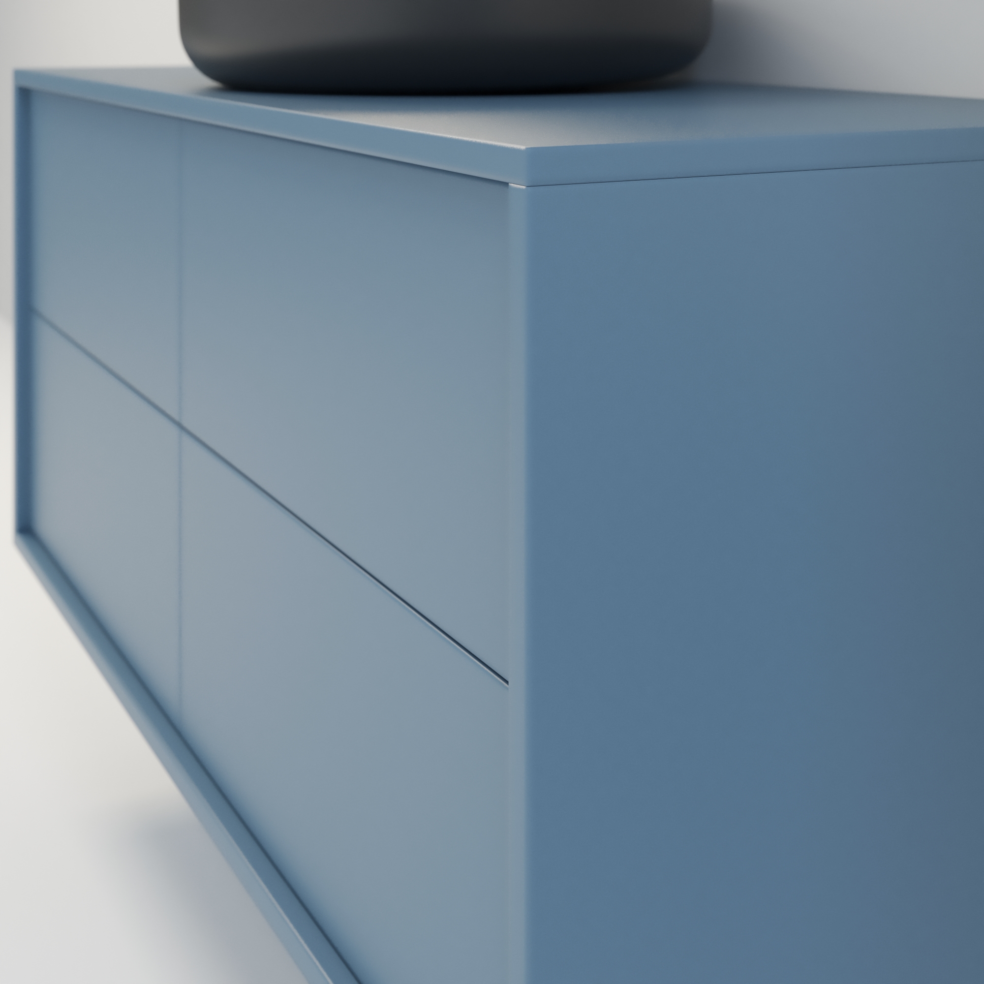 Szafka Minimal 4 UC została zaprojektowana z myślą o codziennym komforcie, dlatego oferuje wiele praktycznych rozwiązań. Wykonano ją z trwałej płyty laminowanej, która charakteryzuje się odpornością na uszkodzenia oraz łatwym utrzymaniem czystości. Co istotne, cztery pojemne szuflady umożliwiają wygodne przechowywanie akcesoriów – od kosmetyków po ręczniki. Szuflady otwierają się lekko dzięki systemowi „push to open” z synchronizatorami, które zapewniają płynne działanie. W wersji z uchwytami zastosowano prowadnice z cichym domykiem, co wpływa na komfort użytkowania. Mechanizm 3D w prowadnicach pozwala precyzyjnie ustawić fronty w trzech płaszczyznach, dlatego szafka zawsze wygląda estetycznie. Szafka jest przeznaczona pod montaż jednej umywalki na środku. Dzięki przemyślanej konstrukcji wszystkie szuflady są pełne i oferują dużą przestrzeń do przechowywania. Umywalka nie wchodzi w skład zestawu.