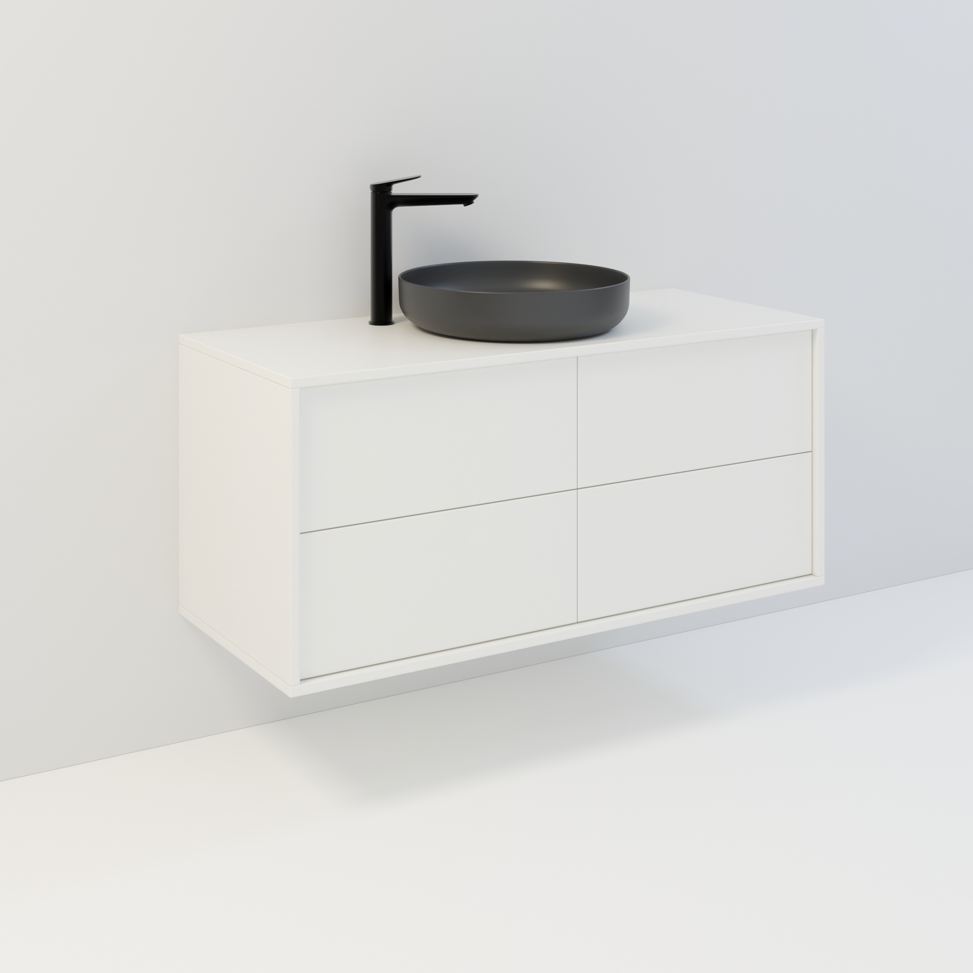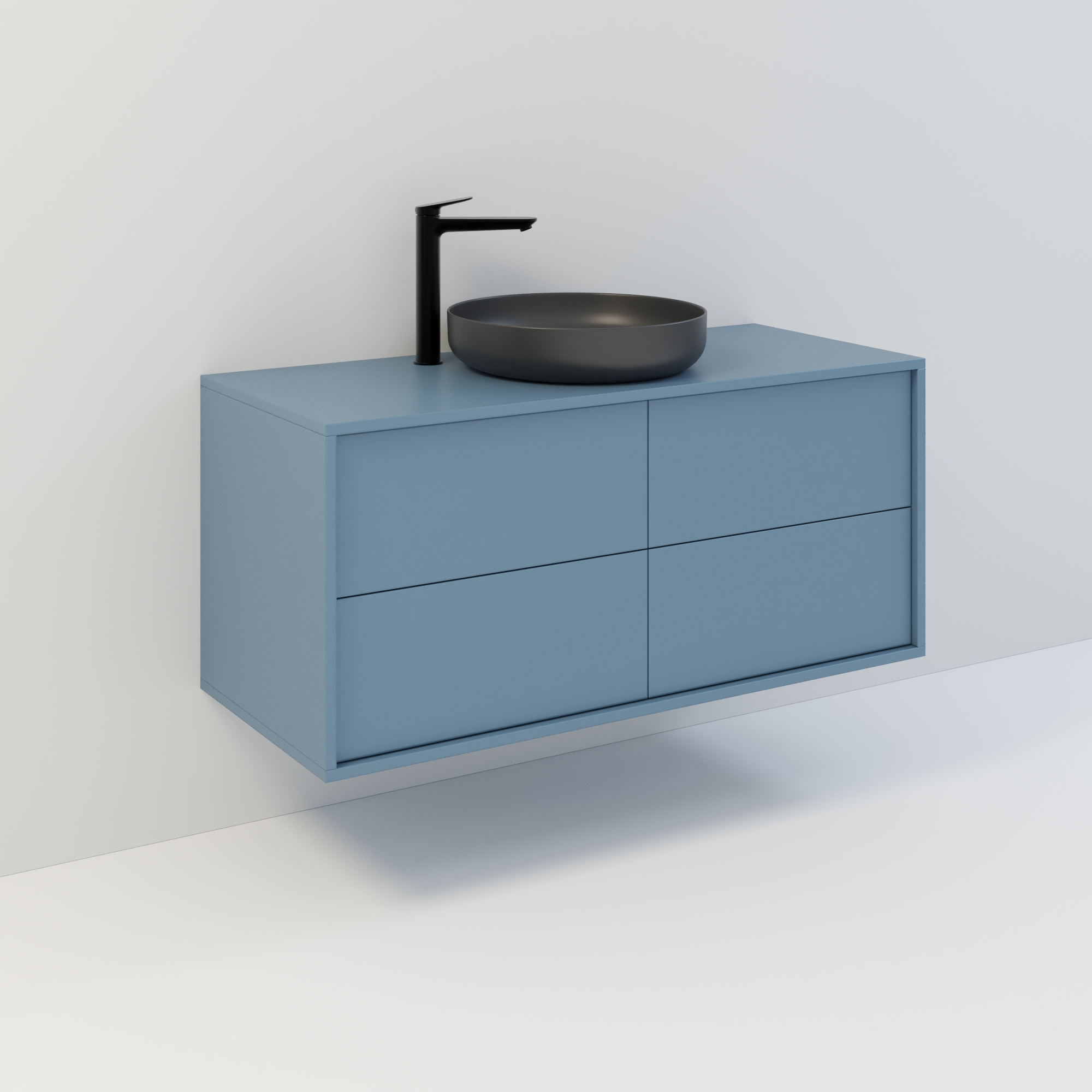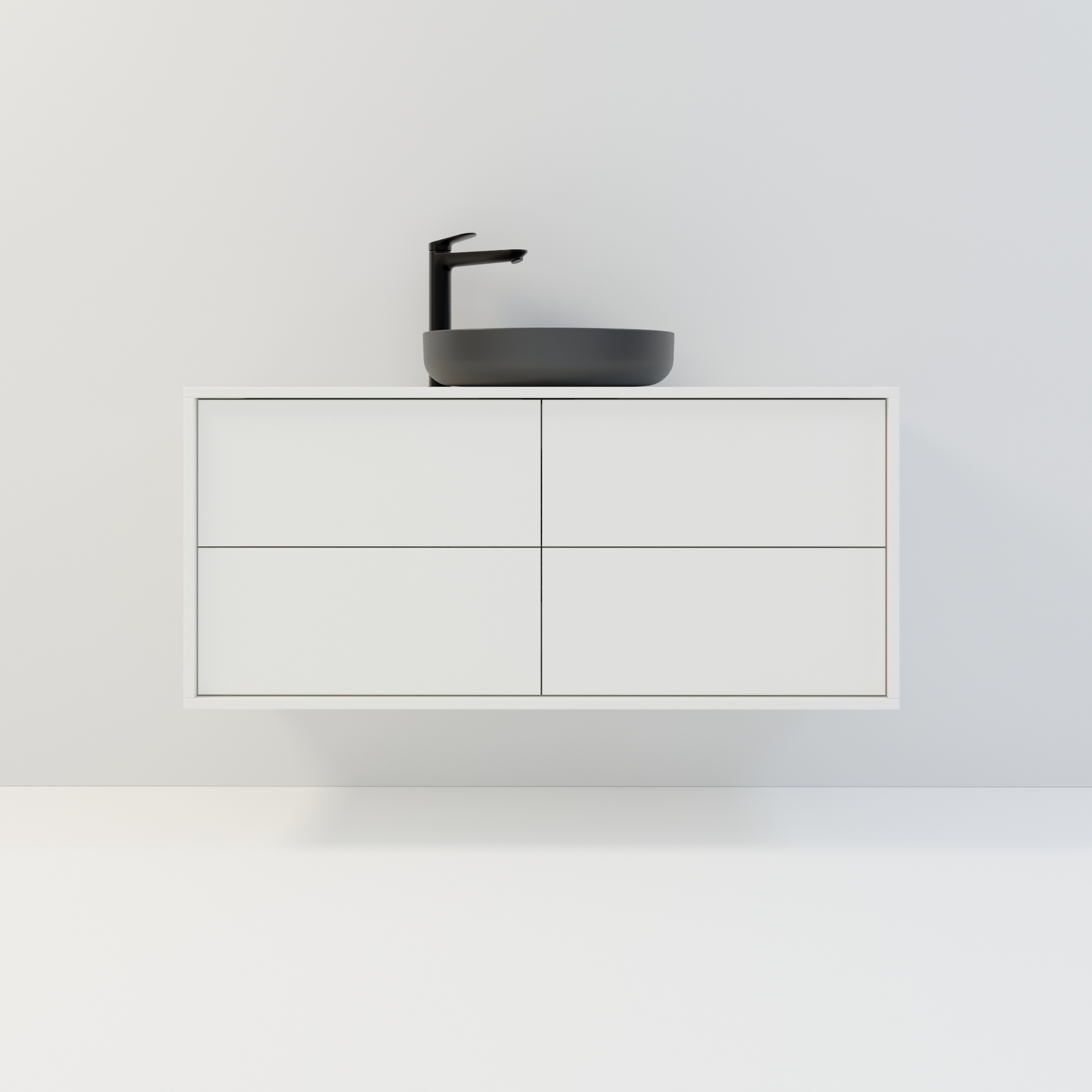 Szafka łazienkowa wisząca Minimal 4 UC. Szafka łazienkowa wisząca w stylu minimalistycznym. Zaprojektowana z myślą o osobach ceniących sobie prostotę i elegancję. Połączenie uniwersalnego designu z prostą formą sprawia, że szafka doskonale wpisuje się zarówno w nowoczesne, jak i klasyczne aranżacje wnętrz. Szuflady otwierane za pomocą mechanizmu „push to open” są wyposażone w synchronizatory gwarantujące płynne otwieranie i zamykanie. Szuflady w opcji z uchwytem są wyposażone w prowadnice z mechanizmem cichego domyku. W każdym z wymienionych typów prowadnic zastosowano mechanizm 3D, który umożliwia regulację frontów w 3 płaszczyznach. Szafka w całości wykonana z wysokiej jakości płyty laminowanej. Ten model szafki łazienkowej daje możliwość zamontowania 1 umywalki, centralnie na środku szafki. Wszystkie szuflady są pełne. Przemyślany układ wnętrza szafki ułatwia zachowanie porządku. Umywalka nie wchodzi w skład zestawu.