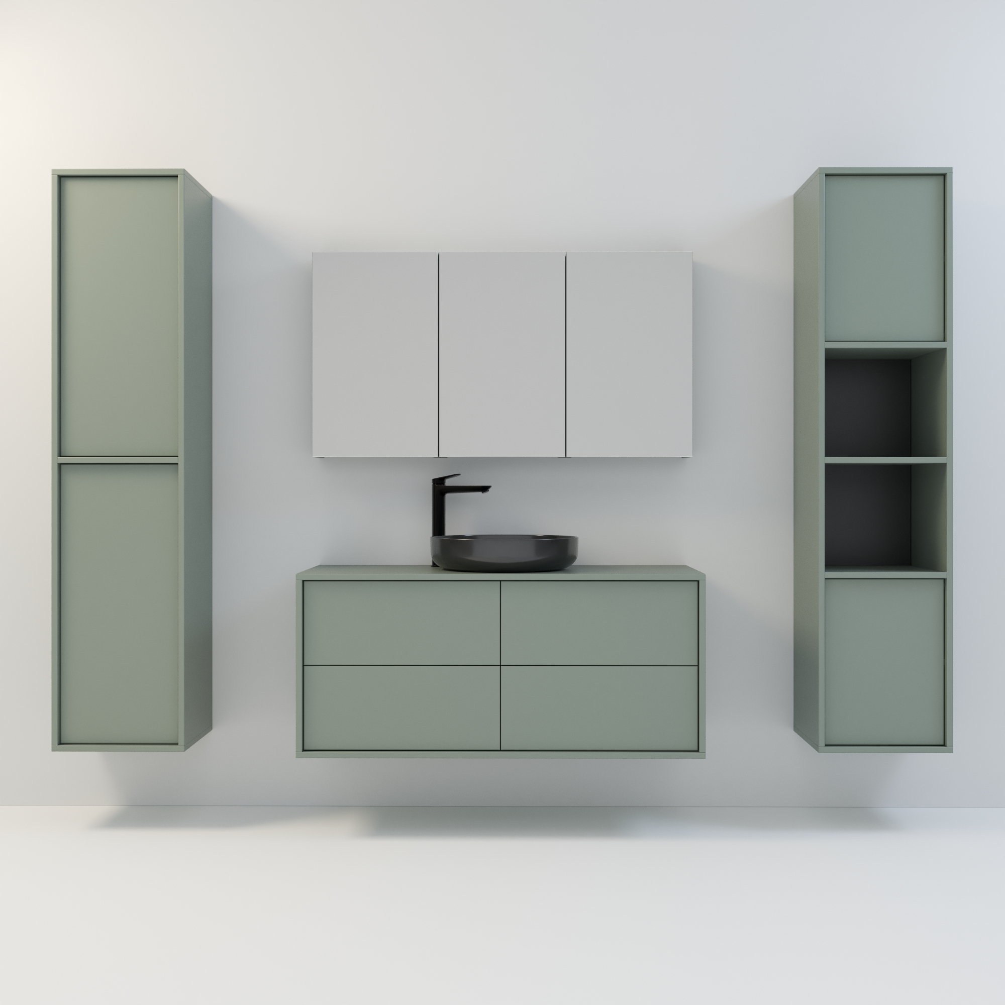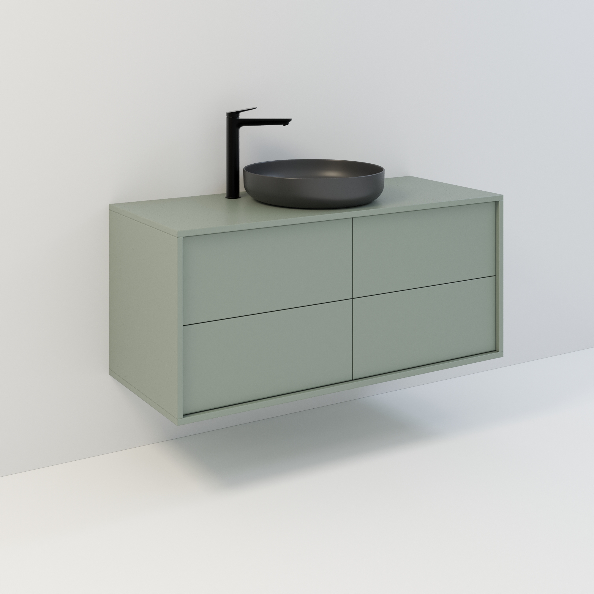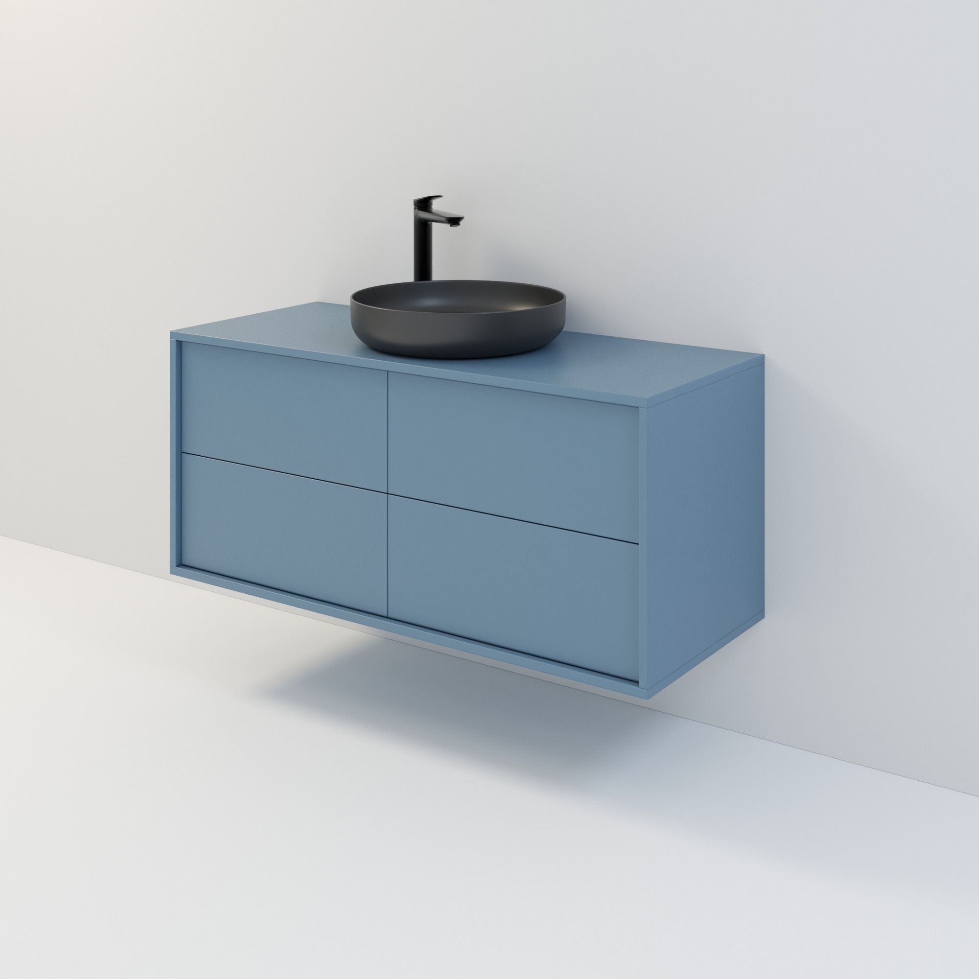 Szafka łazienkowa wisząca Minimal 4 UC. Szafka łazienkowa wisząca w stylu minimalistycznym. Zaprojektowana z myślą o osobach ceniących sobie prostotę i elegancję. Połączenie uniwersalnego designu z prostą formą sprawia, że szafka doskonale wpisuje się zarówno w nowoczesne, jak i klasyczne aranżacje wnętrz. Szuflady otwierane za pomocą mechanizmu „push to open” są wyposażone w synchronizatory gwarantujące płynne otwieranie i zamykanie. Szuflady w opcji z uchwytem są wyposażone w prowadnice z mechanizmem cichego domyku. W każdym z wymienionych typów prowadnic zastosowano mechanizm 3D, który umożliwia regulację frontów w 3 płaszczyznach. Szafka w całości wykonana z wysokiej jakości płyty laminowanej. Ten model szafki łazienkowej daje możliwość zamontowania 1 umywalki, centralnie na środku szafki. Wszystkie szuflady są pełne. Przemyślany układ wnętrza szafki ułatwia zachowanie porządku. Umywalka nie wchodzi w skład zestawu.
