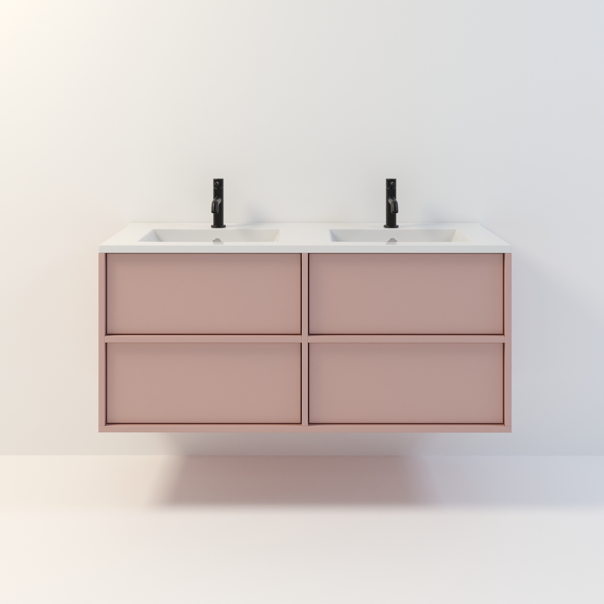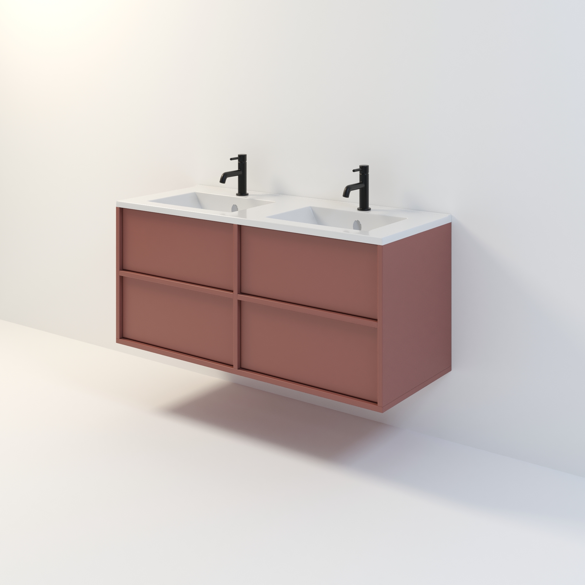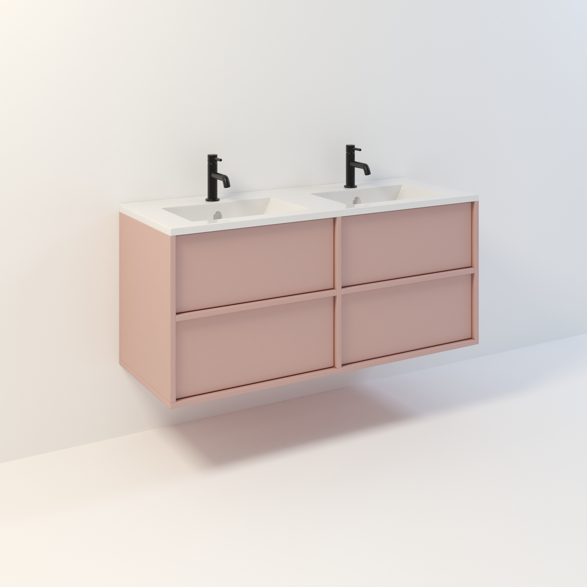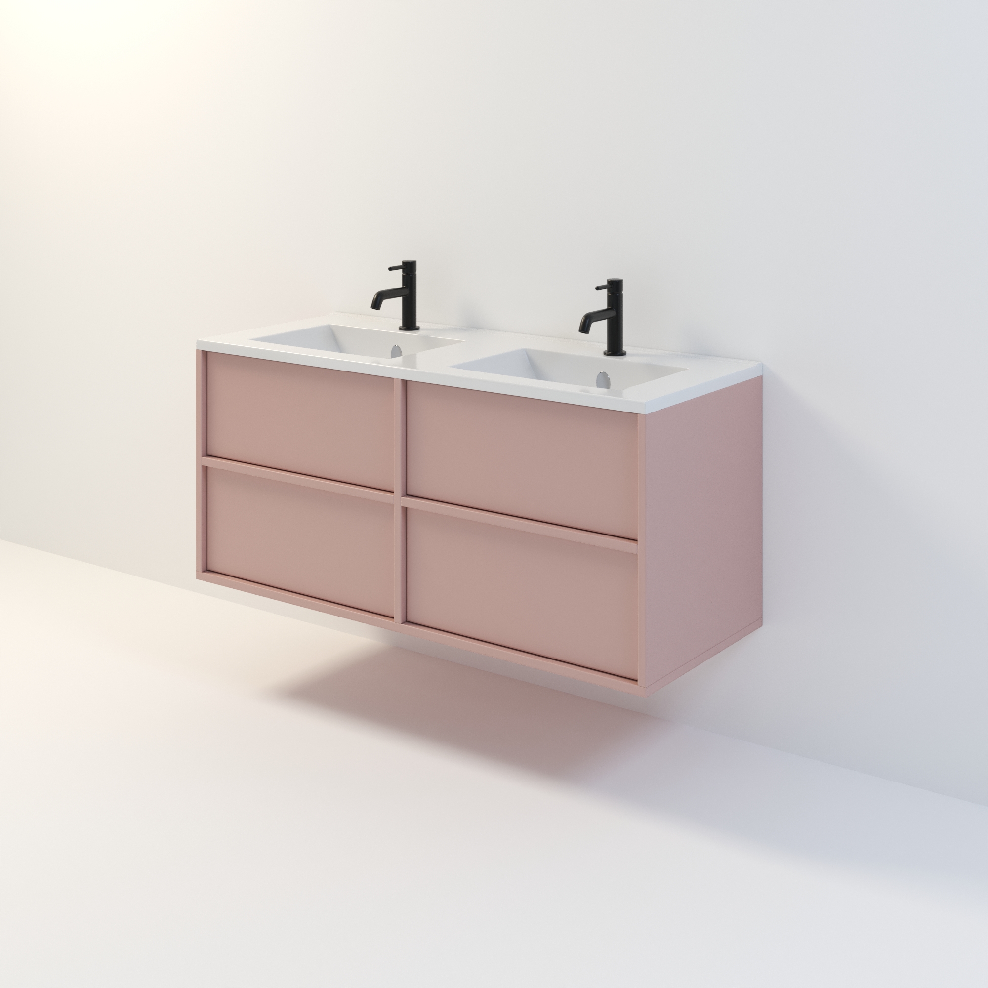 Szafka łazienkowa wisząca Minimal 4 z umywalką to nowoczesny zestaw łazienkowy który, składa się z szafki łazienkowej z czterema szufladami oraz podwójnej umywalki ceramicznej pełniącej jednocześnie funkcję blatu. Komplet ten jest niezwykle funkcjonalnym i trwałym rozwiązaniem. Połączenie uniwersalnego stylu z geometryczną formą sprawia, że szafka dobrze komponuje się w różnych aranżacjach. Można ją dopasować zarówno do łazienek nowoczesnych, jak i klasycznych. Dostępność kilku kolorów oraz opcjonalnych uchwytów ułatwia dopasowanie mebla do stylu wnętrza. To połączenie prostoty z nowoczesnym stylem, które nie wychodzi z mody.