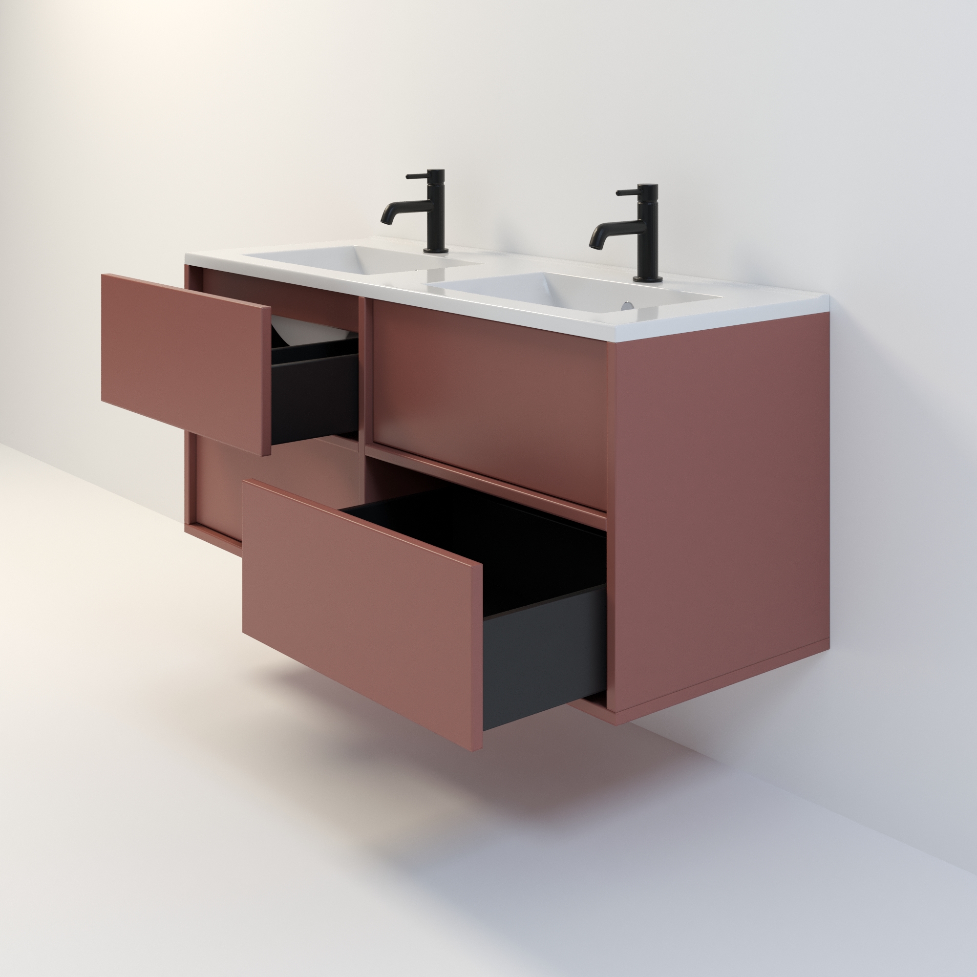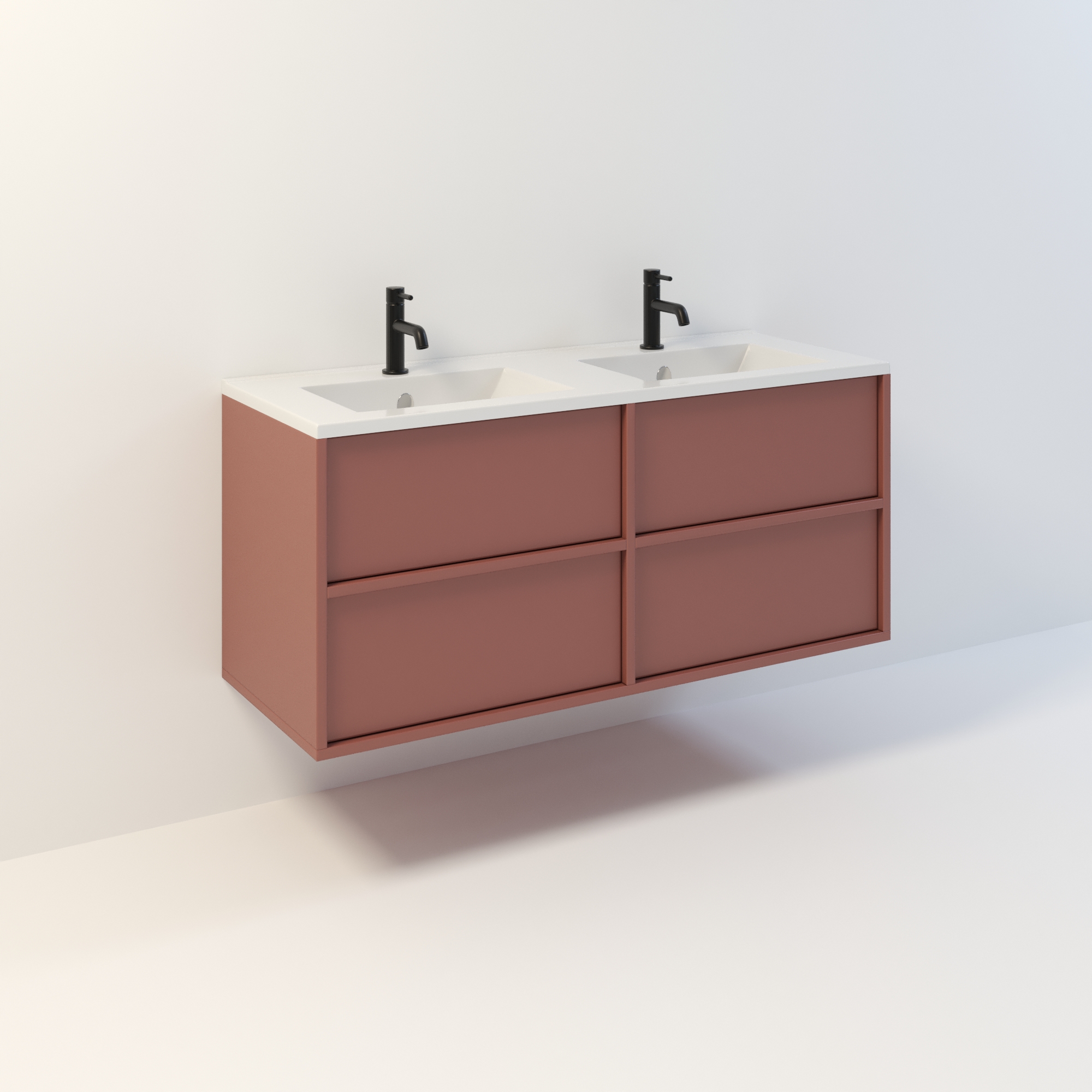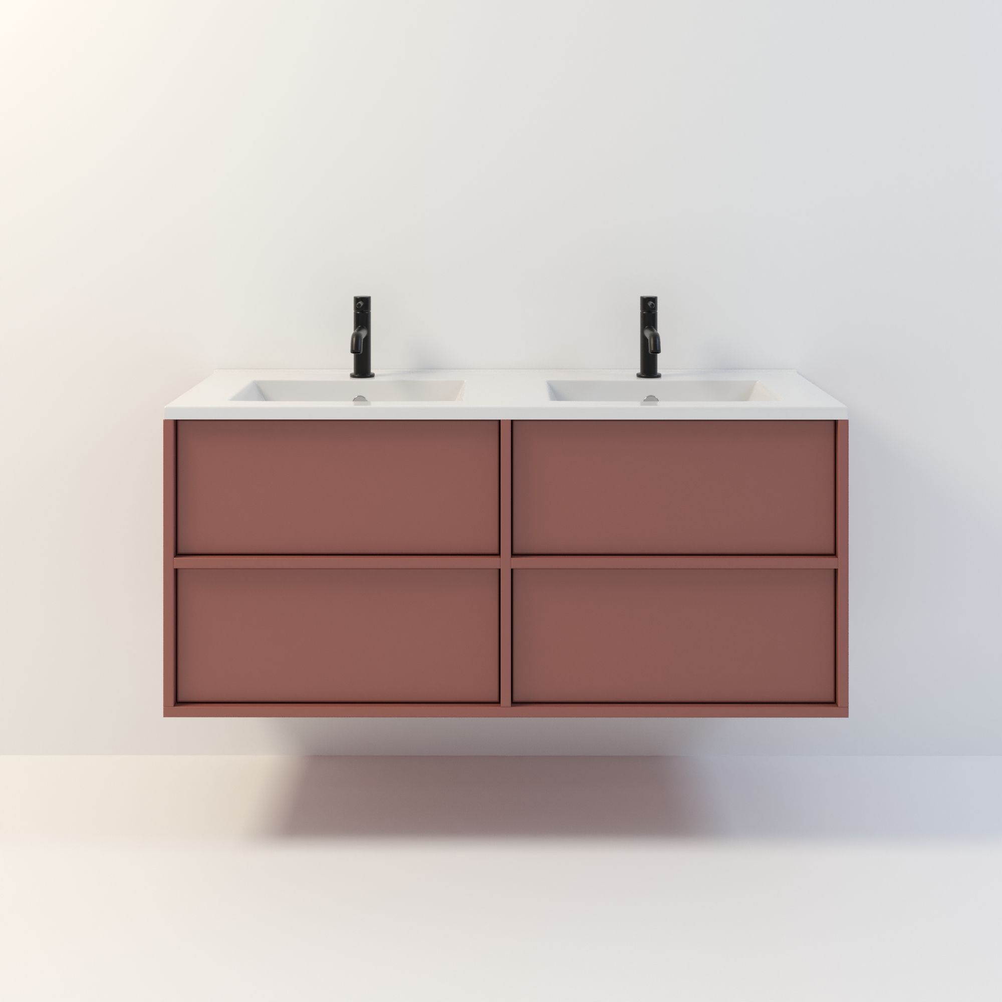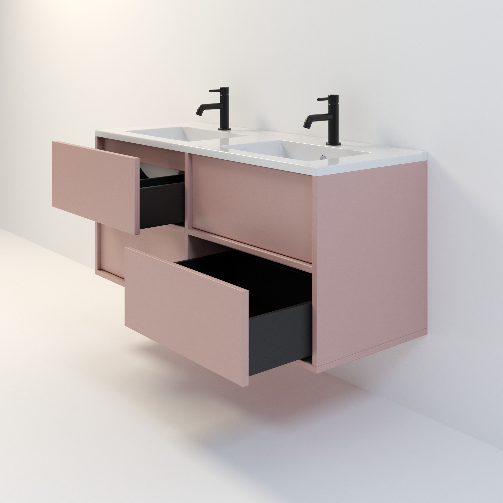 Szafka łazienkowa wisząca Minimal 4 z umywalką to nowoczesny zestaw łazienkowy który, składa się z szafki łazienkowej z czterema szufladami oraz podwójnej umywalki ceramicznej pełniącej jednocześnie funkcję blatu. Komplet ten jest niezwykle funkcjonalnym i trwałym rozwiązaniem. Połączenie uniwersalnego stylu z geometryczną formą sprawia, że szafka dobrze komponuje się w różnych aranżacjach. Można ją dopasować zarówno do łazienek nowoczesnych, jak i klasycznych. Dostępność kilku kolorów oraz opcjonalnych uchwytów ułatwia dopasowanie mebla do stylu wnętrza. To połączenie prostoty z nowoczesnym stylem, które nie wychodzi z mody.