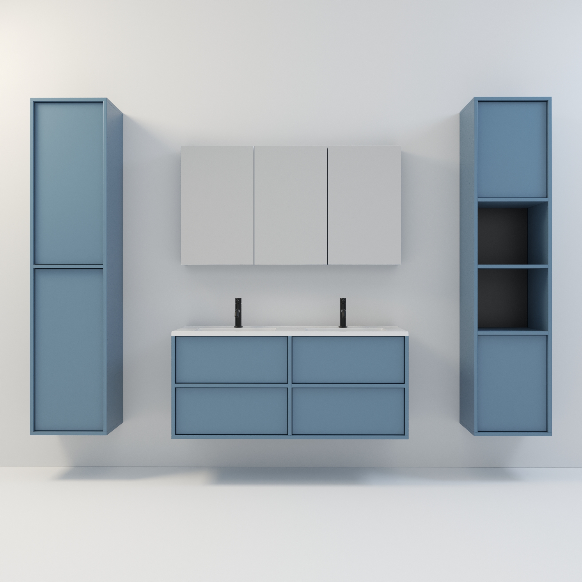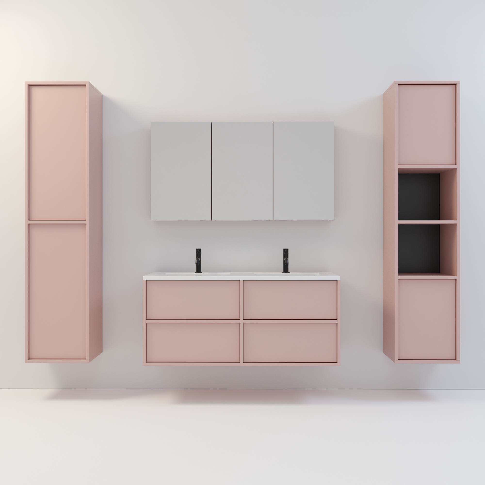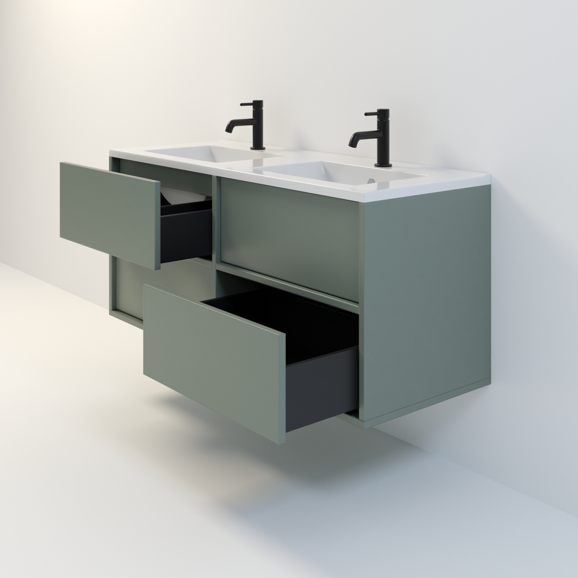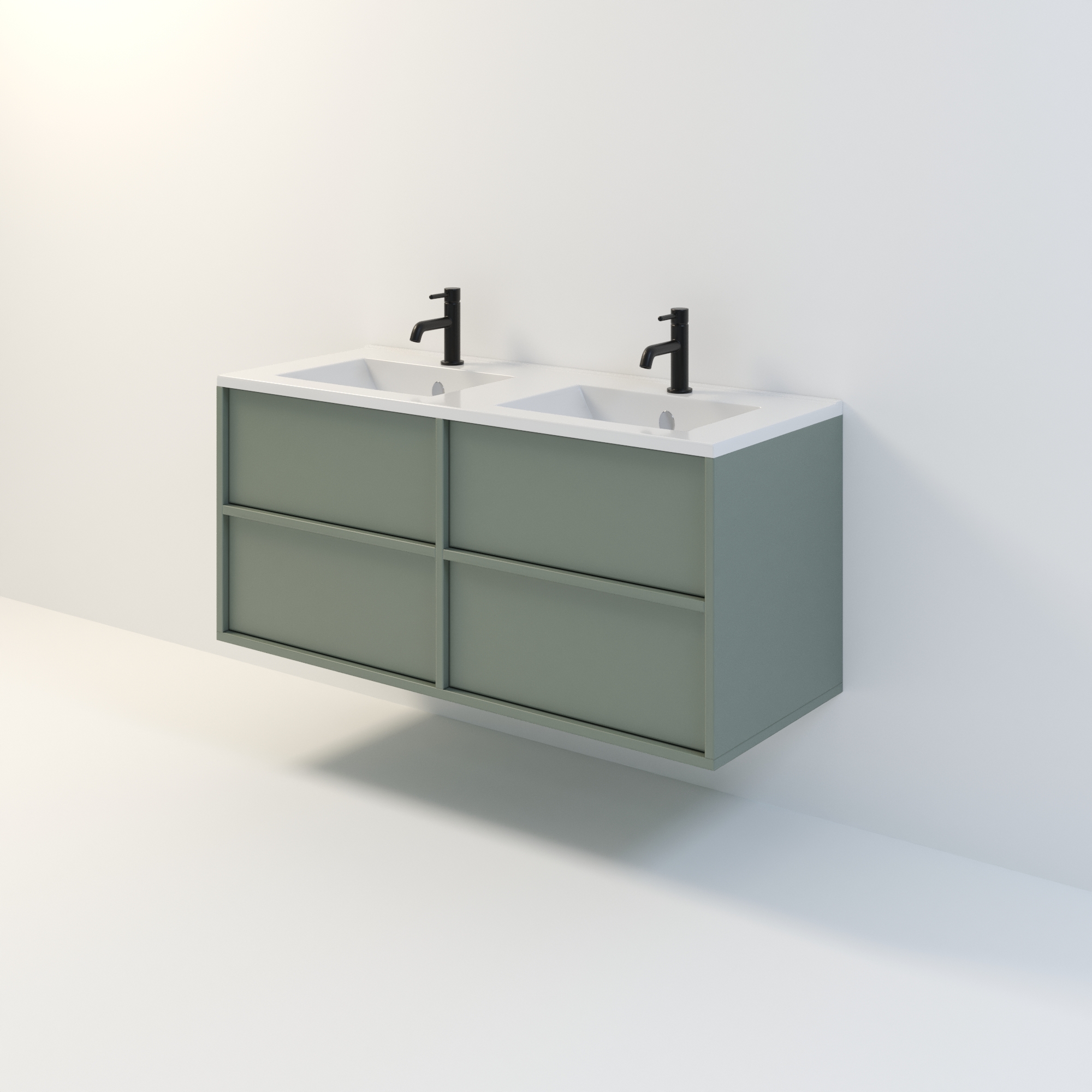 Szafka łazienkowa wisząca Minimal 4 z umywalką to nowoczesny zestaw łazienkowy który, składa się z szafki łazienkowej z czterema szufladami oraz podwójnej umywalki ceramicznej pełniącej jednocześnie funkcję blatu. Komplet ten jest niezwykle funkcjonalnym i trwałym rozwiązaniem. Połączenie uniwersalnego stylu z geometryczną formą sprawia, że szafka dobrze komponuje się w różnych aranżacjach. Można ją dopasować zarówno do łazienek nowoczesnych, jak i klasycznych. Dostępność kilku kolorów oraz opcjonalnych uchwytów ułatwia dopasowanie mebla do stylu wnętrza. To połączenie prostoty z nowoczesnym stylem, które nie wychodzi z mody.