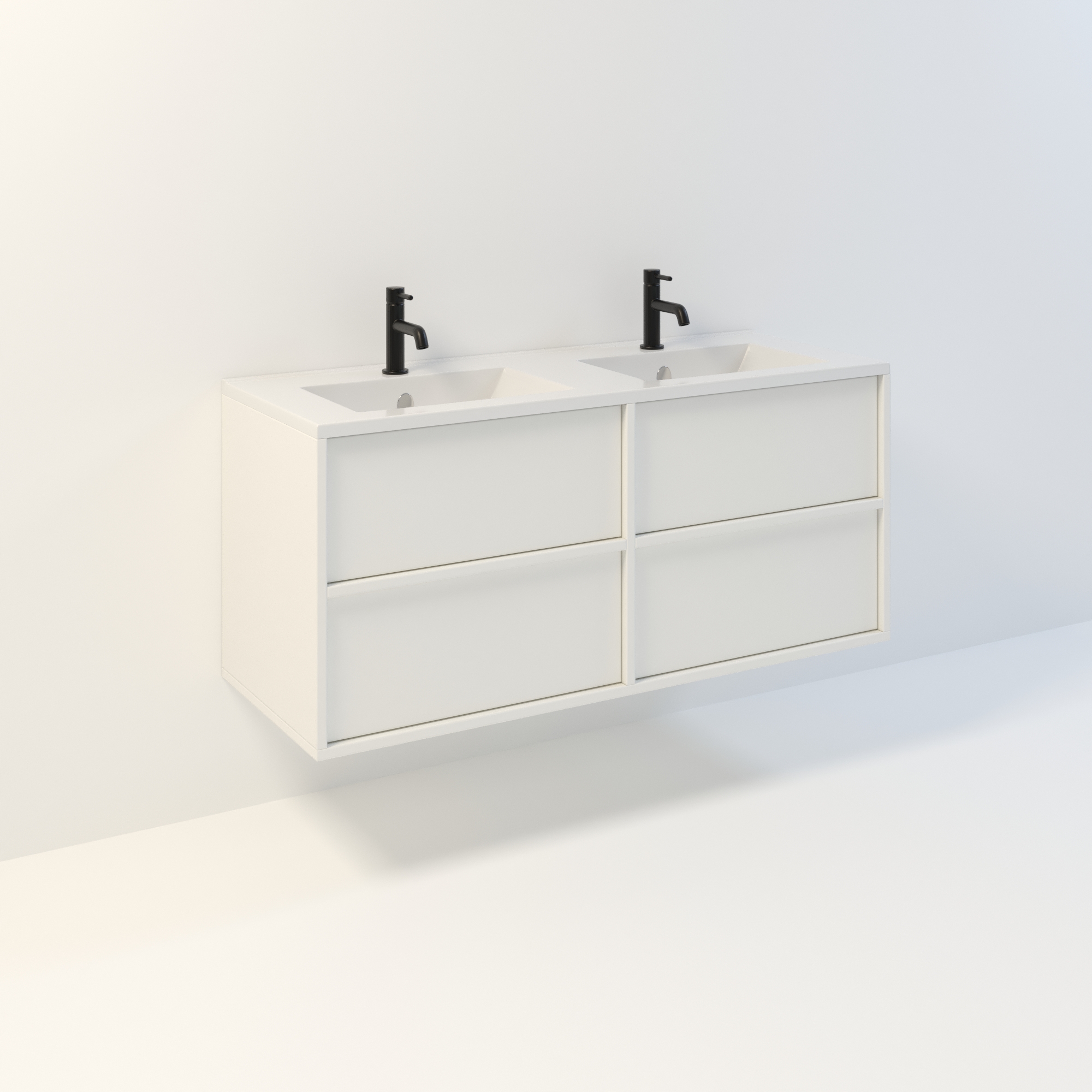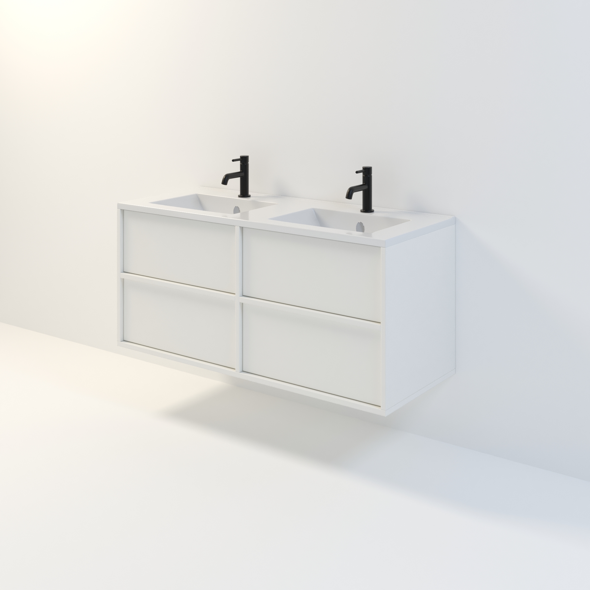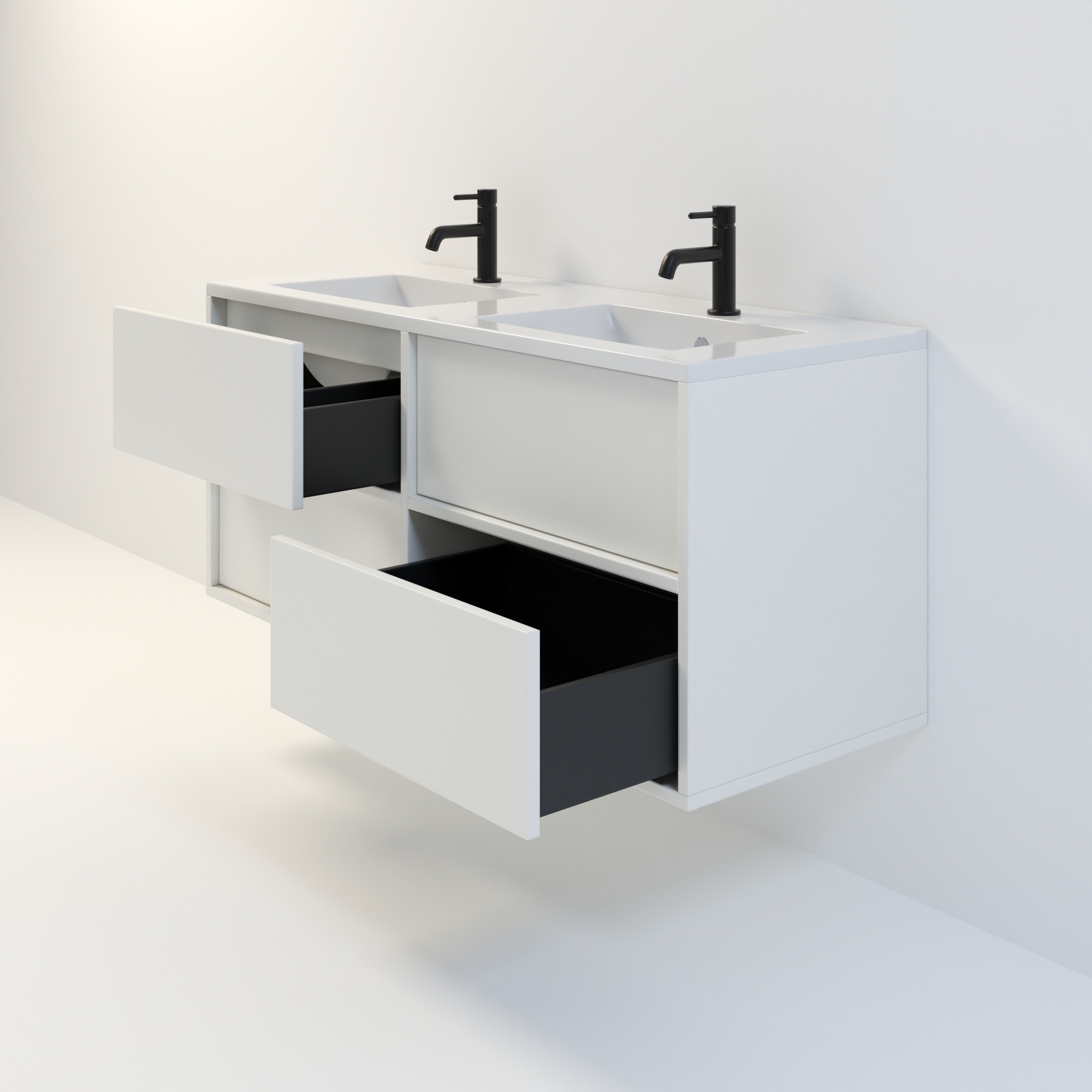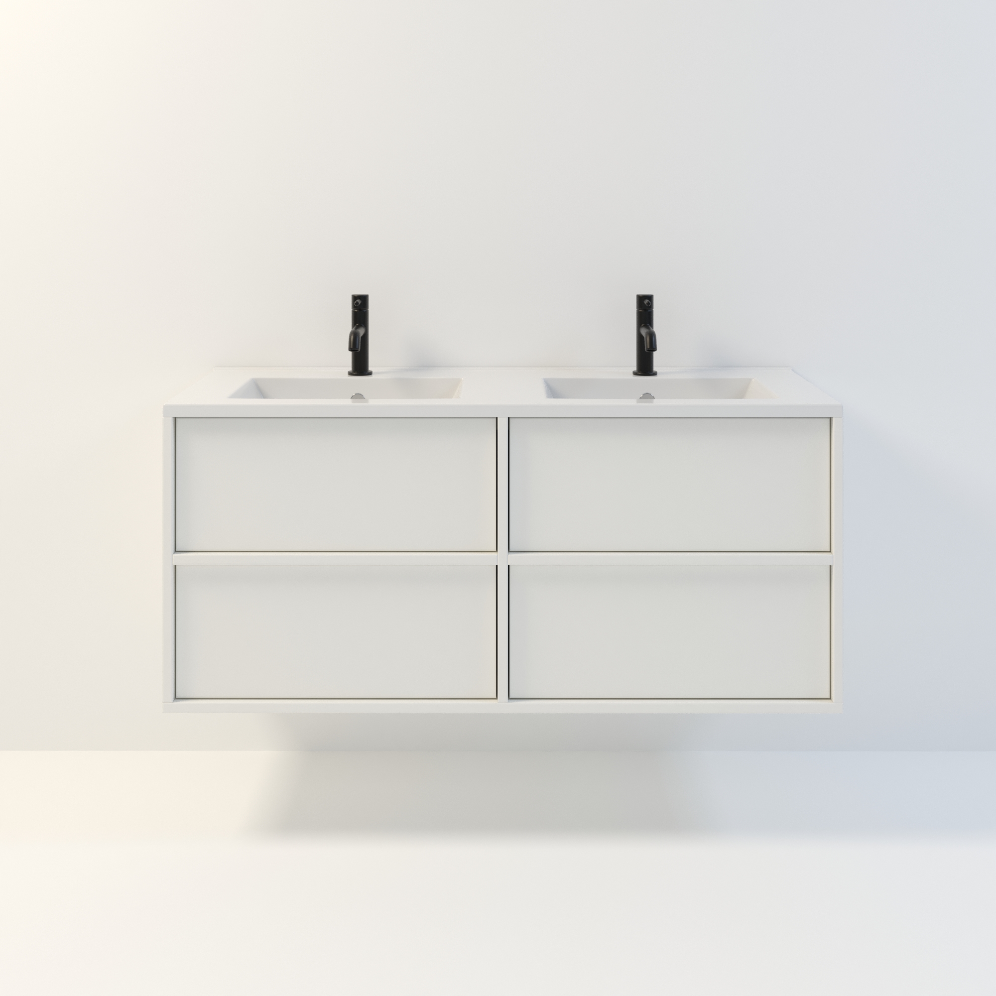 Szafka łazienkowa wisząca Minimal 4 z umywalką to nowoczesny zestaw łazienkowy który, składa się z szafki łazienkowej z czterema szufladami oraz podwójnej umywalki ceramicznej pełniącej jednocześnie funkcję blatu. Komplet ten jest niezwykle funkcjonalnym i trwałym rozwiązaniem. Połączenie uniwersalnego stylu z geometryczną formą sprawia, że szafka dobrze komponuje się w różnych aranżacjach.