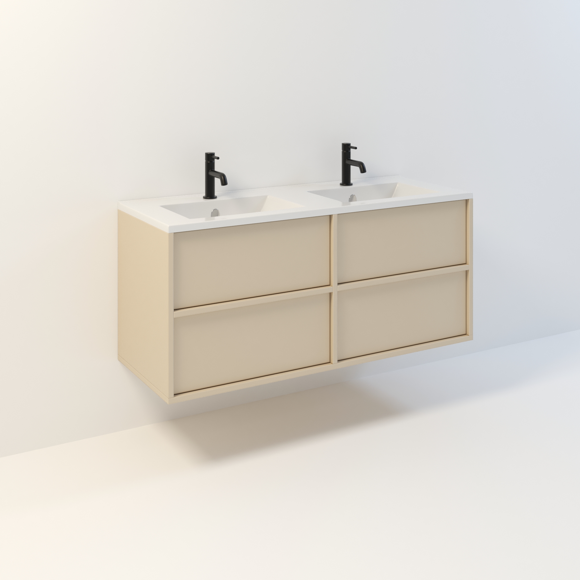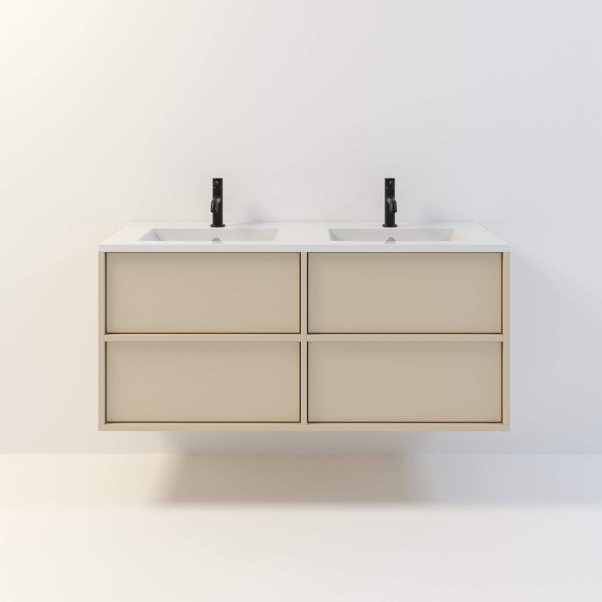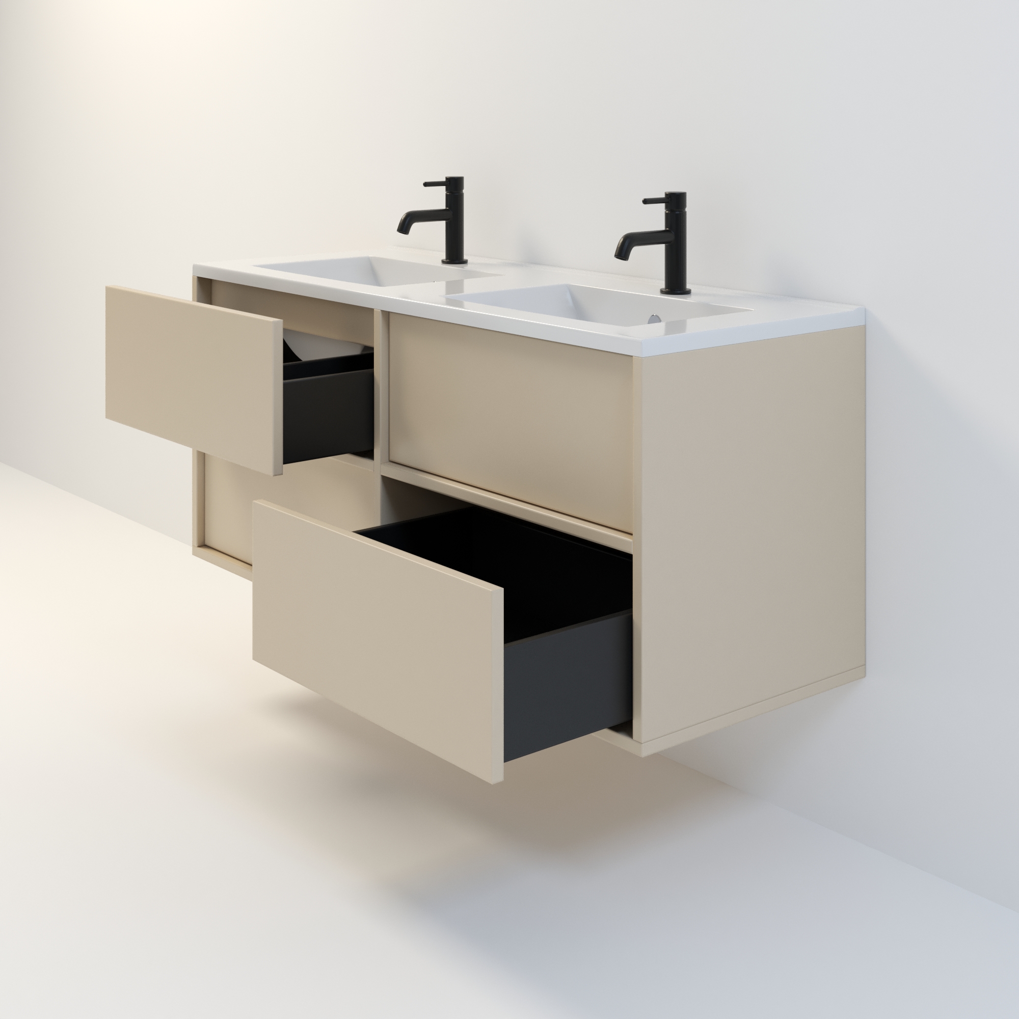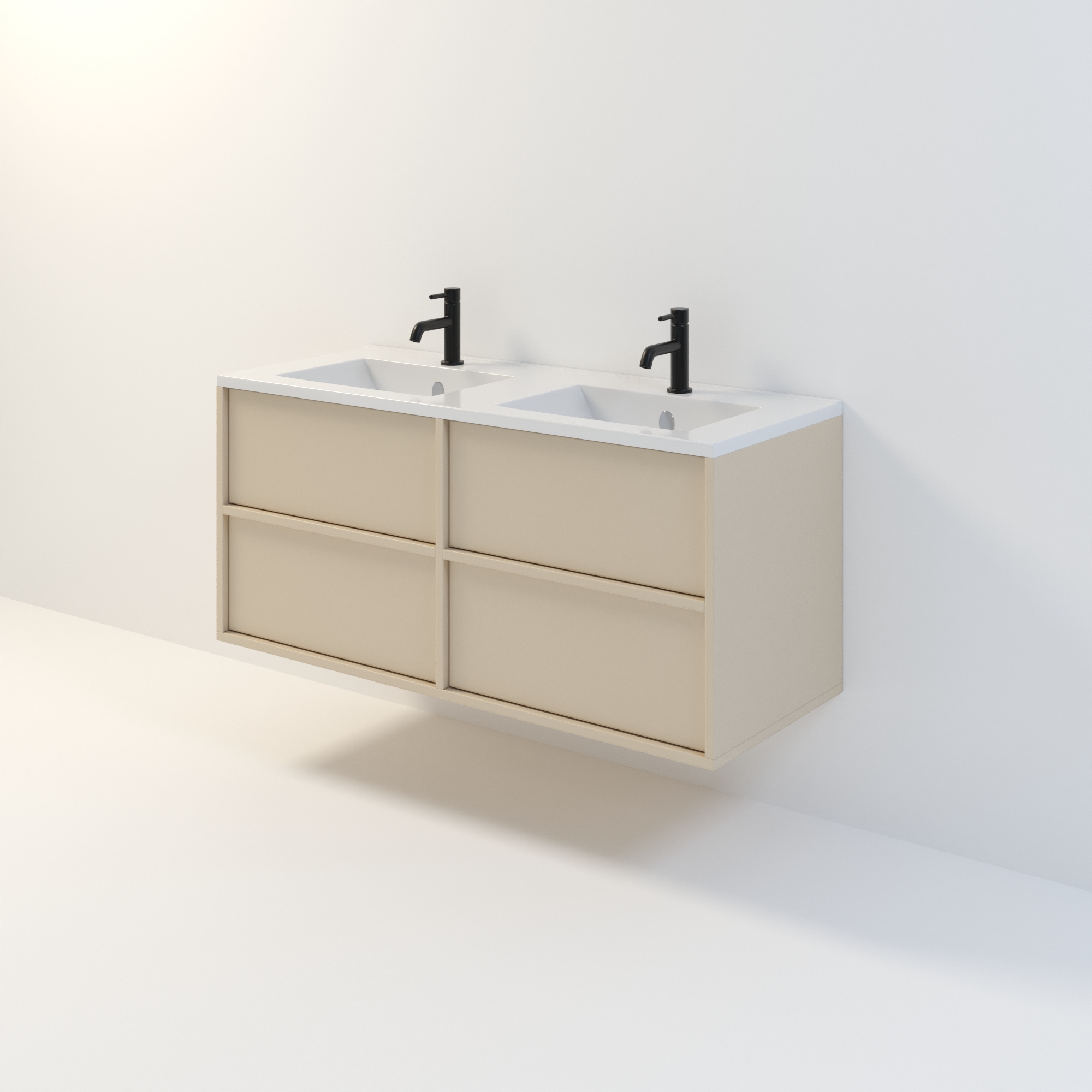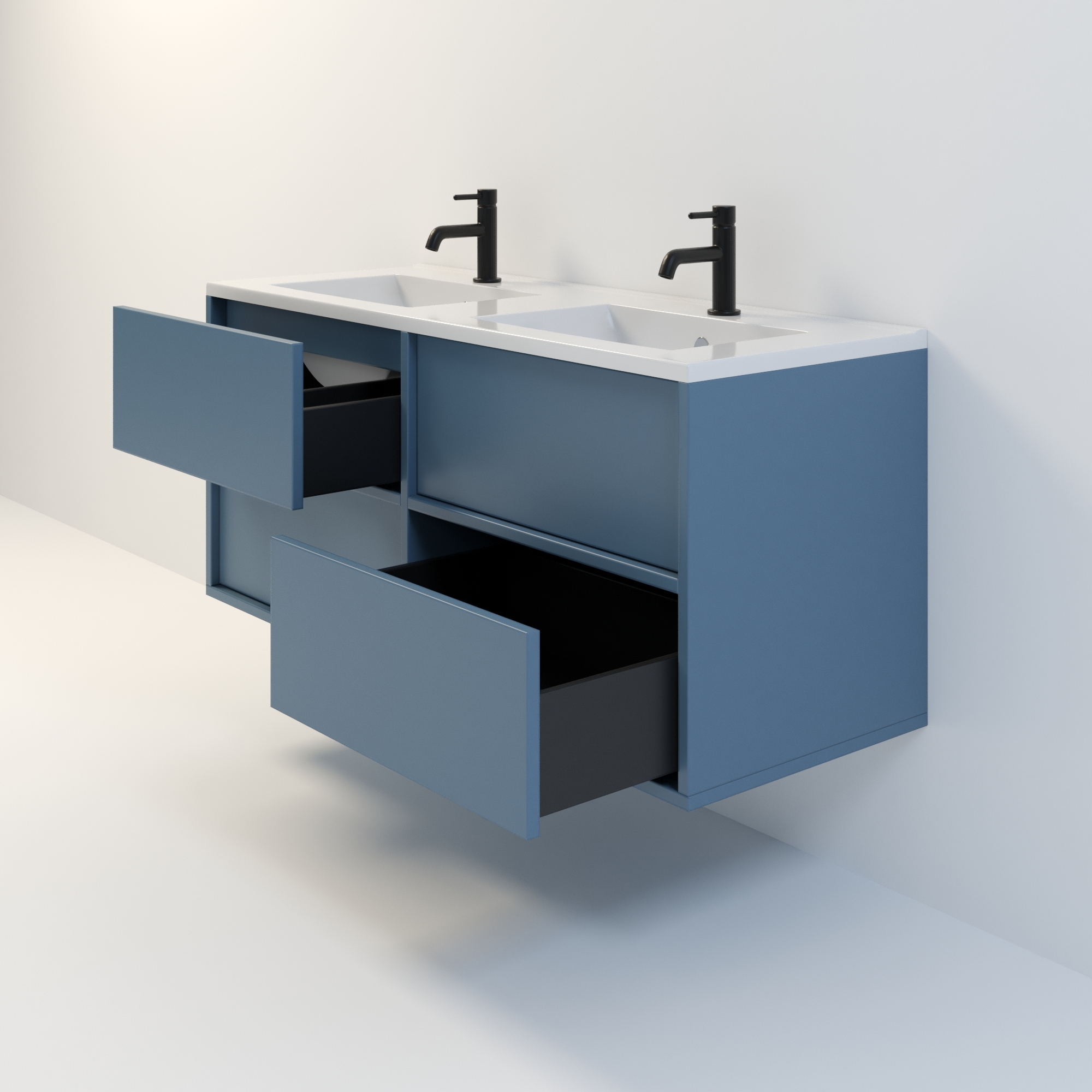Szafka łazienkowa wisząca Minimal 4 z umywalką to nowoczesny zestaw łazienkowy który, składa się z szafki łazienkowej z czterema szufladami oraz podwójnej umywalki ceramicznej pełniącej jednocześnie funkcję blatu. Komplet ten jest niezwykle funkcjonalnym i trwałym rozwiązaniem. Połączenie uniwersalnego stylu z geometryczną formą sprawia, że szafka dobrze komponuje się w różnych aranżacjach.