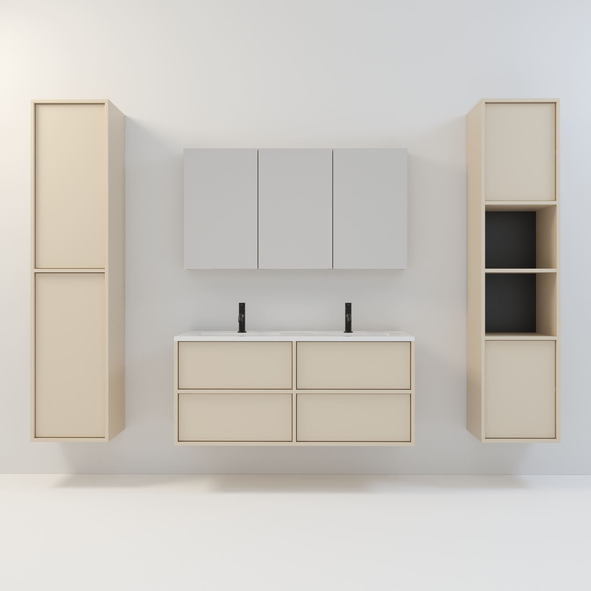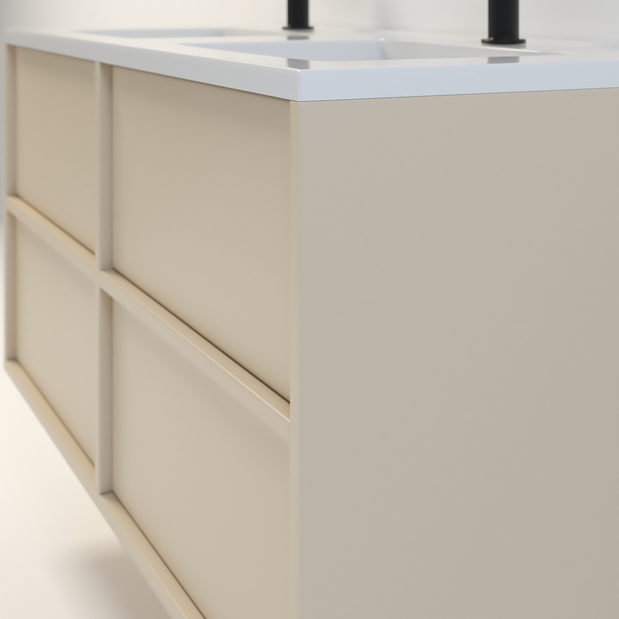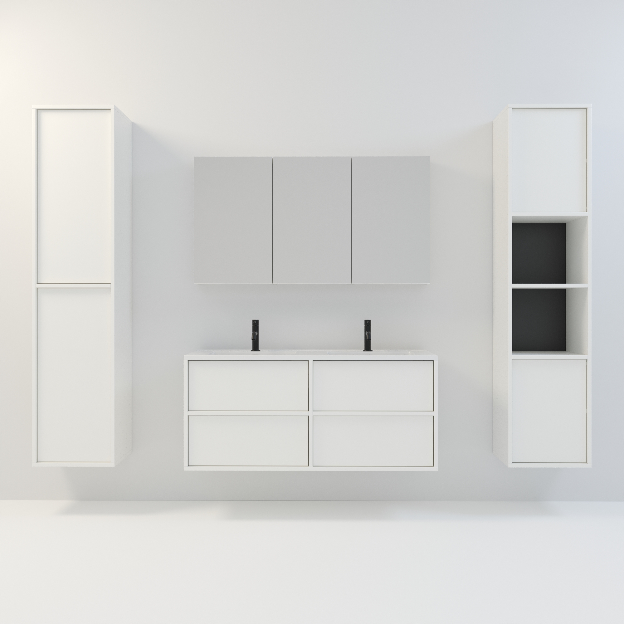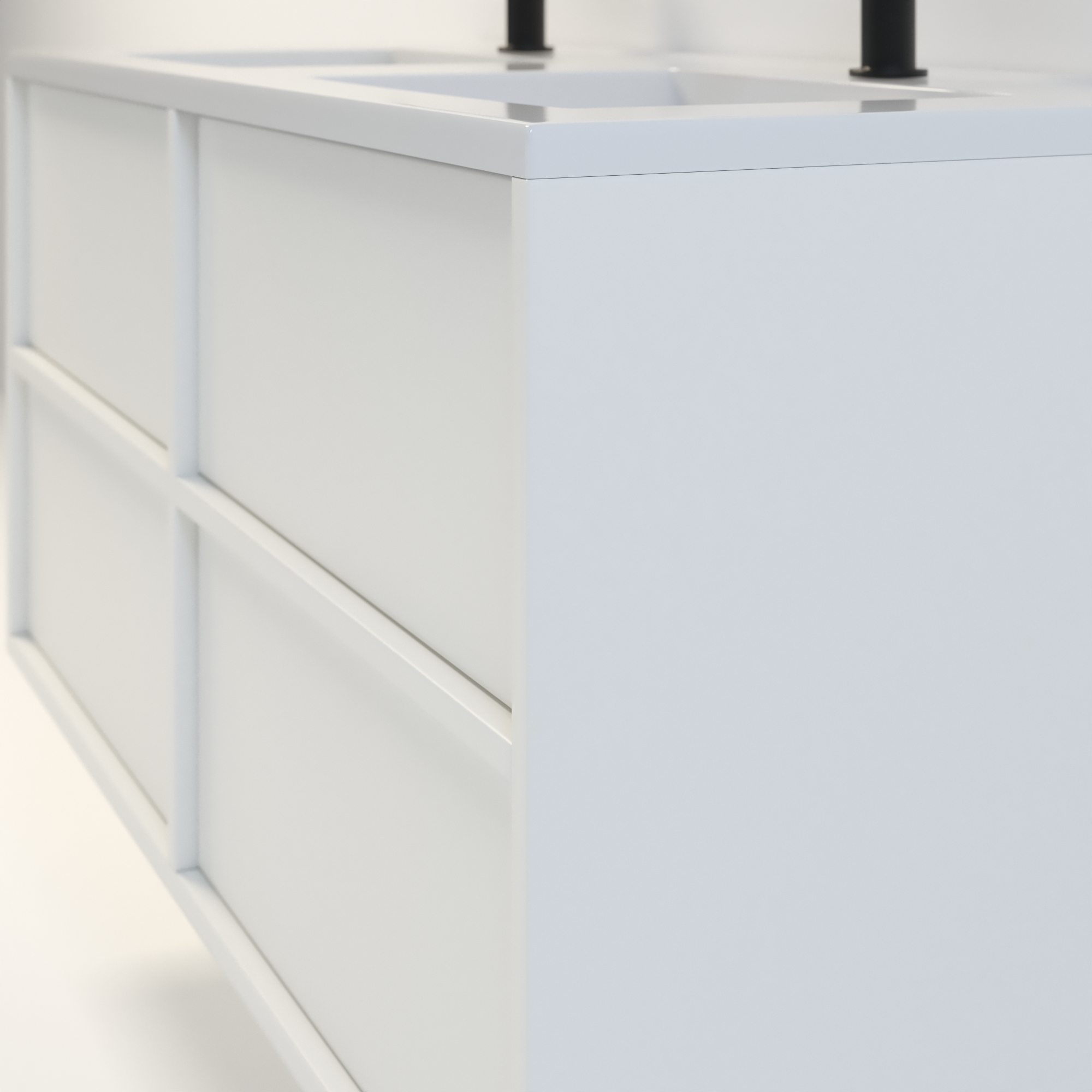 Szafka łazienkowa wisząca Minimal 4 z umywalką to nowoczesny zestaw łazienkowy który, składa się z szafki łazienkowej z czterema szufladami oraz podwójnej umywalki ceramicznej pełniącej jednocześnie funkcję blatu. Komplet ten jest niezwykle funkcjonalnym i trwałym rozwiązaniem. Połączenie uniwersalnego stylu z geometryczną formą sprawia, że szafka dobrze komponuje się w różnych aranżacjach.