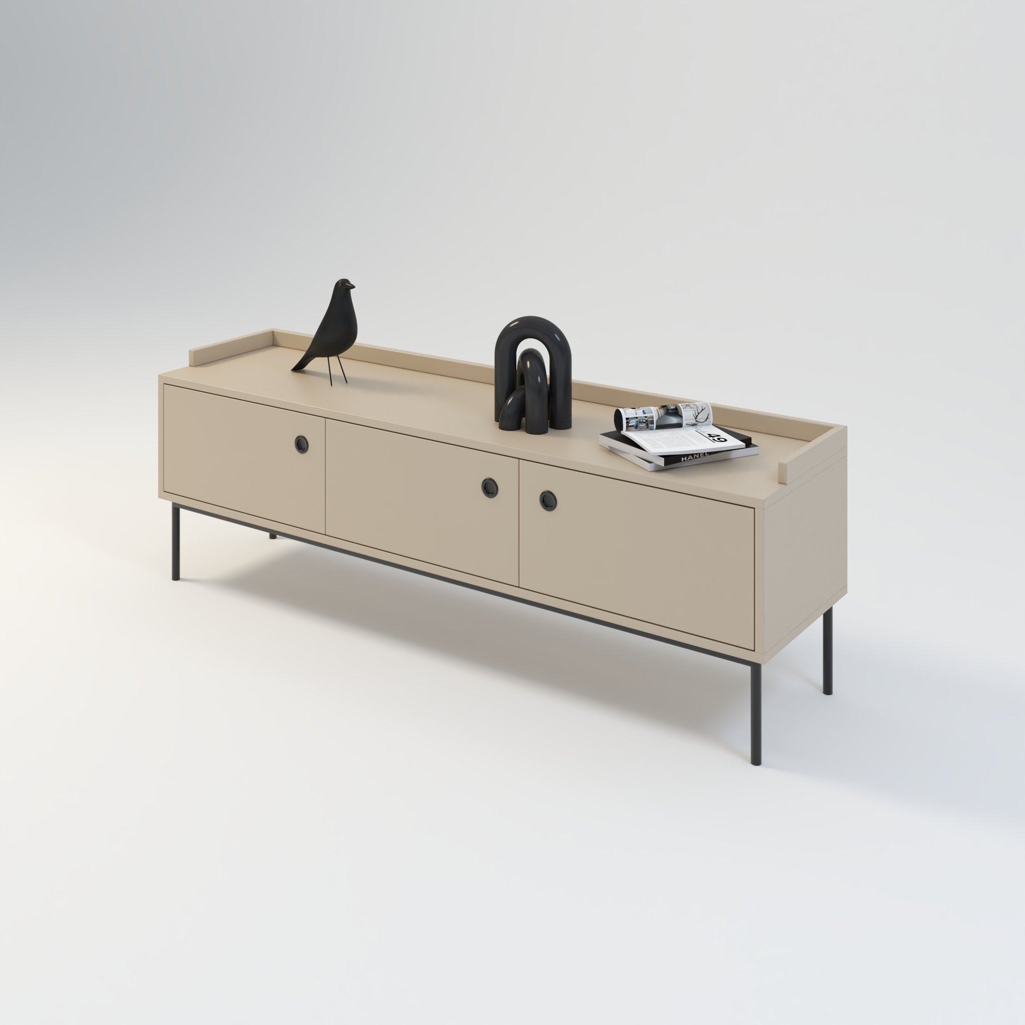Szafka swoim wzornictwem nawiązuje do stylu japandi. Jest połączeniem japońskiego minimalizmu ze skandynawskim ciepłem i prostotą. Drzwi wyposażone zostały w zawiasy z cichym systemem domykania. Konstrukcja umożliwia przechowywanie w wielu różnych konfiguracjach. Szafka w całości wykonana z wysokiej jakości płyty laminowanej w kolorze beżowym o odcieniu piaskowym. Kolor ten doskonale sprawdza się połączeniu z innymi kolorami.