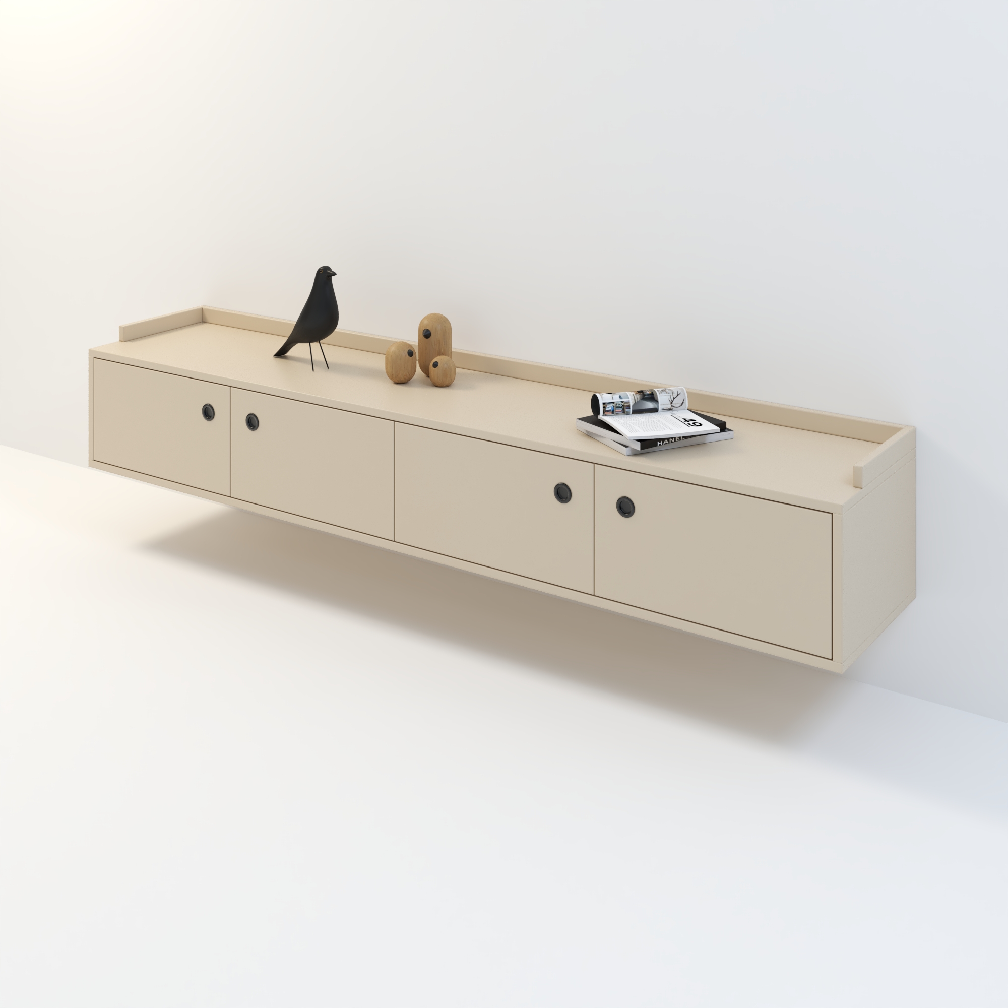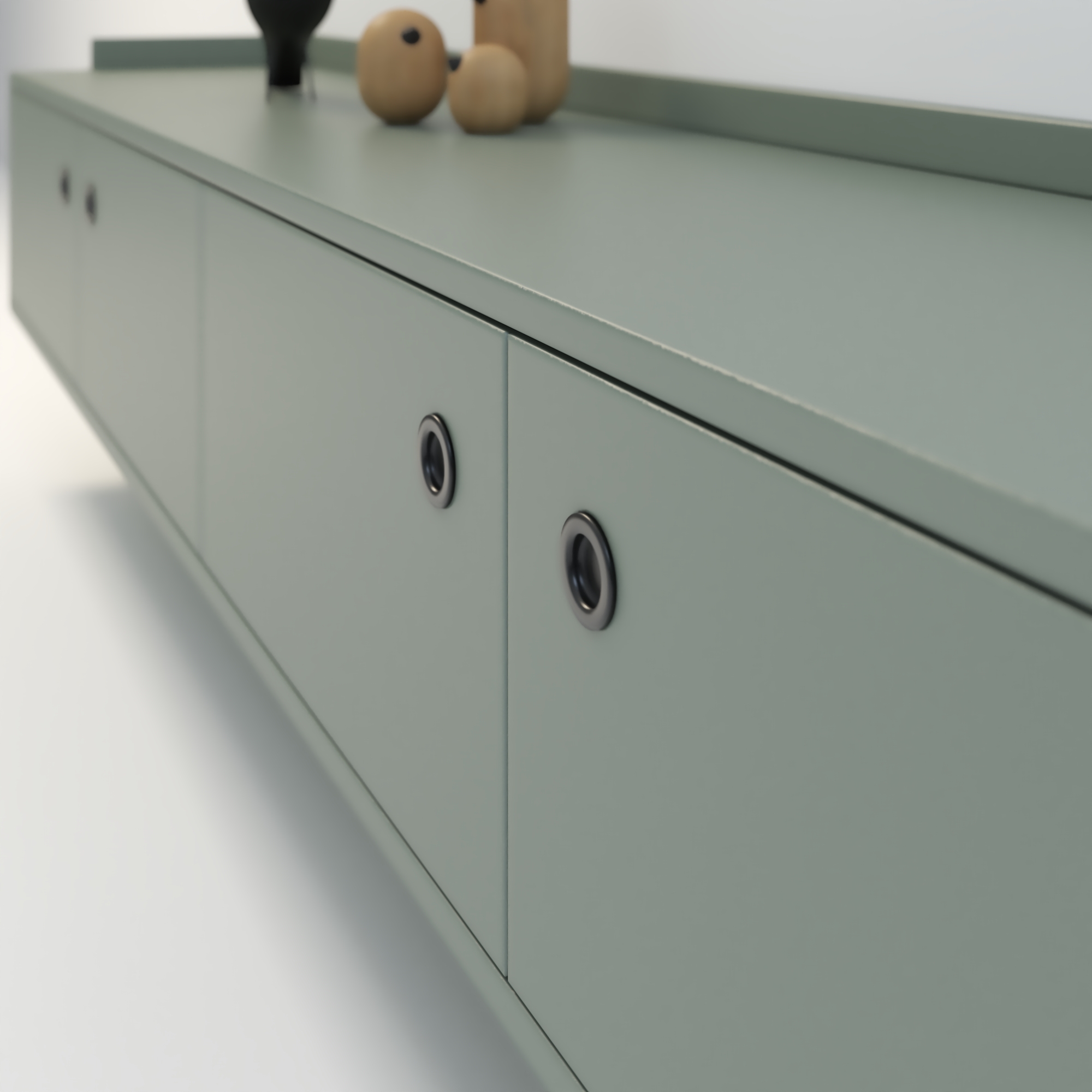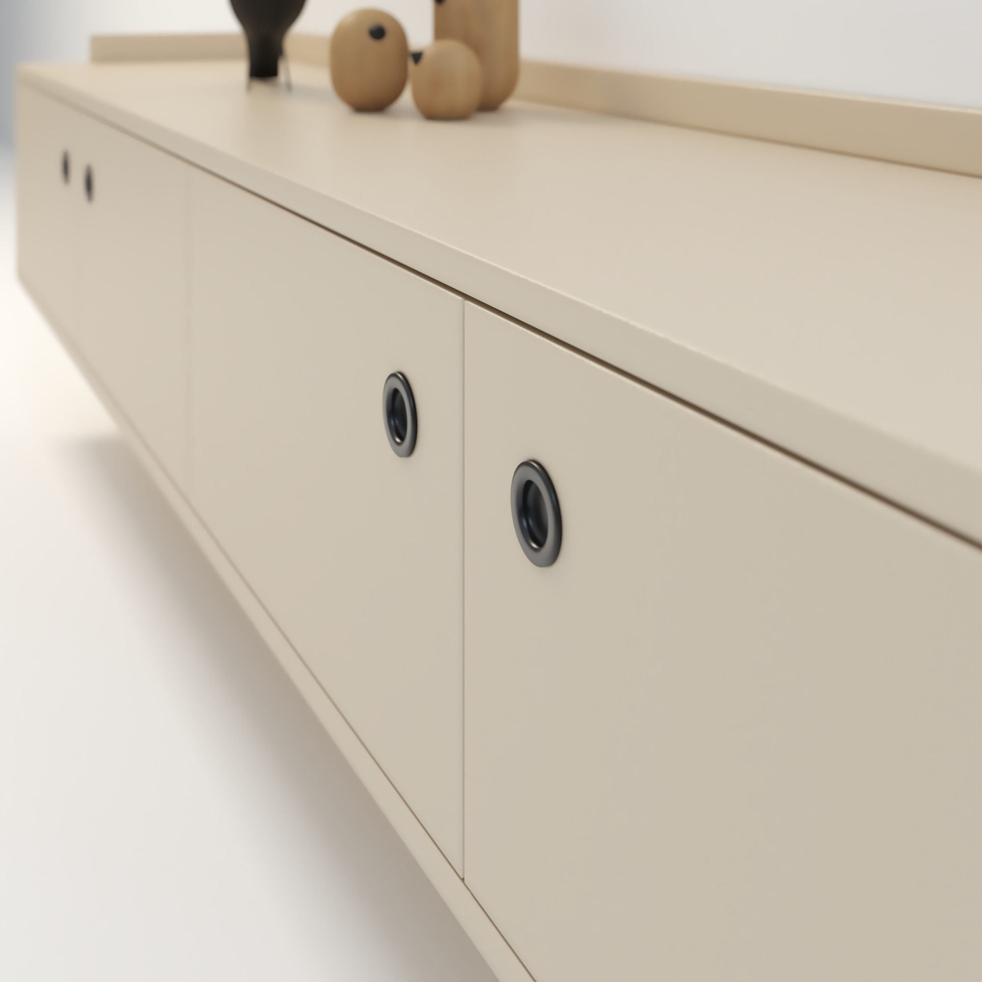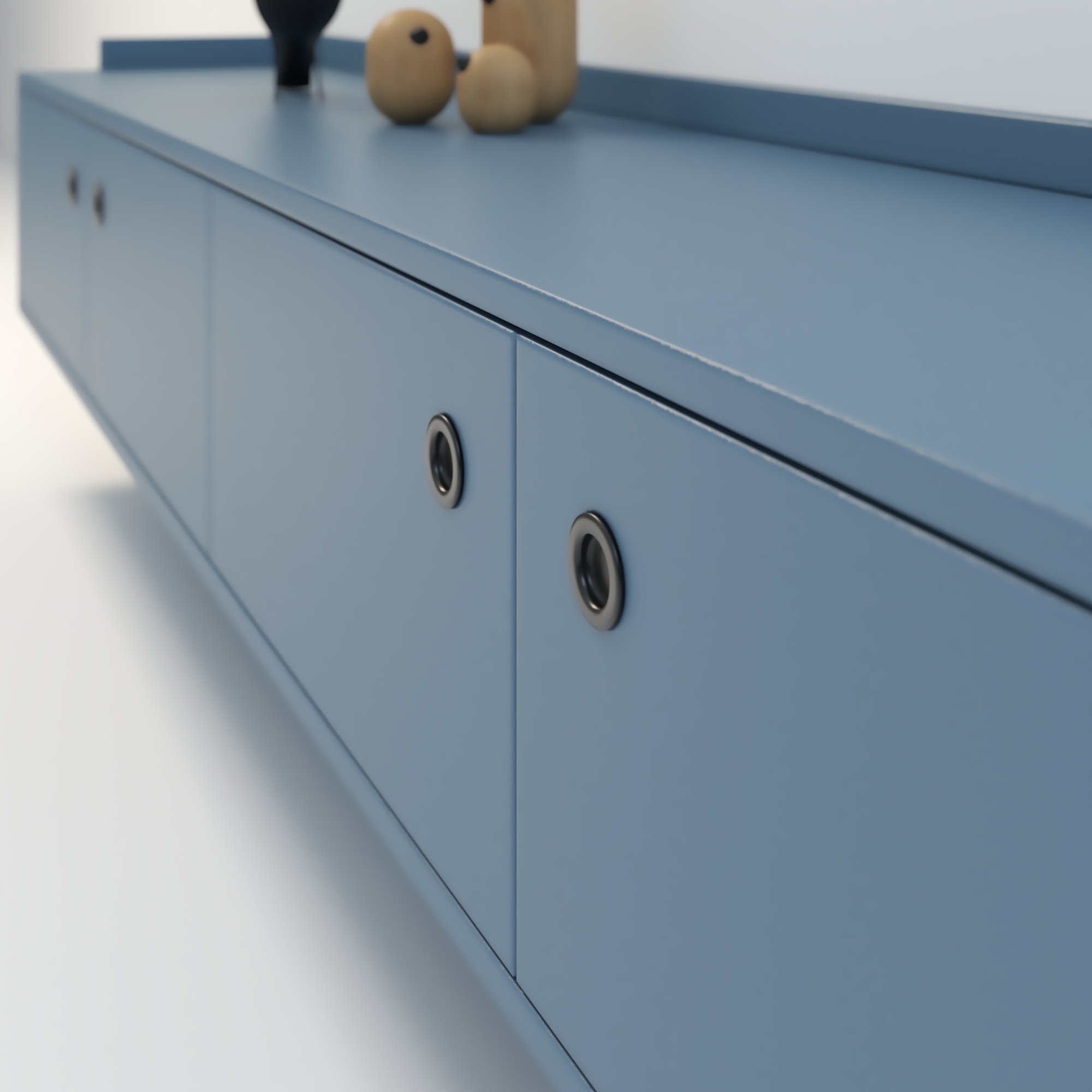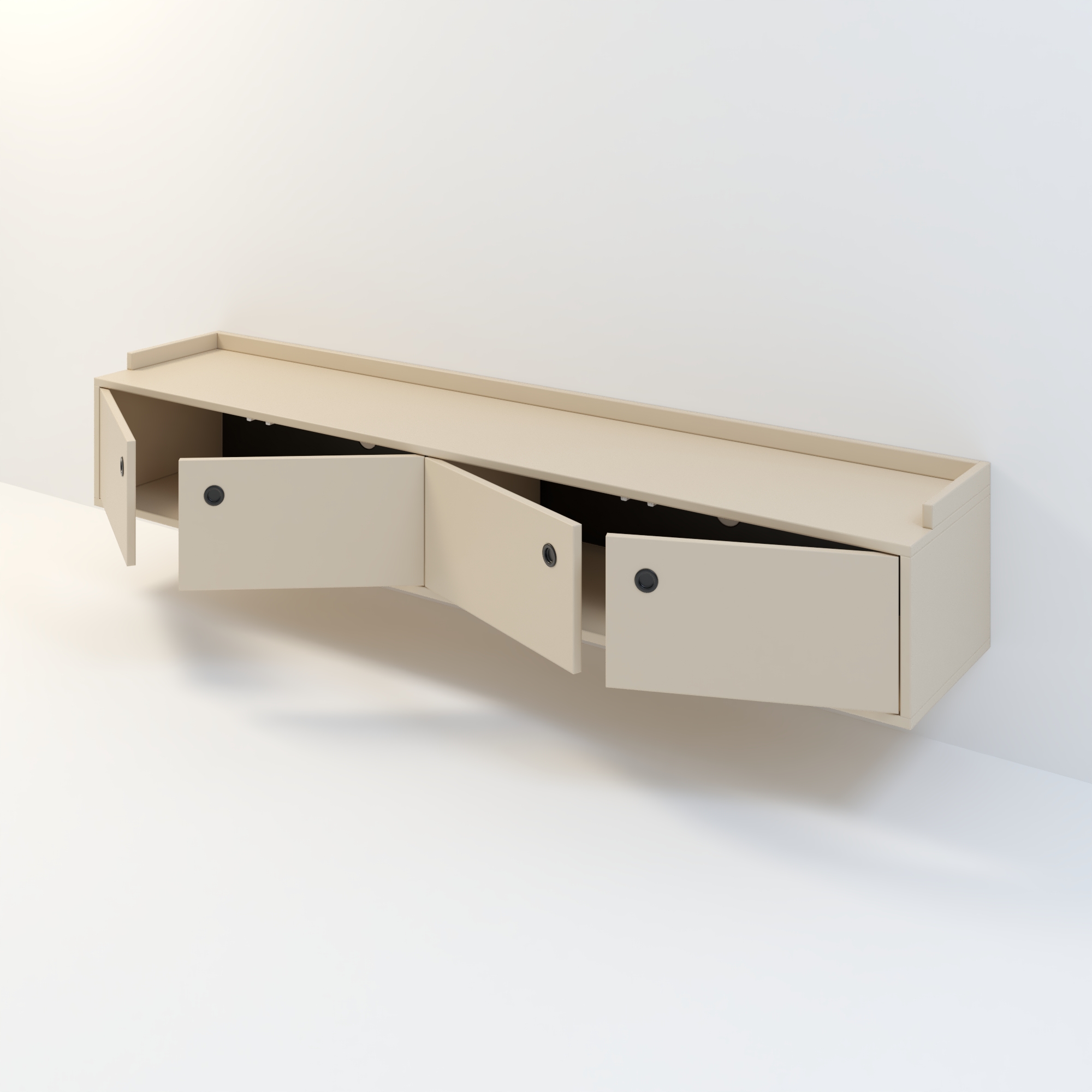 Szafka swoim wzornictwem nawiązuje do stylu japandi. Jest połączeniem japońskiego minimalizmu ze skandynawskim ciepłem i prostotą. Drzwi wyposażone zostały w zawiasy z cichym systemem domykania. Konstrukcja umożliwia przechowywanie w wielu różnych konfiguracjach. Szafka w całości wykonana z wysokiej jakości płyty laminowanej w kolorze czerwonym o odcieniu rdzawym. Kolor ten doskonale komponuje się z naturalnym drewnem i jego reprodukcjami oraz innymi odcieniami koloru czerwonego.