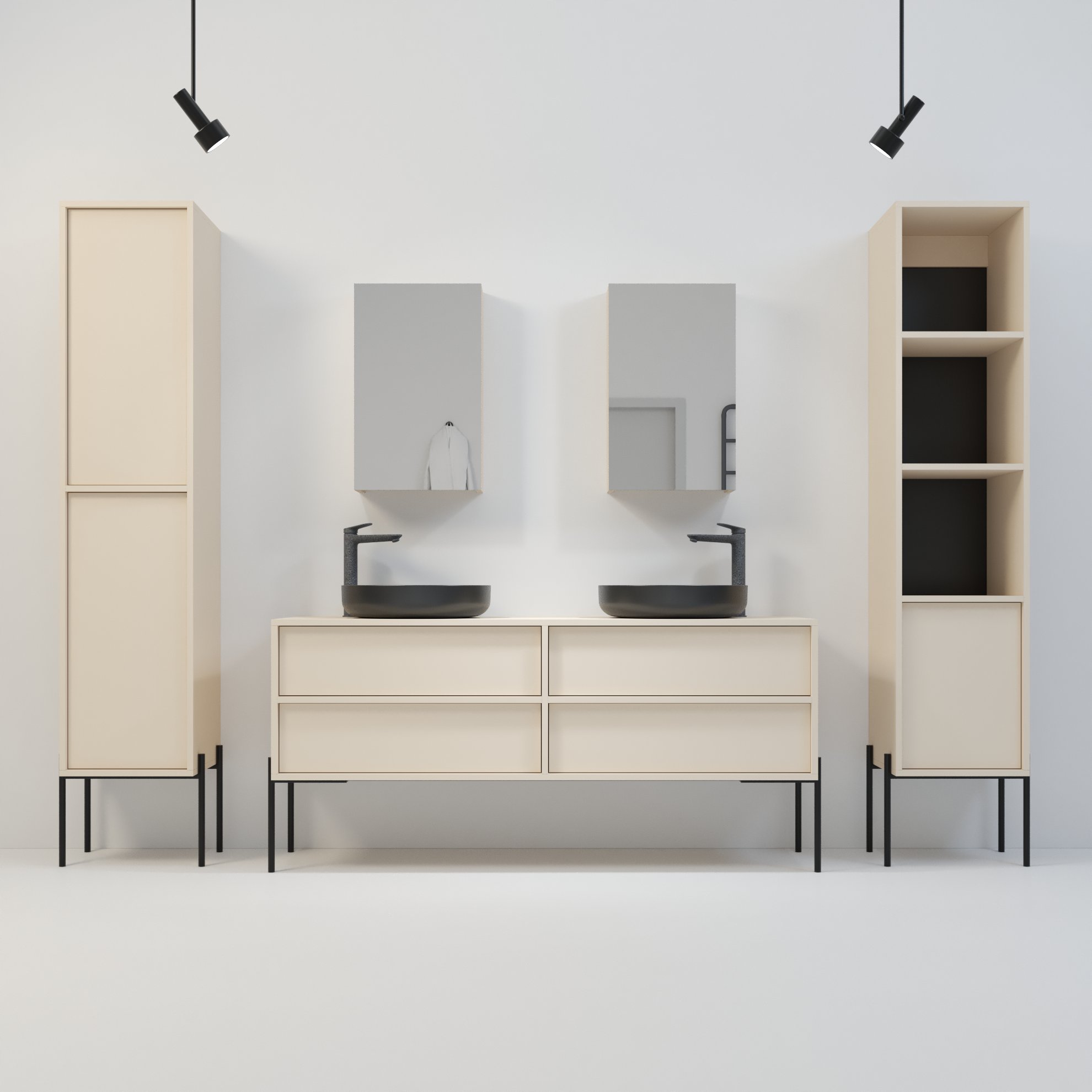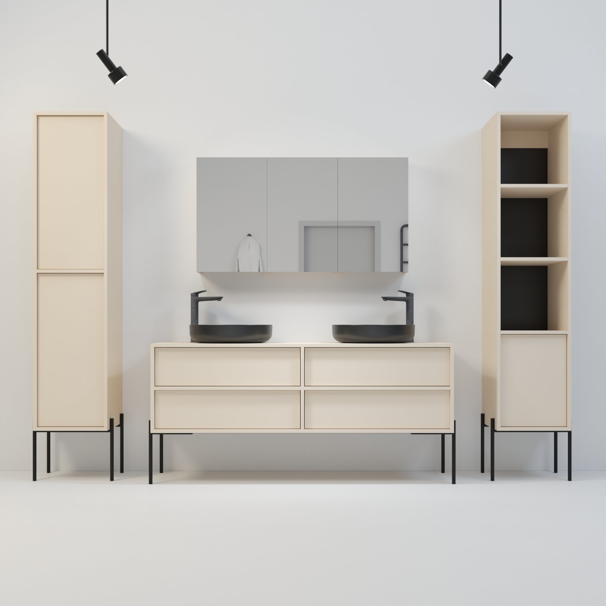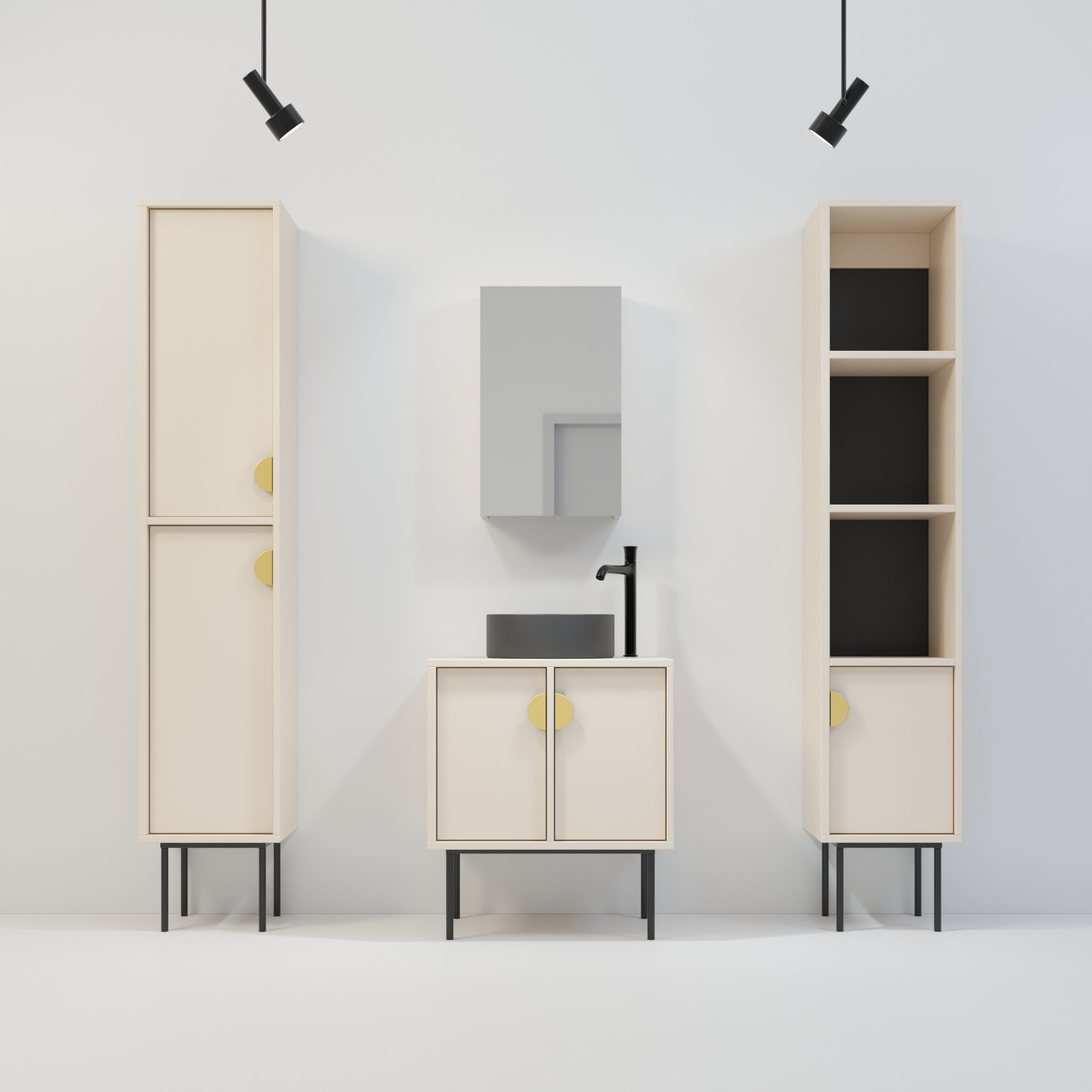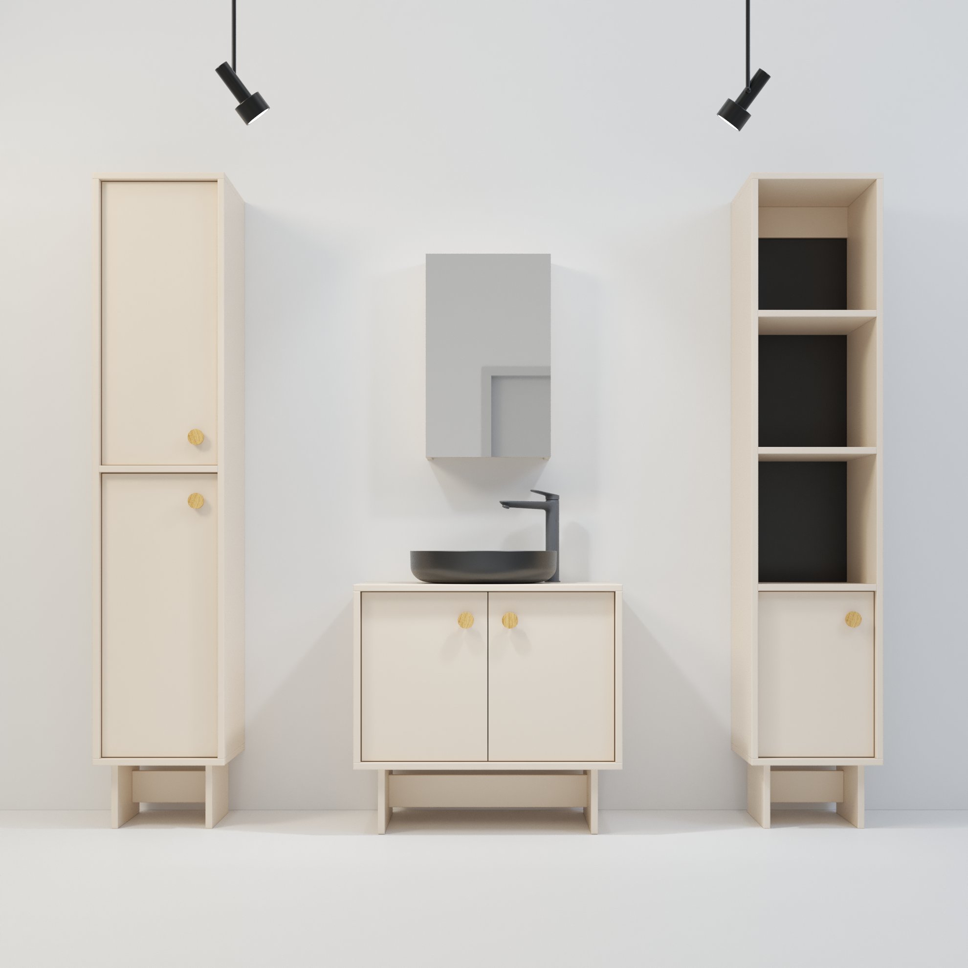 Szafka Kobe oferuje dużą elastyczność aranżacyjną, dlatego świetnie współgra z kolekcjami Minimal, Komono oraz Kagawa. Możesz ją zestawiać modułowo, tworząc większe układy poprzez połączenie dwóch lub trzech elementów montowanych bokami. Dzięki temu łatwo dopasujesz konfigurację do dostępnej przestrzeni i własnych potrzeb. Taki układ idealnie sprawdza się zarówno nad umywalką, jak i na dłuższej ścianie, gdzie potrzebujesz więcej miejsca do przechowywania. Szafka łączy nowoczesny wygląd z praktycznym wnętrzem, dlatego świetnie odnajduje się w łazienkach, w których każdy centymetr przestrzeni ma znaczenie. Jeżeli zależy Ci na funkcjonalnym, a zarazem estetycznym rozwiązaniu, które daje swobodę konfiguracji, Kobe będzie idealnym wyborem.