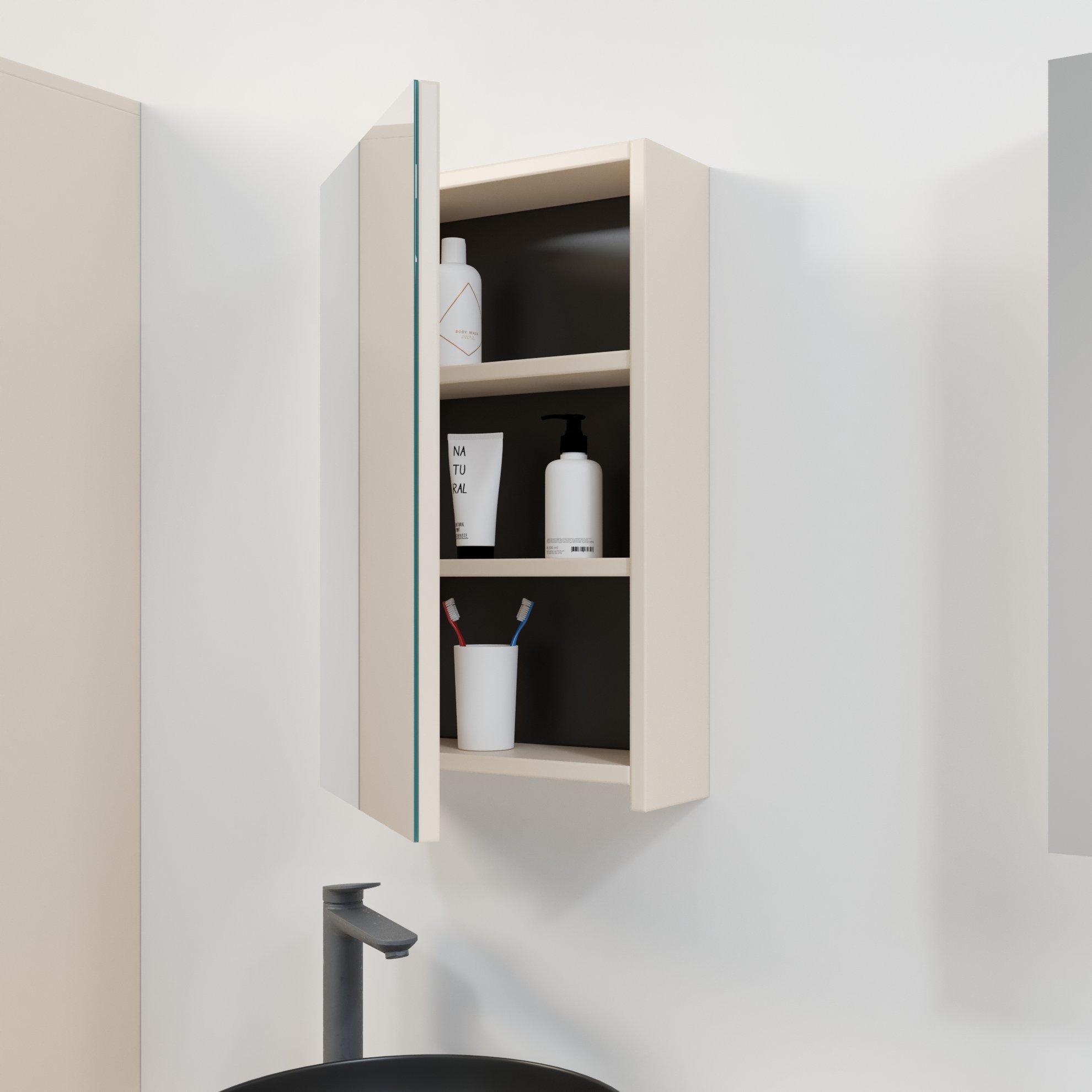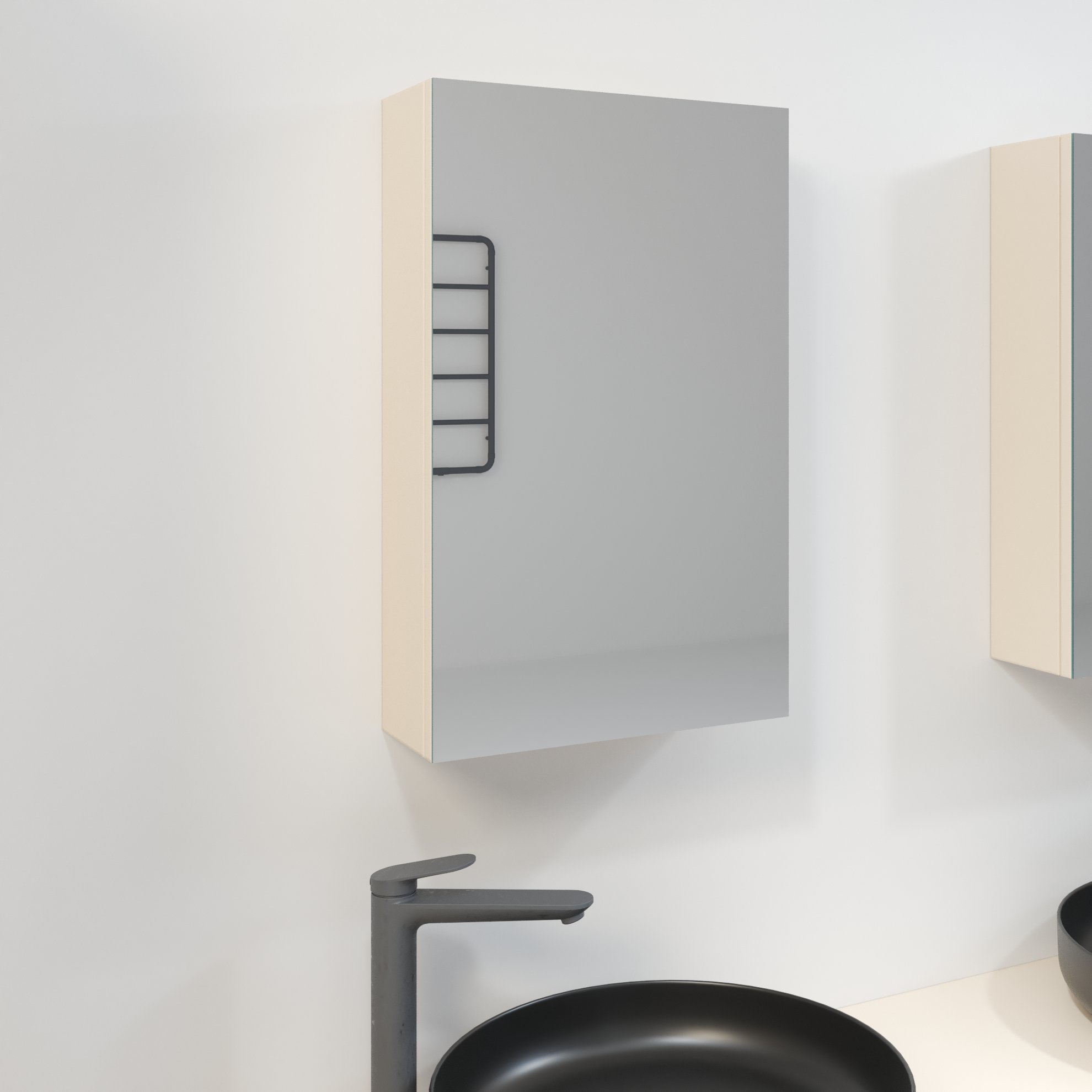 Szafka łazienkowa Kobe została zaprojektowana z myślą o codziennej wygodzie, dlatego łączy estetykę z funkcjonalnością. Zastosowanie trwałej płyty laminowanej sprawia, że mebel jest odporny na wilgoć oraz łatwy do utrzymania w czystości. Wewnątrz umieszczono dwie praktyczne półki, które umożliwiają wygodne segregowanie kosmetyków, leków i innych drobiazgów. Dzięki temu wszystkie potrzebne rzeczy masz zawsze pod ręką, a jednocześnie pozostają one estetycznie ukryte za lustrzanym frontem. Lustro nie tylko spełnia funkcję użytkową, lecz także optycznie powiększa przestrzeń i dodaje wnętrzu lekkości. Co więcej, drzwiczki wyposażono w zawiasy z mechanizmem cichego domyku, dzięki czemu codzienne użytkowanie staje się bardziej komfortowe. Prosty design bez zbędnych zdobień pozwala łatwo dopasować szafkę do różnych stylów – od industrialnych po klasyczne – przez co mebel staje się uniwersalnym elementem wyposażenia.